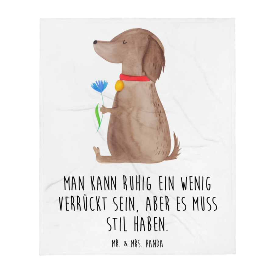 Kuscheldecke Hund Blume - mit Spruch - Weiß