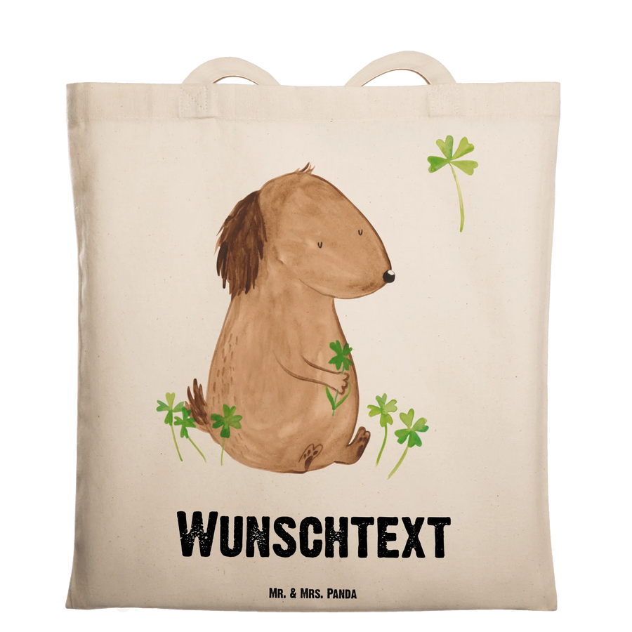 Entdecke unsere personalisierte Tragetasche mit dem bezaubernden Hund Kleeblatt-Motiv von Mr. & Mrs. Panda! Diese wunderschöne Tasche ist perfekt für jeden Tierliebhaber und Hundebesitzer.