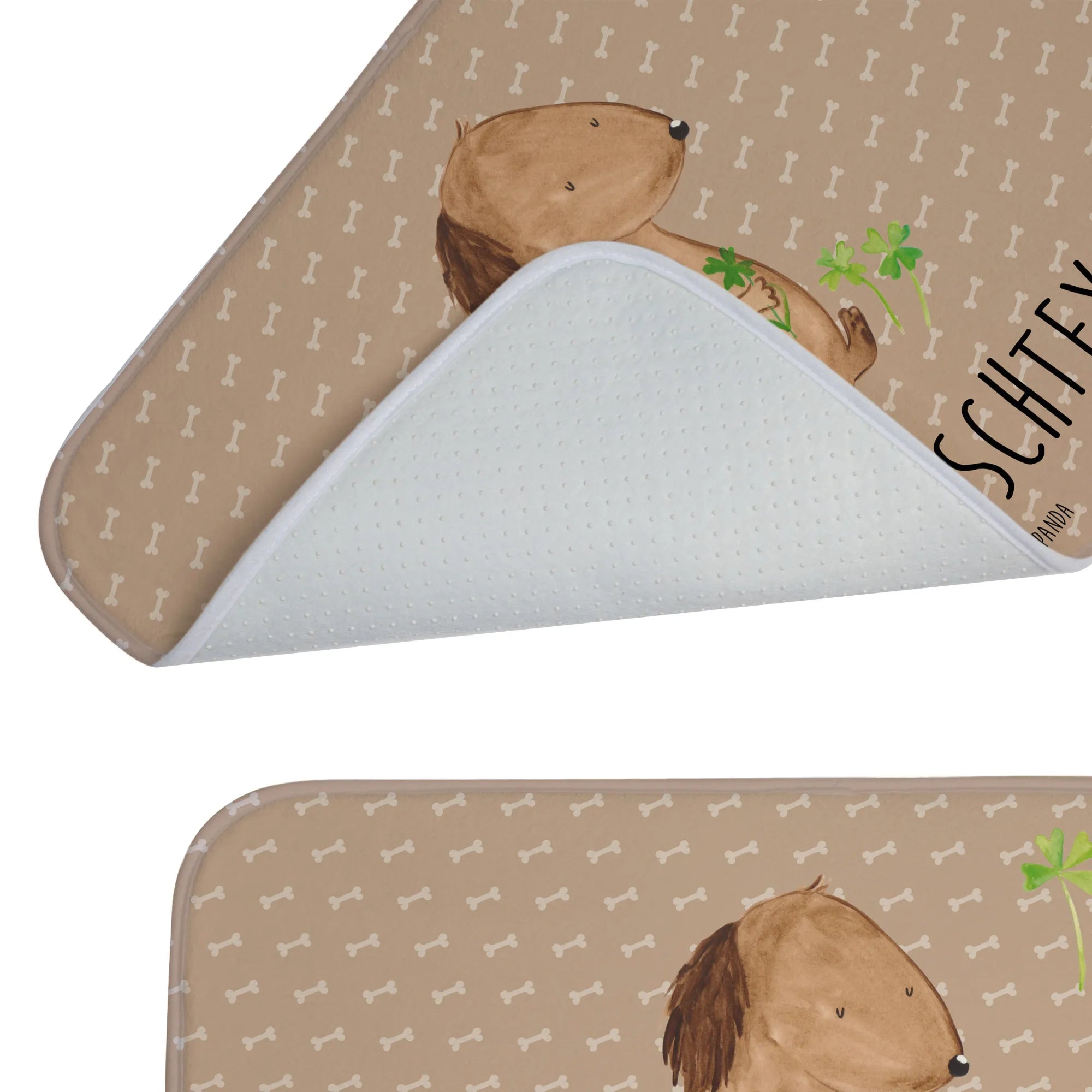 Schenke deinem Badezimmer einen Hauch von Glück mit unserem personalisierten Badvorleger "Hund Kleeblatt" aus der einzigartigen Hunde Kollektion von Mr. & Mrs. Panda. Dieser zauberhafte Badteppich ist nicht nur ein echter Blickfang, sondern auch ein praktischer Begleiter. Mit seiner flauschigen Premium Kunstfaser und der rutschfesten Gummibeschichtung sorgt er für mehr Sicherheit in deinem Badezimmer und lädt zum Wohlfühlen ein.