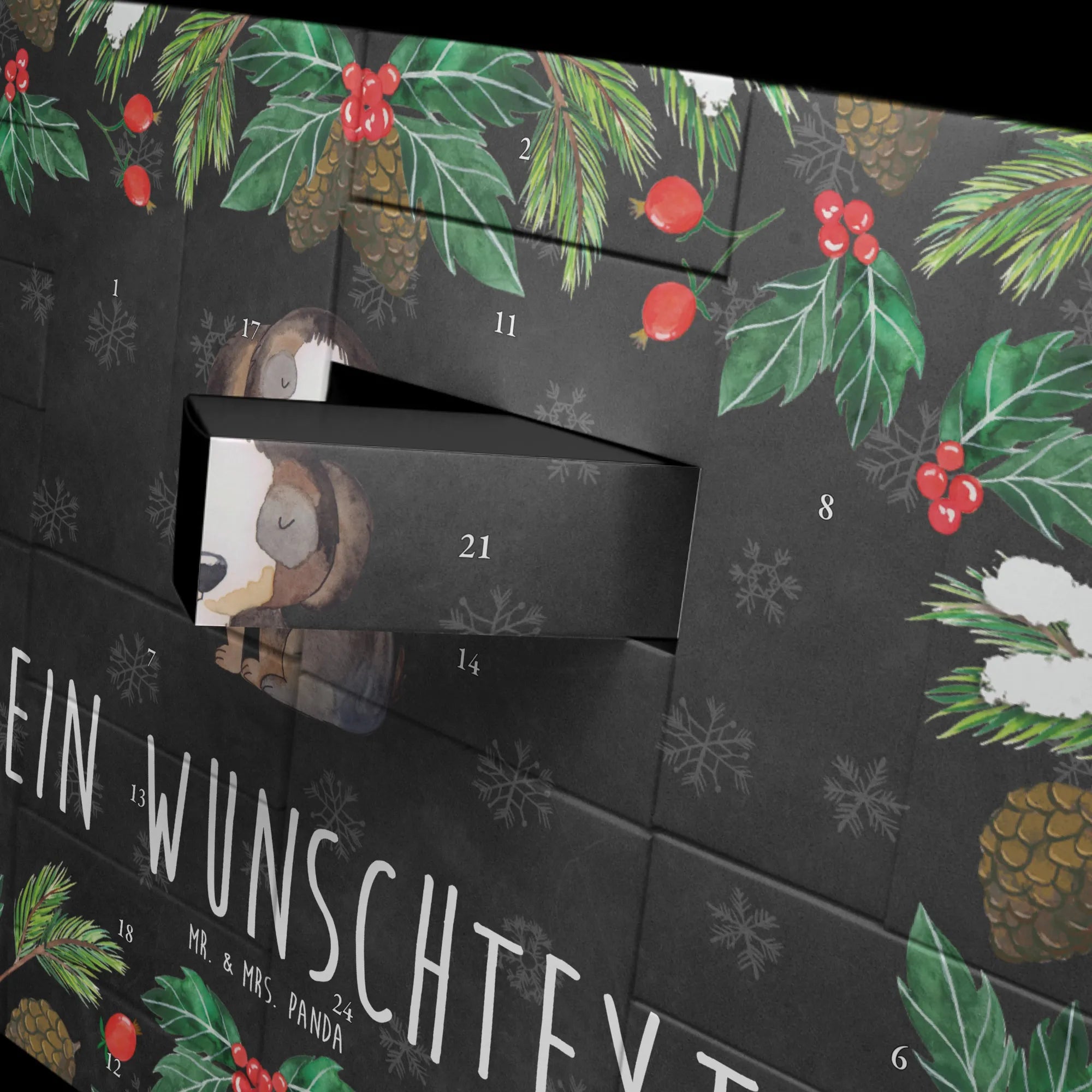 Personalisierter Adventskalender zum Befüllen – die süße Idee von Mr. & Mrs. Panda für deine individuelle Adventszeit! Der Kalender ist liebevoll gestaltet, mit vielen warmen Sprüchen und der charmanten Zeichnung von Mrs. Panda auf der Vorderseite. Du kannst deinen Namen oder einen Wunschtext hinzufügen, damit der Kalender ganz persönlich wird. Er besteht aus stabilem Adventskalender Karton, hat eine seidenmatte Oberfläche und besticht durch brillante Druckqualität. Mit 24 Schachteln zum Selbstbefüllen kannst du jeden Tag im Dezember mit einer kleinen Überraschung füllen. Zusätzlich ist eine praktische Aufstellvorrichtung integriert, damit der Kalender überall schön zur Geltung kommt. Besonderer Hinweis: wird ohne Füllung geliefert. Maße: Breite: 619 mm, Höhe: 405 mm, Tiefe: 50 mm. Ideal als Geschenk oder als liebevolle Dekoration für dein Zuhause – voller Herzlichkeit und Panda-Charme.