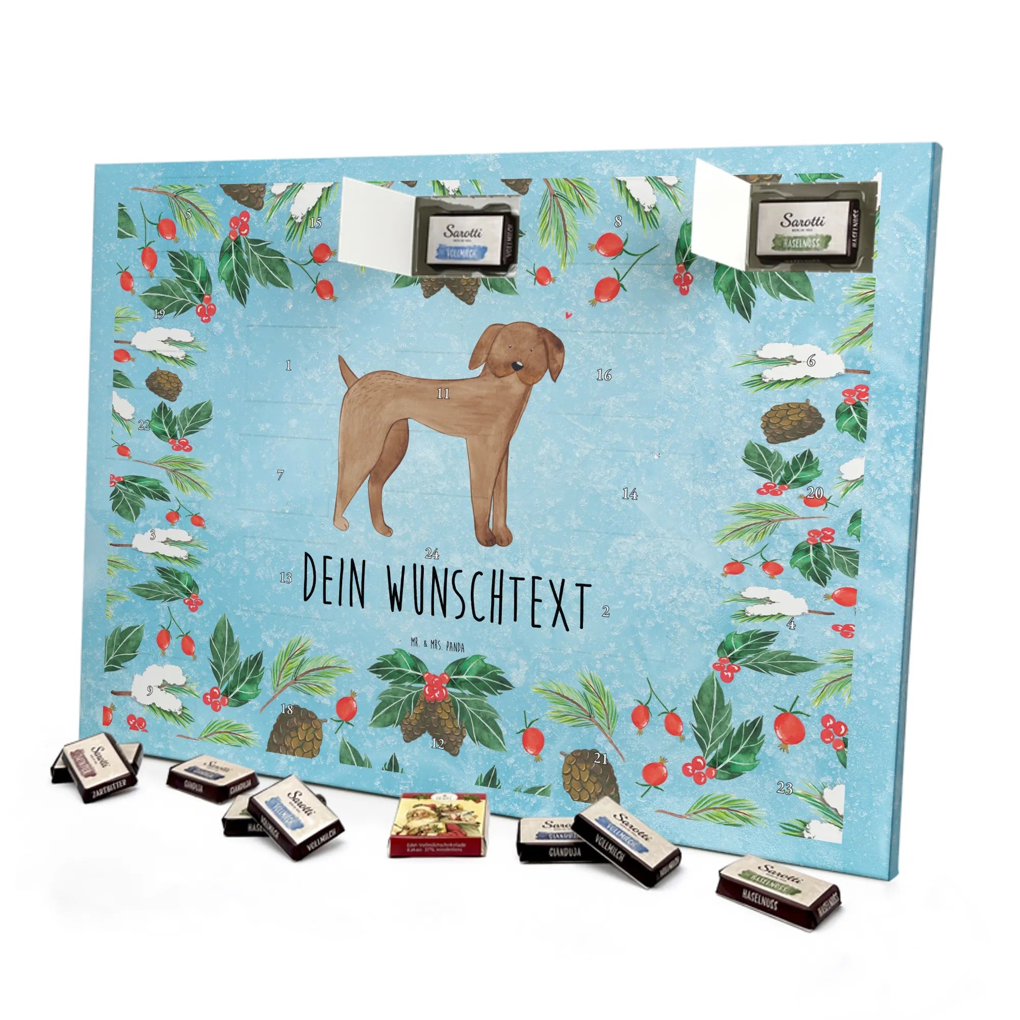 JETZT PERSONALISIEREN & VERSCHENKEN: Kreiere deinen individuellen Schokoladen Adventskalender von Mr. & Mrs. Panda – liebevoll bedruckt und gefüllt mit MARKENNAMEN Schokolade!