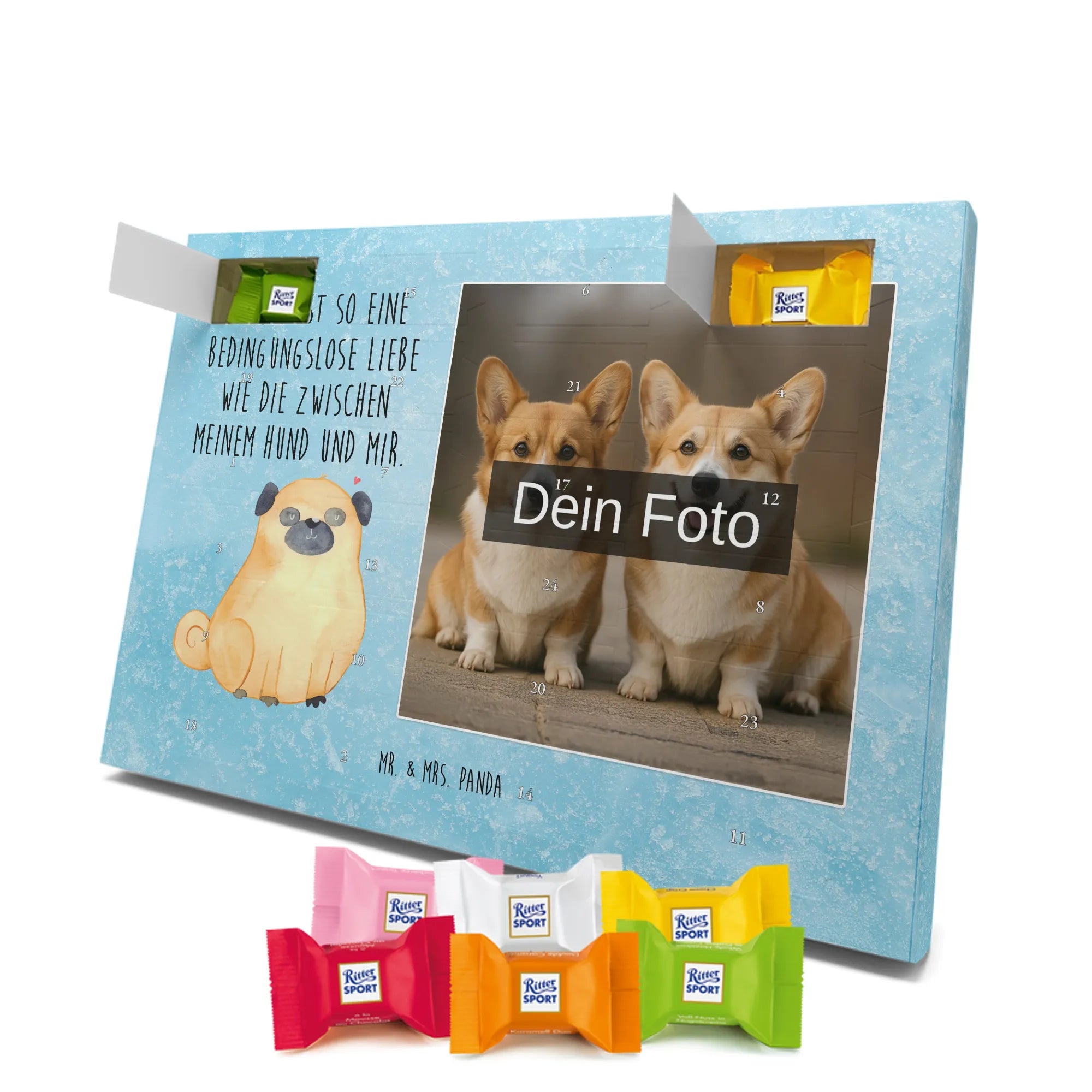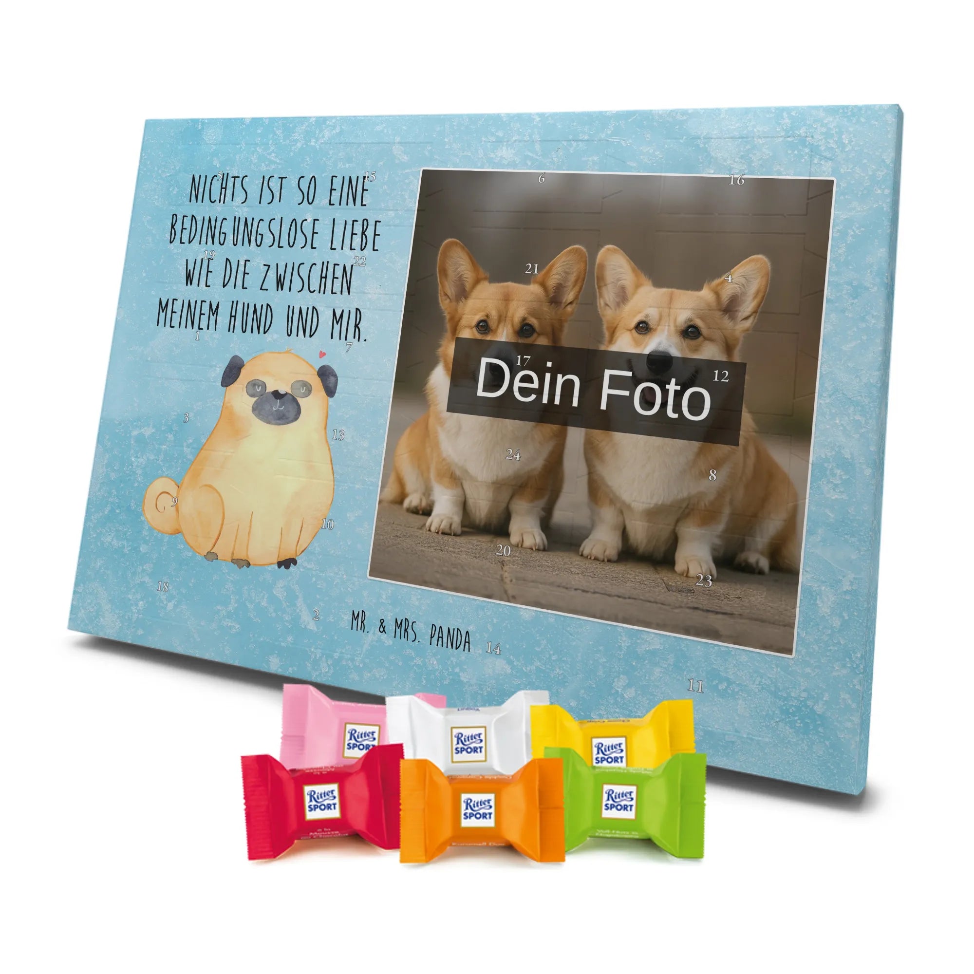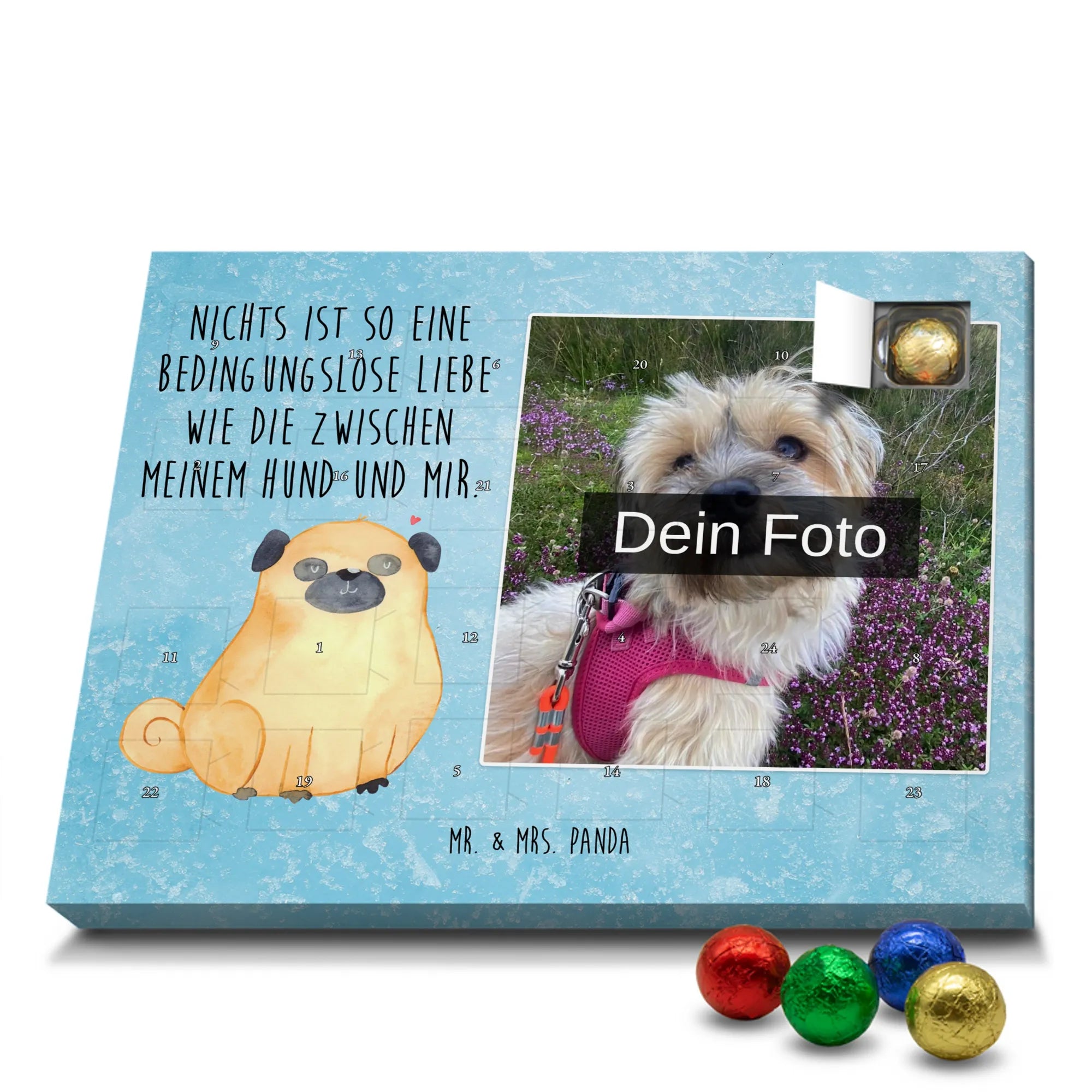 Personalisierter Schoko Foto Adventskalender Mops - Kinder Schokolade - Eisblau