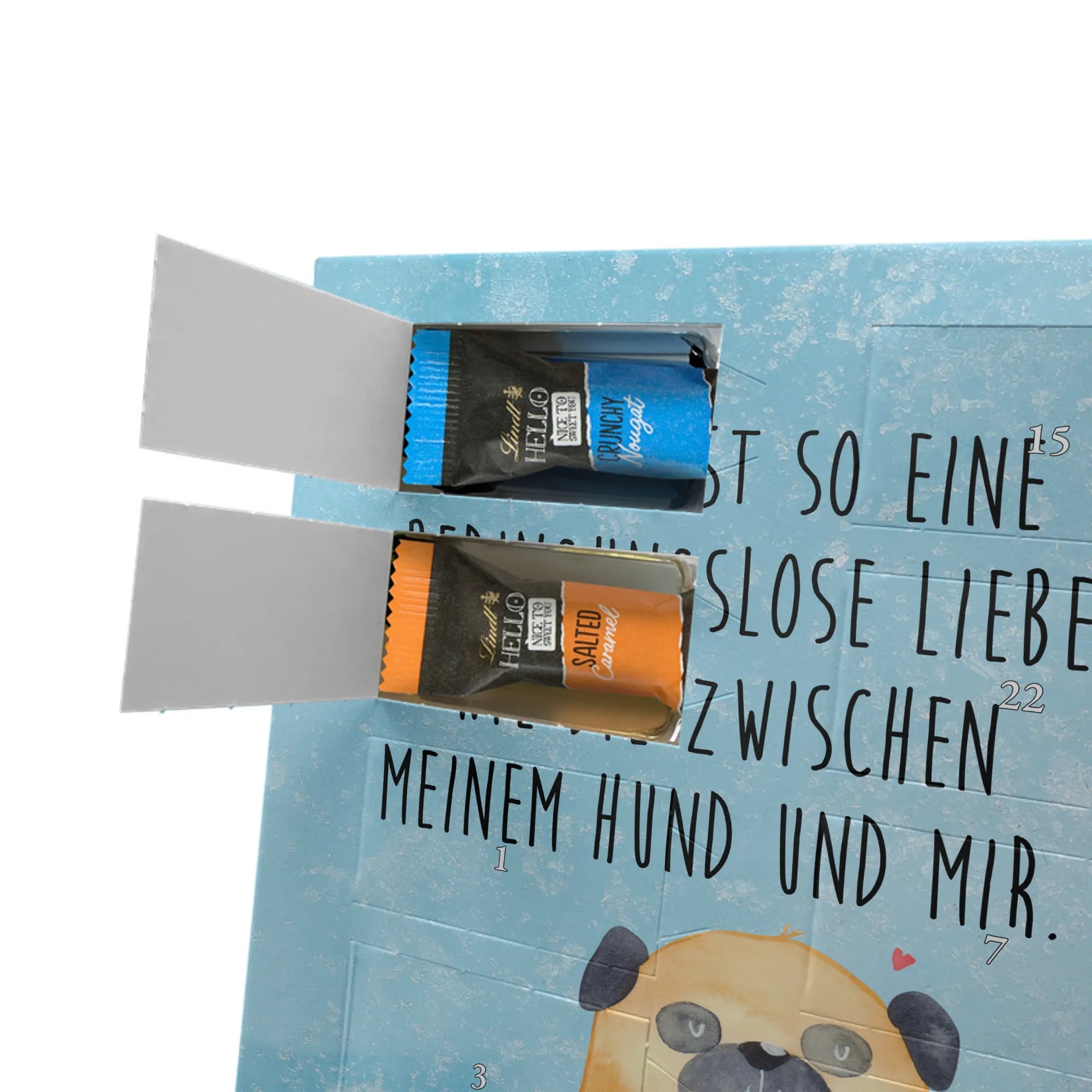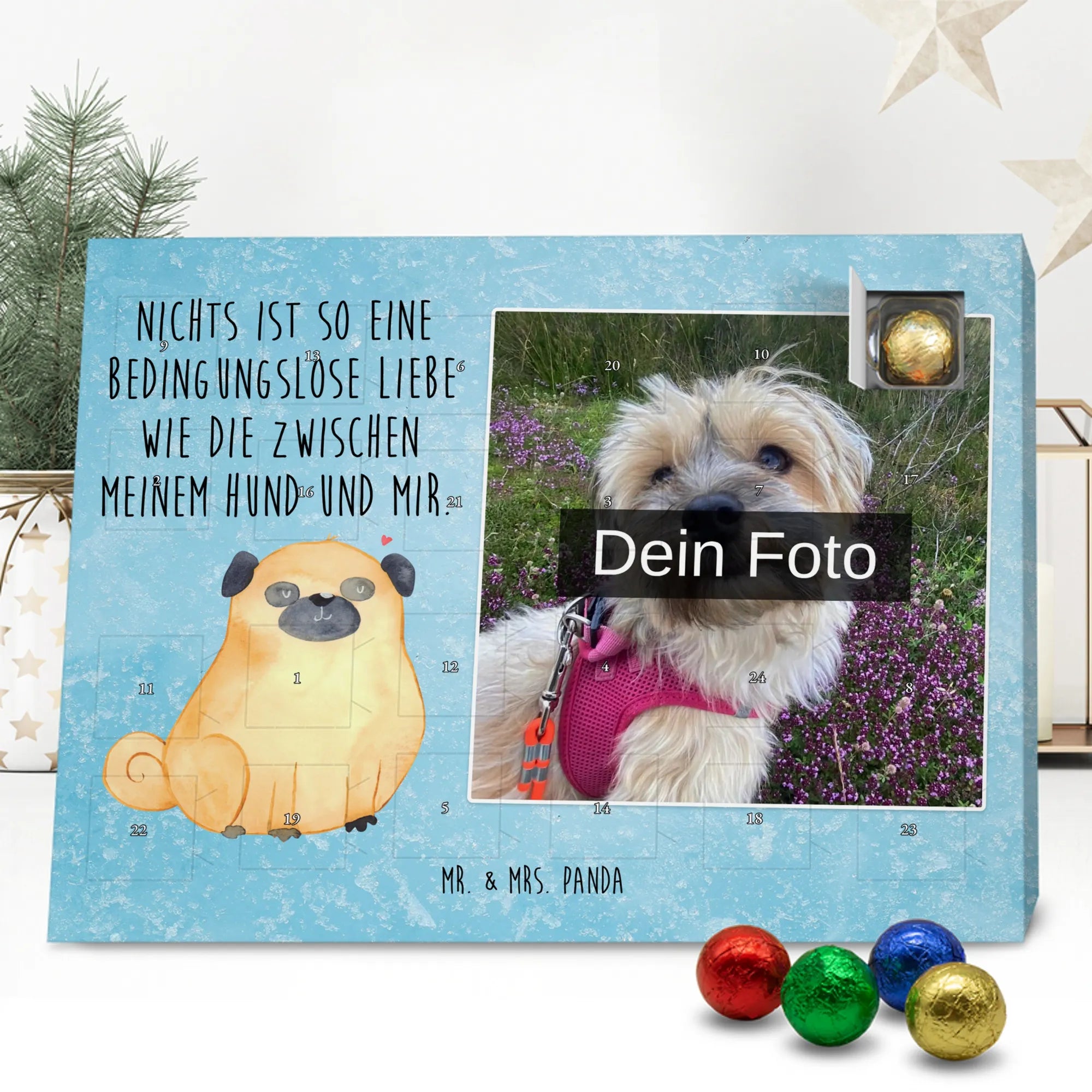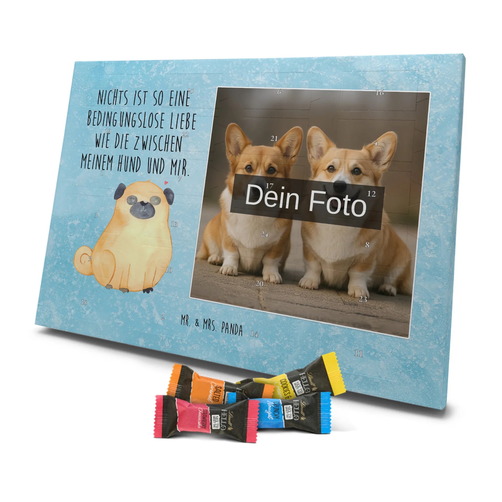 Personalisierter Schoko Foto Adventskalender Mops - Kinder Schokolade - Eisblau