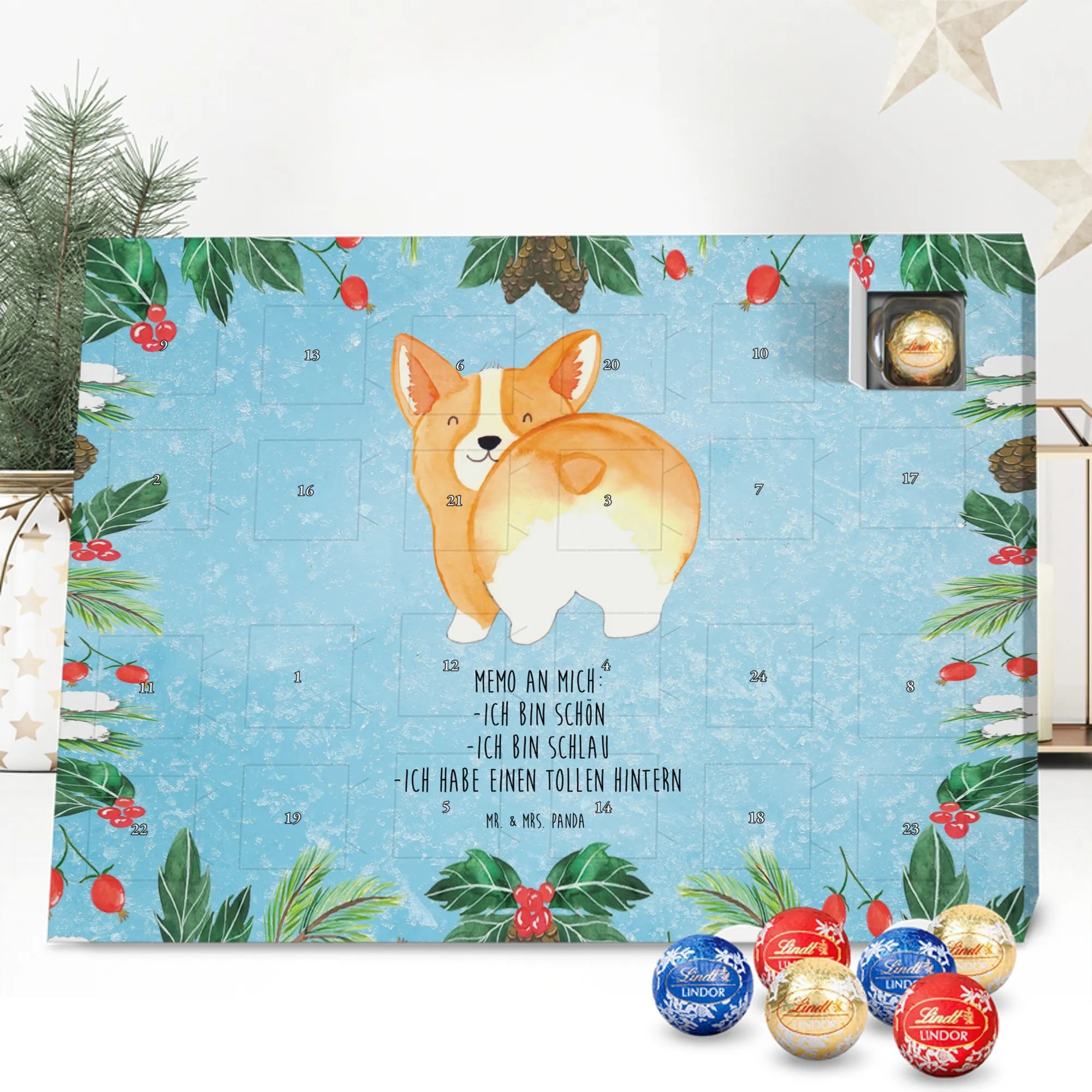 schokolade adventskalender Corgi Po - Lindt LINDOR - mit Spruch - Eisblau