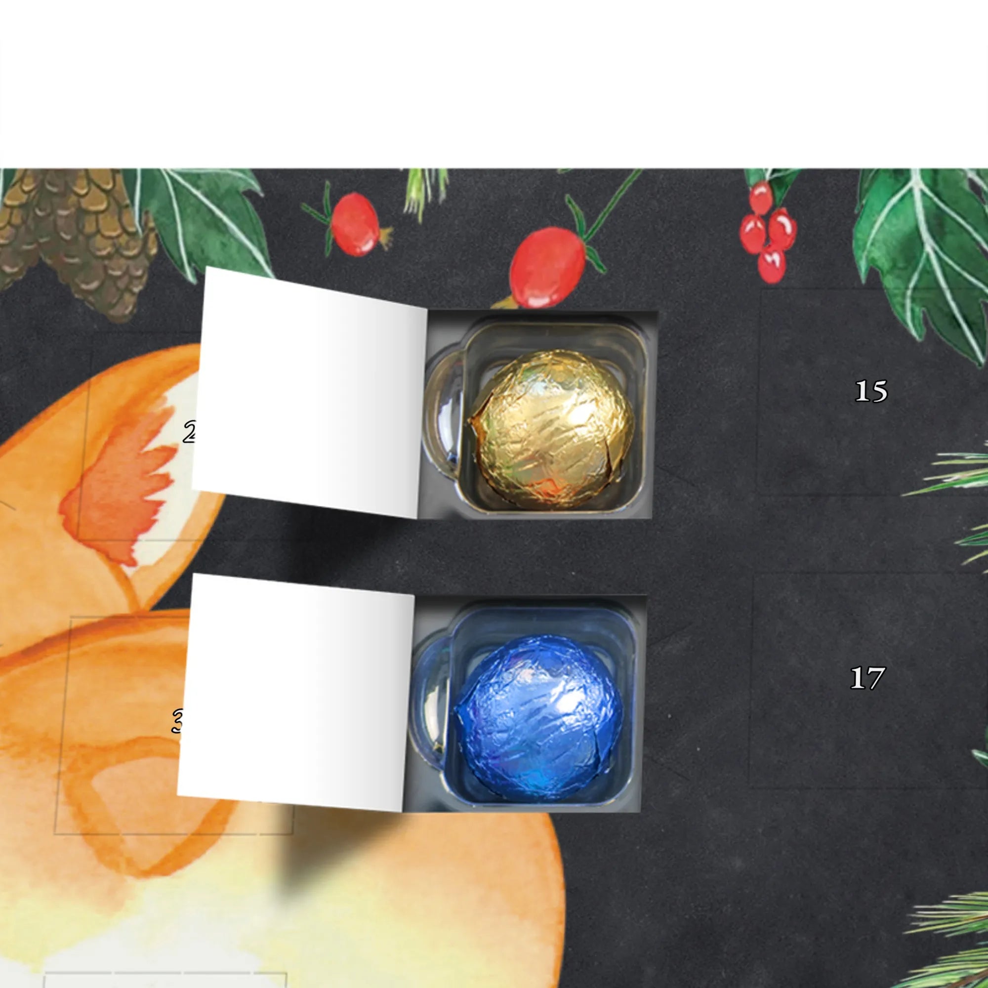 Wunderschöner Adventskalender Schokolade von Mr. & Mrs. Panda – die perfekte Mischung aus Charme und Genuss. Unser Adventskalender Schokolade ist liebevoll gestaltet und bedruckt mit wunderschönen Motiven & Sprüchen von Mr. & Mrs. Panda, die jede Adventszeit verschönern. Der Kalender ist nicht personalisierbar, aber dafür mit viel Liebe zum Detail produziert. Er besticht durch brillante Druckqualität mit seidenmatter Oberflächenveredelung und bedruckte Seitenflächen, die für eine elegante Optik sorgen. Maße: 233 mm x 178 mm x 24 mm. Durch seine stabile Form kannst du ihn aufstellen oder an die Wand hängen – Besonderheit: kann aufgehängt oder aufgestellt werden. Gefüllt mit MARKENNAMEN Schokolade und gefüllt mit leckeren Schokoladenkugeln, bietet er jeden Tag eine leckere Überraschung. Bitte beachte die besonderen Hinweise: (Kann Spuren von Haselnüssen, Mandeln, Gluten und Soja enthalten!), kühl und trocken lagern. Ob als kleines Geschenk, Tischdeko oder Adventsüberraschung für Kinder und Erwachsene – dieser Kalender bringt ein Lächeln in die Vorweihnachtszeit. Viel Spaß beim täglichen Türchenöffnen wünscht dir Mr. & Mrs. Panda!