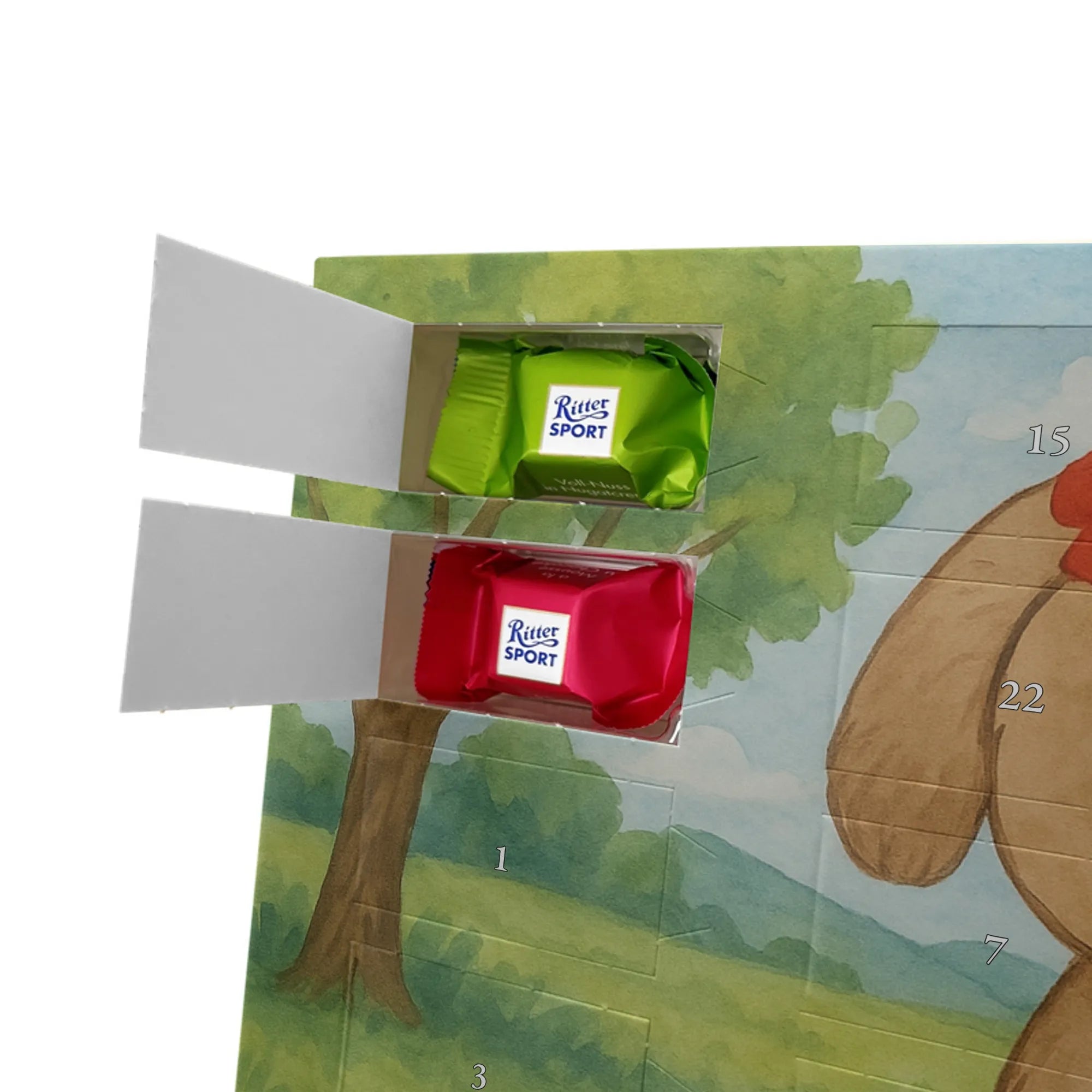 🐼 24 Türchen gefüllt mit Ritter Sport Schokowürfeln – perfekte Adventsüberraschungen.