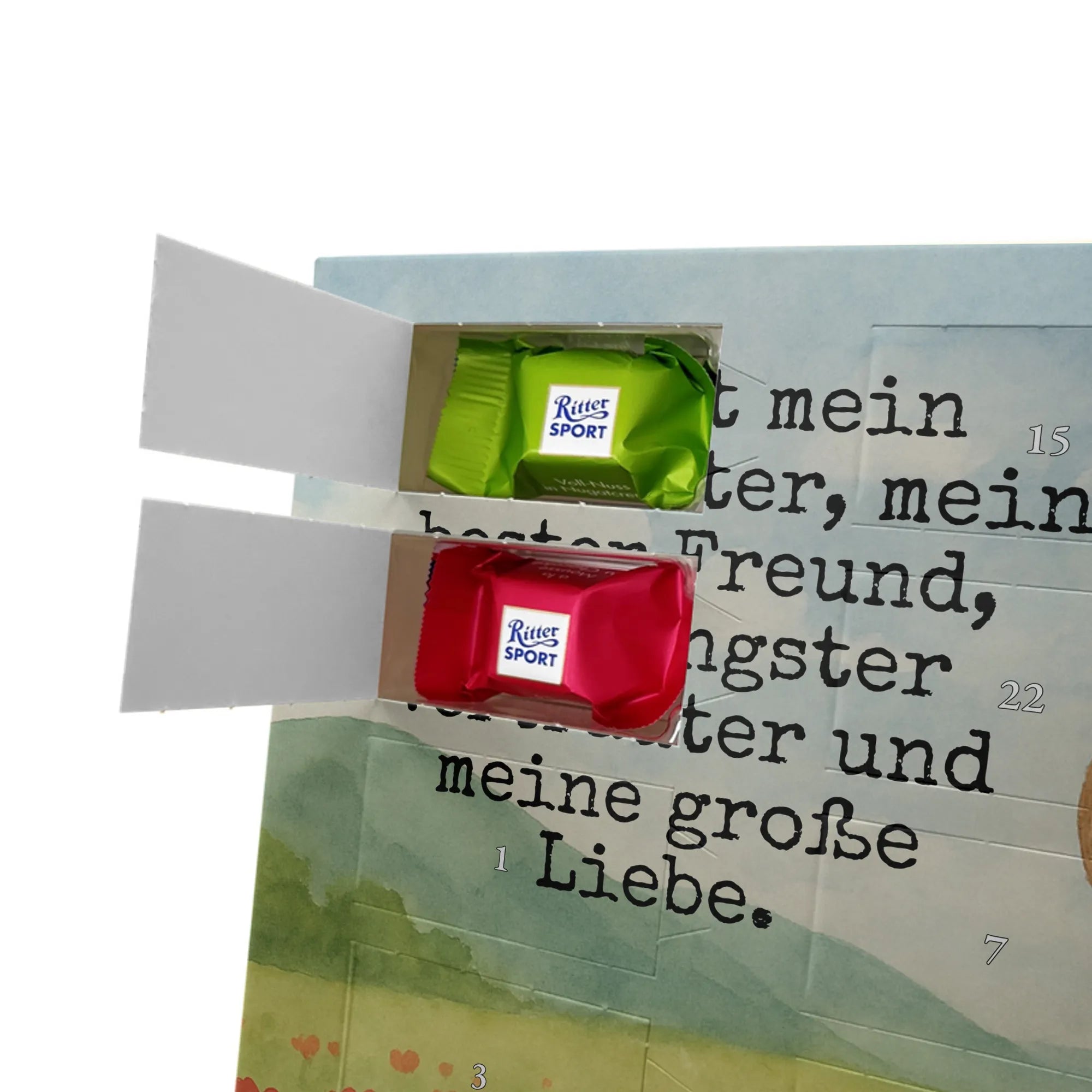 Schon unser Schoko-Adventskalender von Mr. & Mrs. Panda gesehen? Ein liebevoll gestalteter Kalender, bedruckt mit wunderschönen Motiven & Sprüchen, der deine Adventszeit versüßt. Der Kalender ist nicht personalisierbar, überzeugt aber durch brillante Druckqualität mit seidenmatter Oberflächenveredelung und bedruckte Seitenflächen für ein rundum schönes Erscheinungsbild. Maße: 325 mm x 225 mm x 27 mm. Du kannst ihn aufhängen oder aufstellen – ganz wie es dir gefällt. Gefüllt mit Ritter Sport Schokowürfeln in köstlichen Sorten: Mousse au Chocolat, Schoko Crisp, Voll-Nuss in Nougatcreme, Karamell Duo, Joghurt und Erdbeer-Joghurt. Bitte beachten: Es handelt sich um einen Kalender gefüllt mit Ritter Sport Schokolade, nicht um einen Kalender der Marke Ritter Sport. Ob als Geschenk oder für dich selbst – dieser Schoko-Adventskalender bringt täglich kleine Glücksmomente und süße Überraschungen.