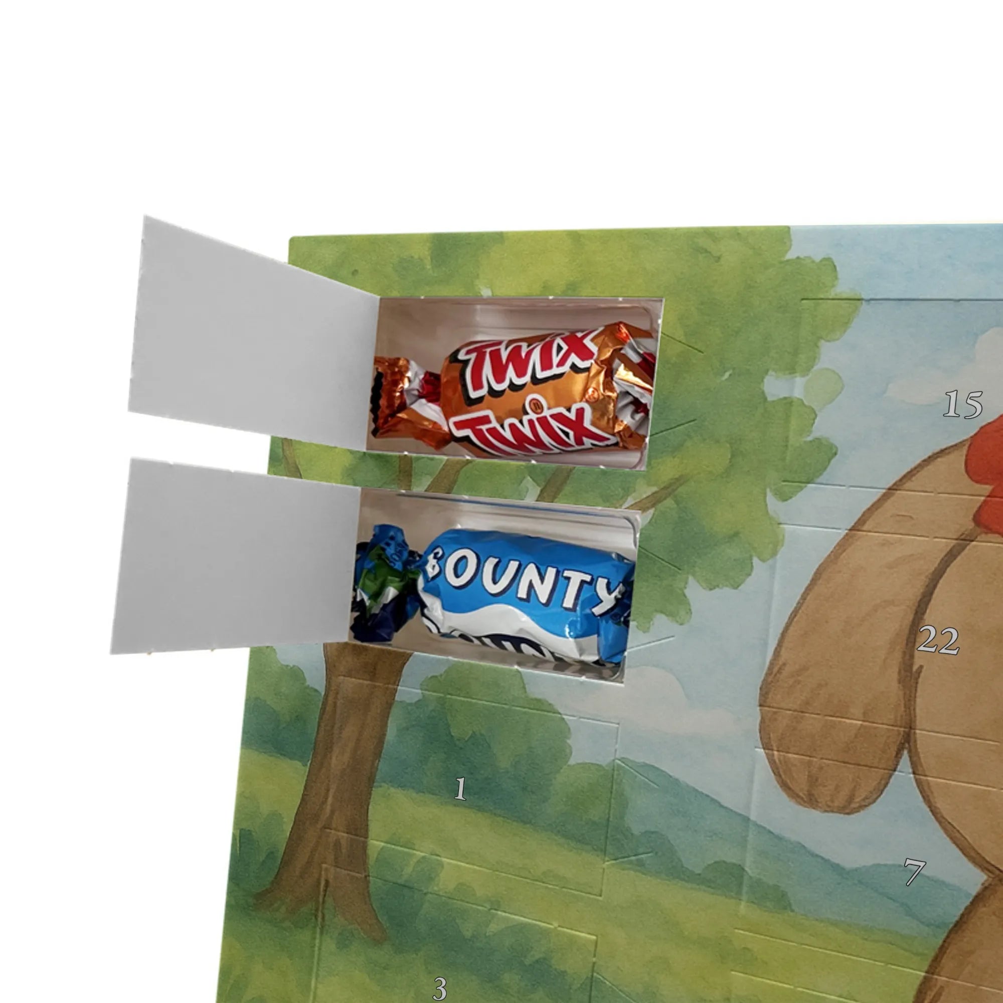 🐼 Schoko-Adventskalender: Liebevolles Design, seidenmatt, brillanter Druck – ein Hingucker.