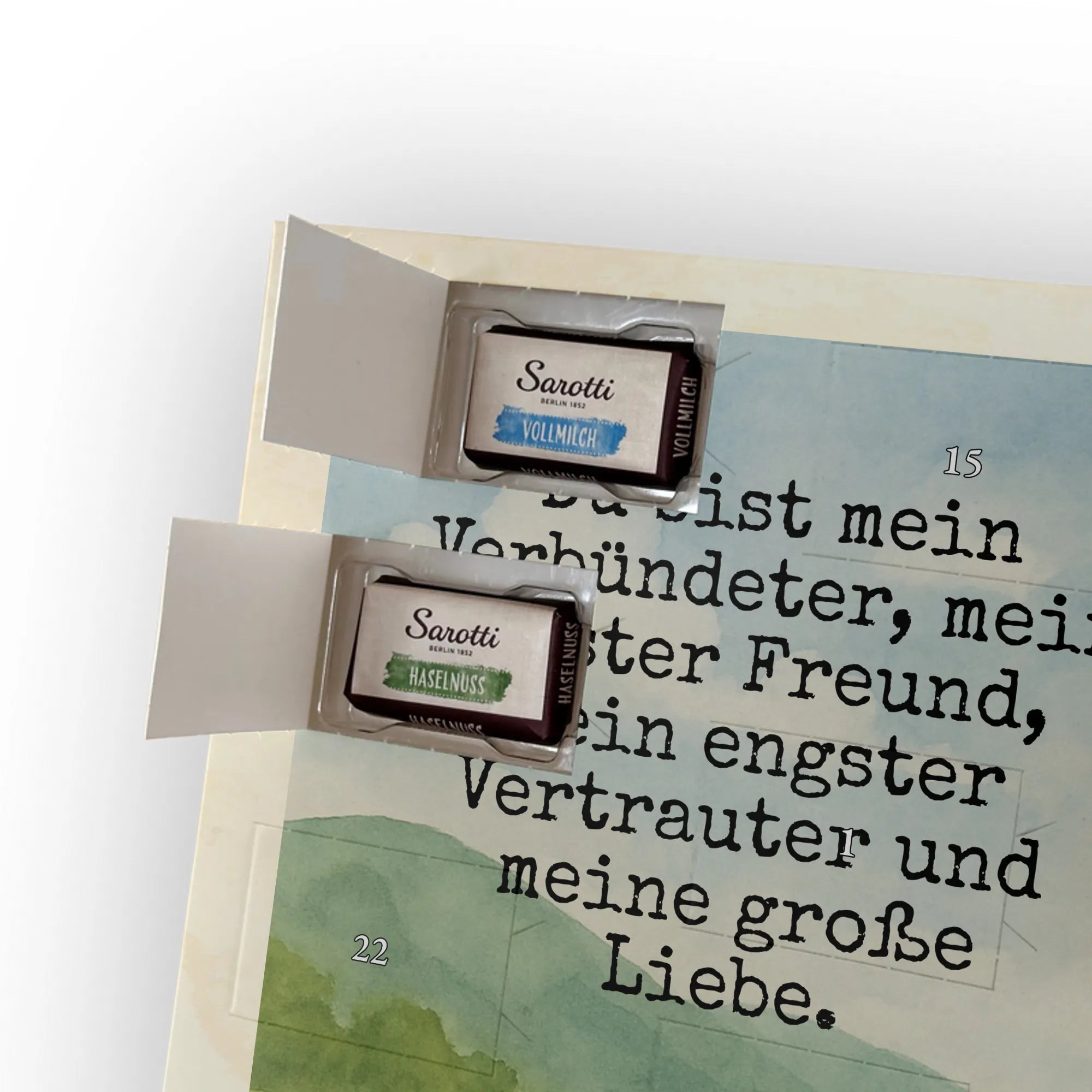 🐼 Schokoladen Adventskalender mit liebevollen Sprüchen und seidenmatter Lackierung.