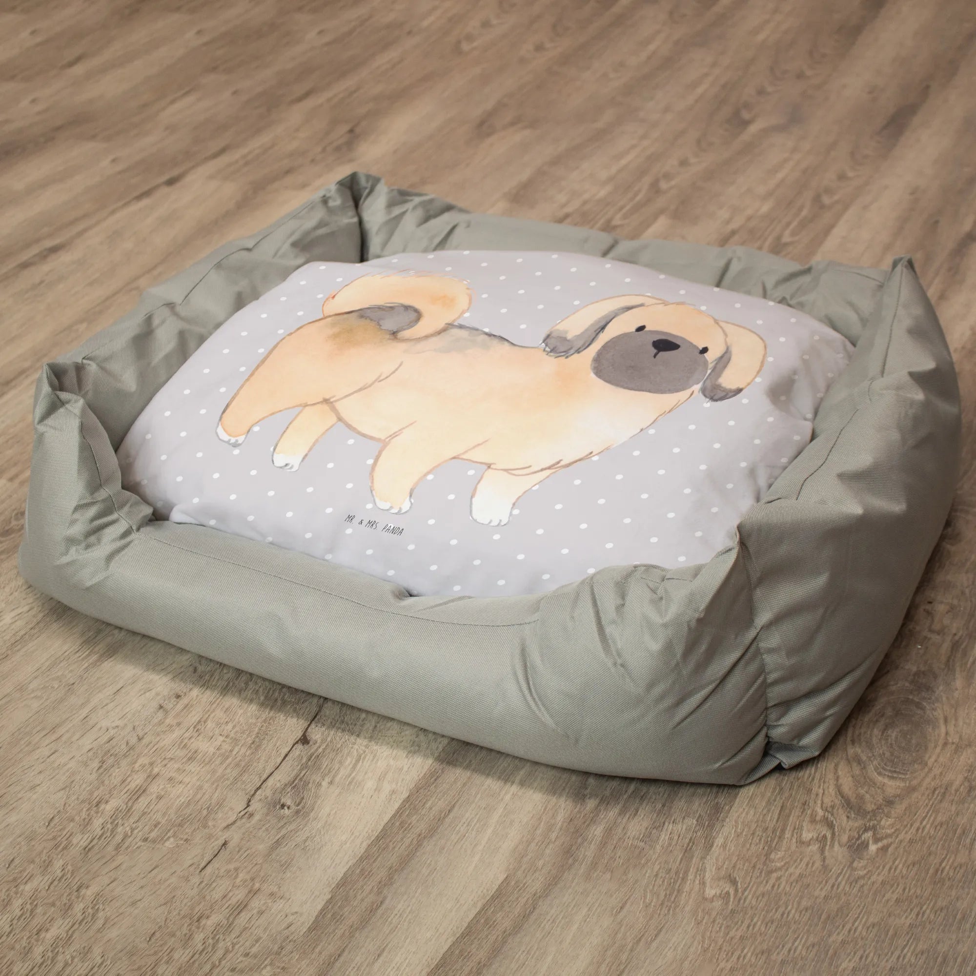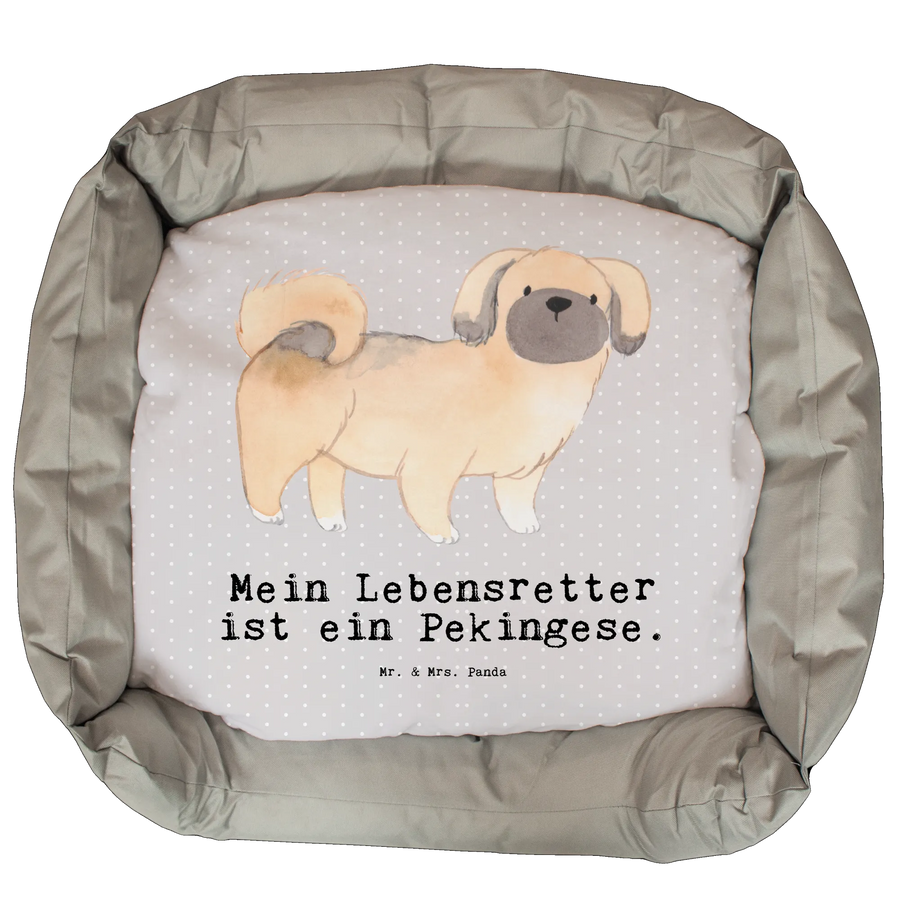 Das Hundebett Pekingese Lebensretter von Mr. & Mrs. Panda ist die perfekte Oase für deinen treuen Begleiter und ein ideales Geschenk für jeden Hundeliebhaber. Egal, ob dein Hund ein kleiner Pekingese oder ein anderer treuer Freund ist, dieses luxuriöse Hundebett sorgt garantiert für erholsame Nächte und entspannte Tage. Es ist nicht nur ein Schlafplatz, sondern bringt auch Stil und Komfort in jeden Raum. Das Bett ist in einem zarten Grau gestaltet, mit einer liebevollen Illustration eines Pekingesen, der mit seinem runden, flauschigen Fell und seinen großen, freundlichen Augen direkt ins Herz trifft. Der Slogan „Mein Lebensretter ist ein Pekingese“ macht das Bett zu einem besonders liebevollen Geschenk für alle Besitzer dieser zauberhaften Hunderasse.