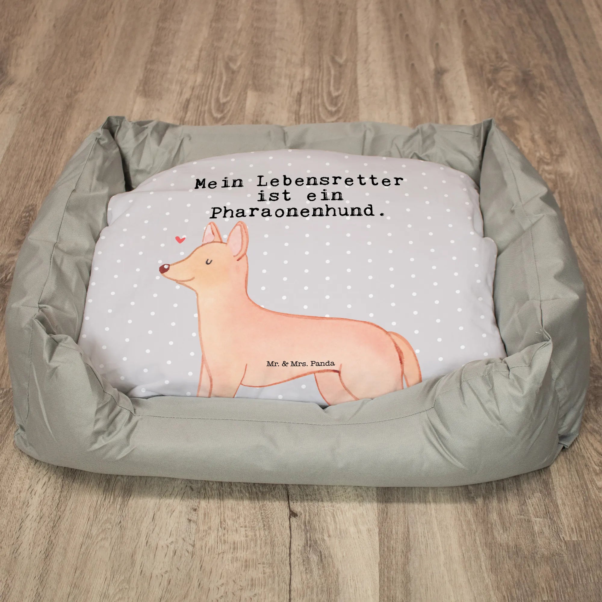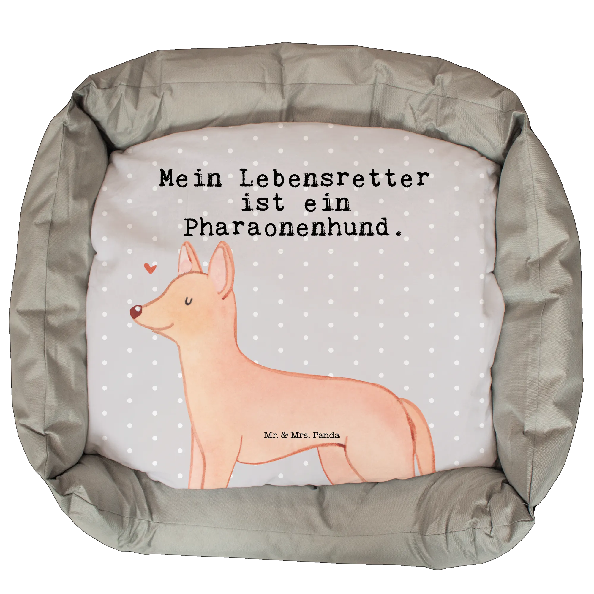 Das Hundebett Pharaonenhund Lebensretter von Mr. & Mrs. Panda ist das perfekte Geschenk für alle Hundeliebhaber und -besitzer! Es verbindet Funktionalität mit einem süßen Design, das das Herz jedes Tierfreundes höher schlagen lässt. Gefertigt aus besonders kuscheliger Kunstfaser, bietet es deinem Hund den ultimativen Komfort und die Geborgenheit, die er braucht. Mit den Maßen von 650 mm x 650 mm x 110 mm bietet das Hundebett ausreichend Platz für entspannte Nachmittage oder erholsame Nächte.