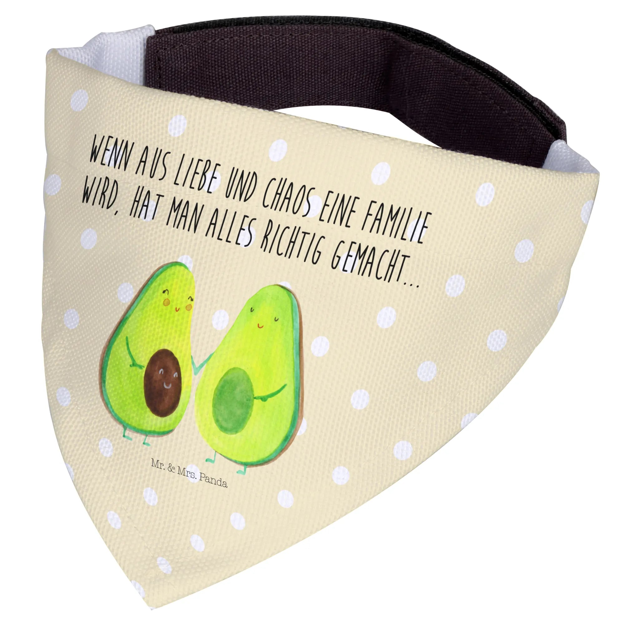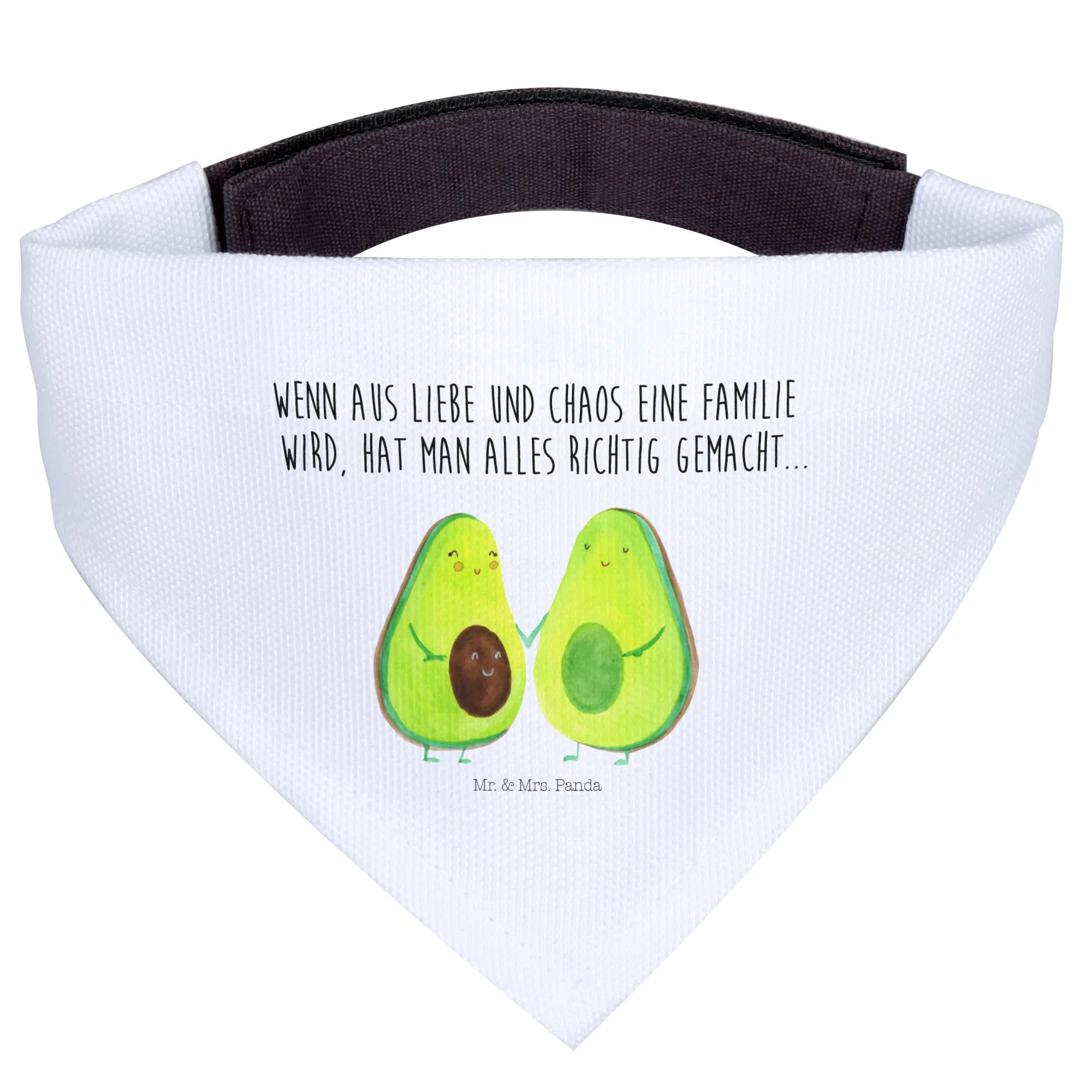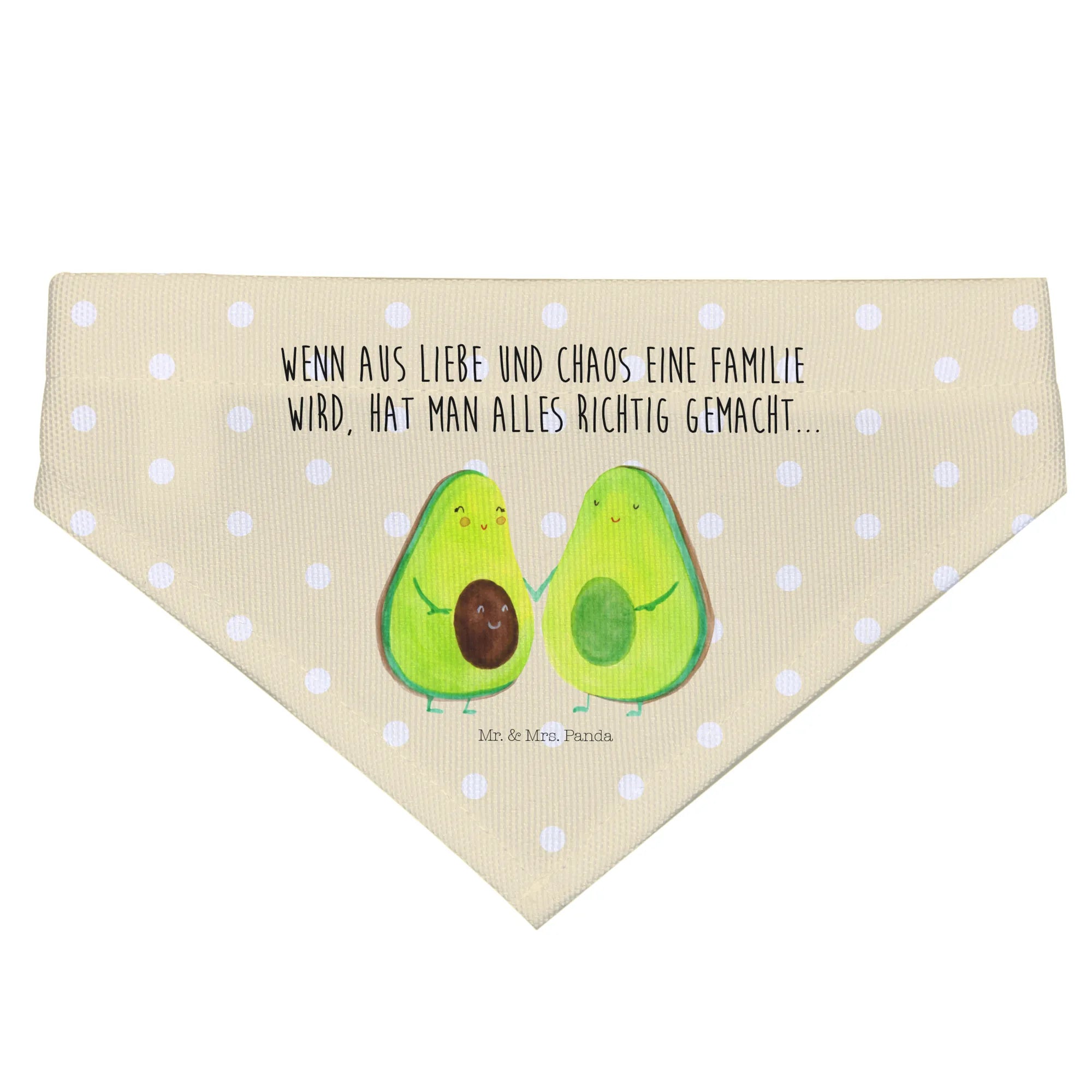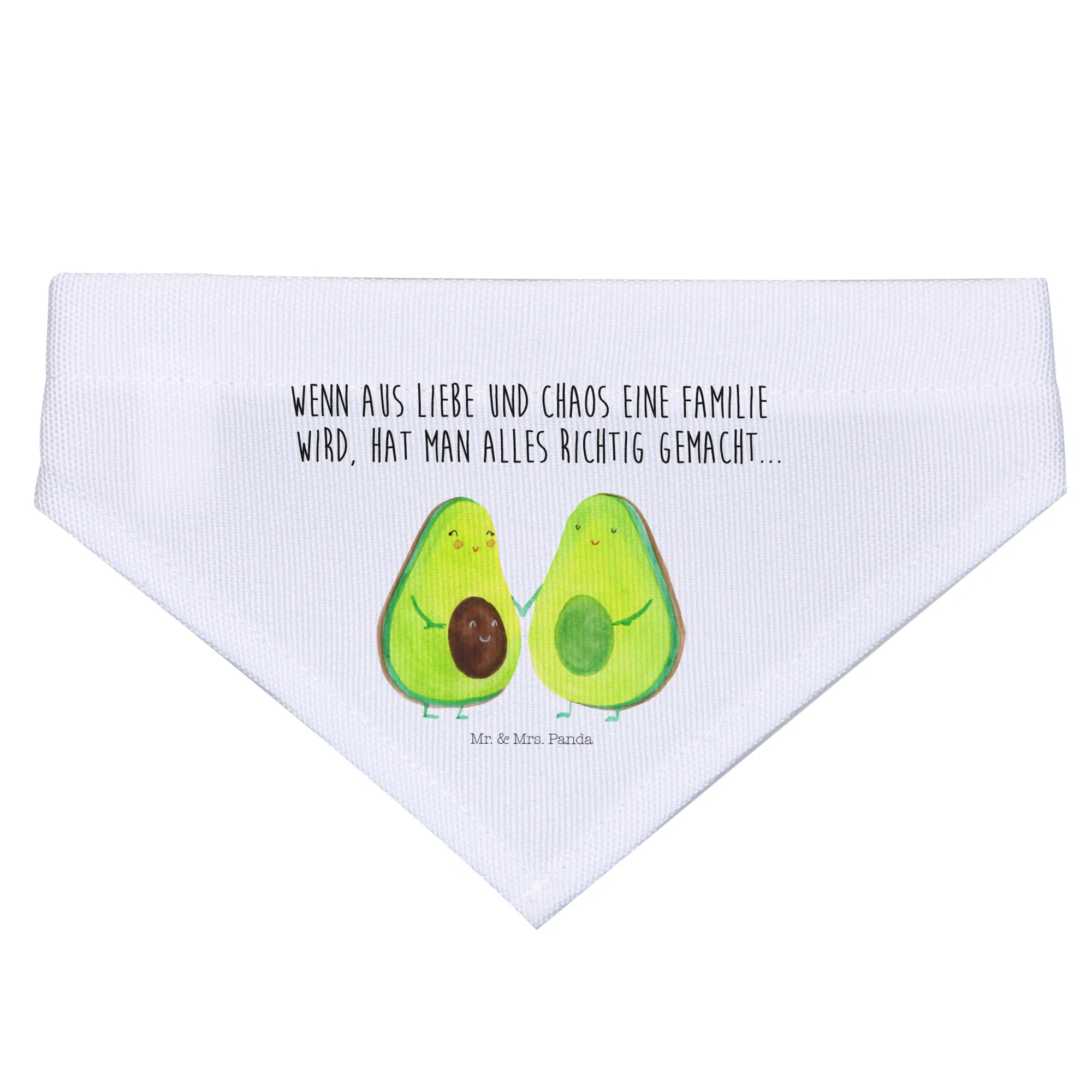 Das Hundehalstuch S mit dem süßen Avocado Pärchen aus der Avocado Kollektion von Mr. & Mrs. Panda ist der perfekte Begleiter für kleine Hunde und deren Besitzer. Dieses liebevoll gestaltete Halstuch ist nicht nur ein stylisches Accessoire, sondern erzählt auch eine ganz besondere Geschichte. Mit dem Spruch 'Wenn aus Liebe und Chaos eine Familie wird, hat man alles richtig gemacht...' zauberst Du jedem ein Lächeln ins Gesicht.
