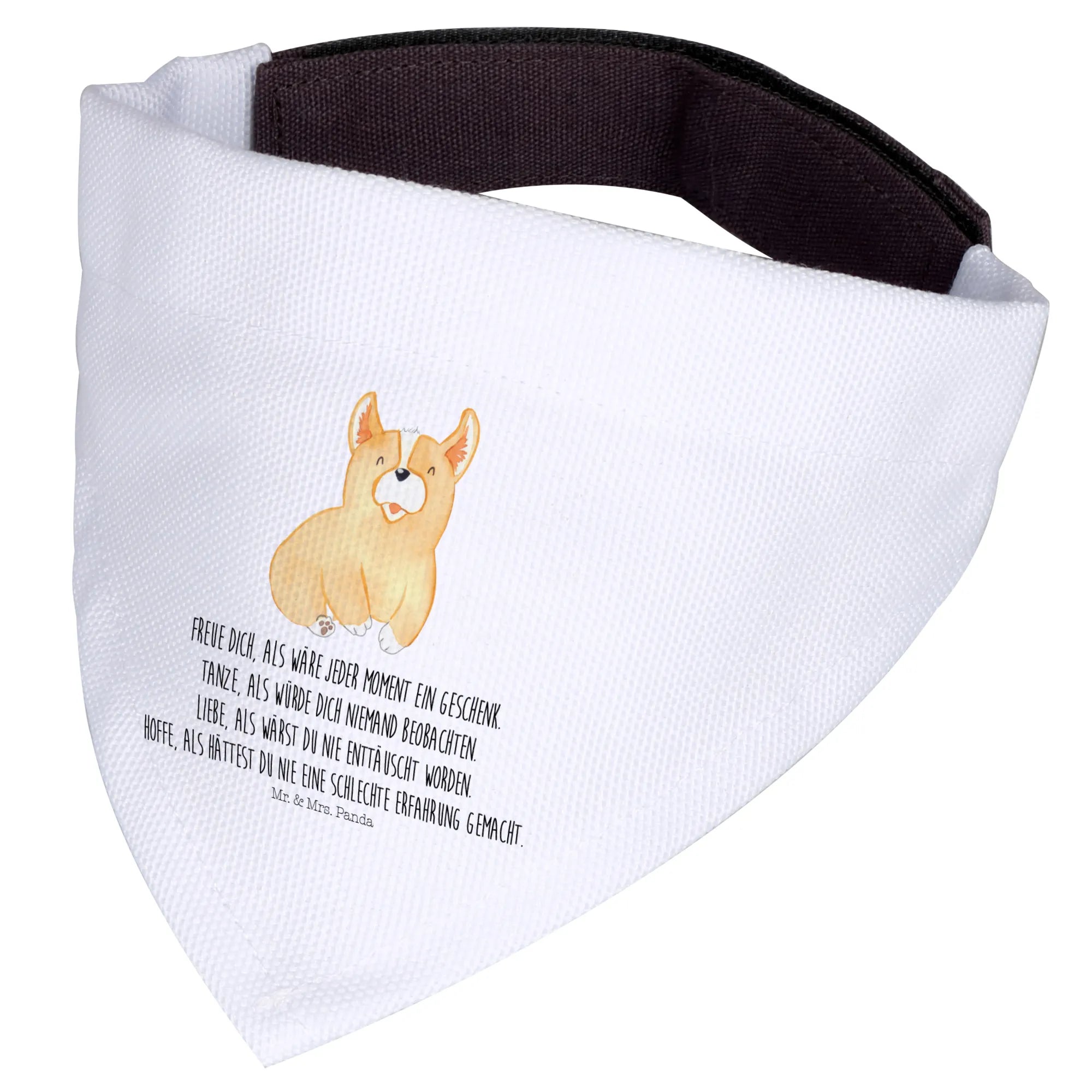 Dieses wunderschöne Hundeaccessoire aus der beliebten Hunde Kollektion ist weit mehr als nur ein einfaches Tuch. Das Motiv zeigt einen herzallerliebsten Corgie, einen Welsh Corgie Pembroke, der mit seinem unverwechselbaren Charme und seinem freundlichen Wesen sofort jedes Herz gewinnt. Begleitet wird das liebevoll von Mrs. Panda handgezeichnete Aquarell-Motiv von einem Spruch, der uns alle daran erinnern soll, wie kostbar das Leben ist: Freue dich, als wäre jeder Moment ein Geschenk. Tanze, als würde dich niemand beobachten. Liebe, als wärst du nie enttäuscht worden. Hoffe, als hättest du nie eine schlechte Erfahrung gemacht. ✨