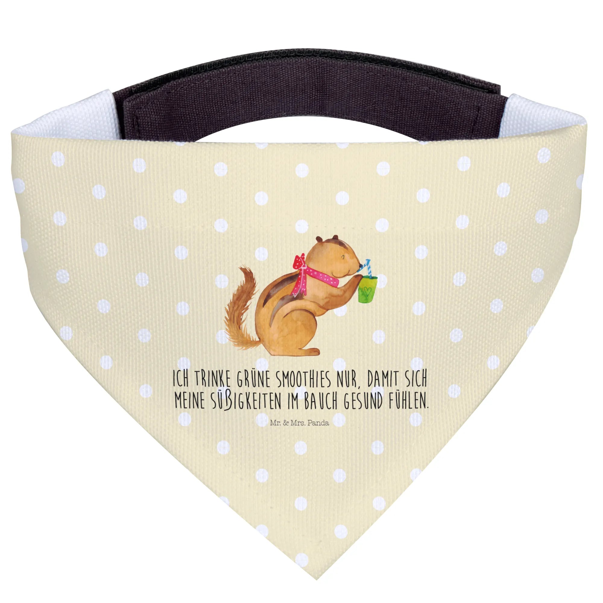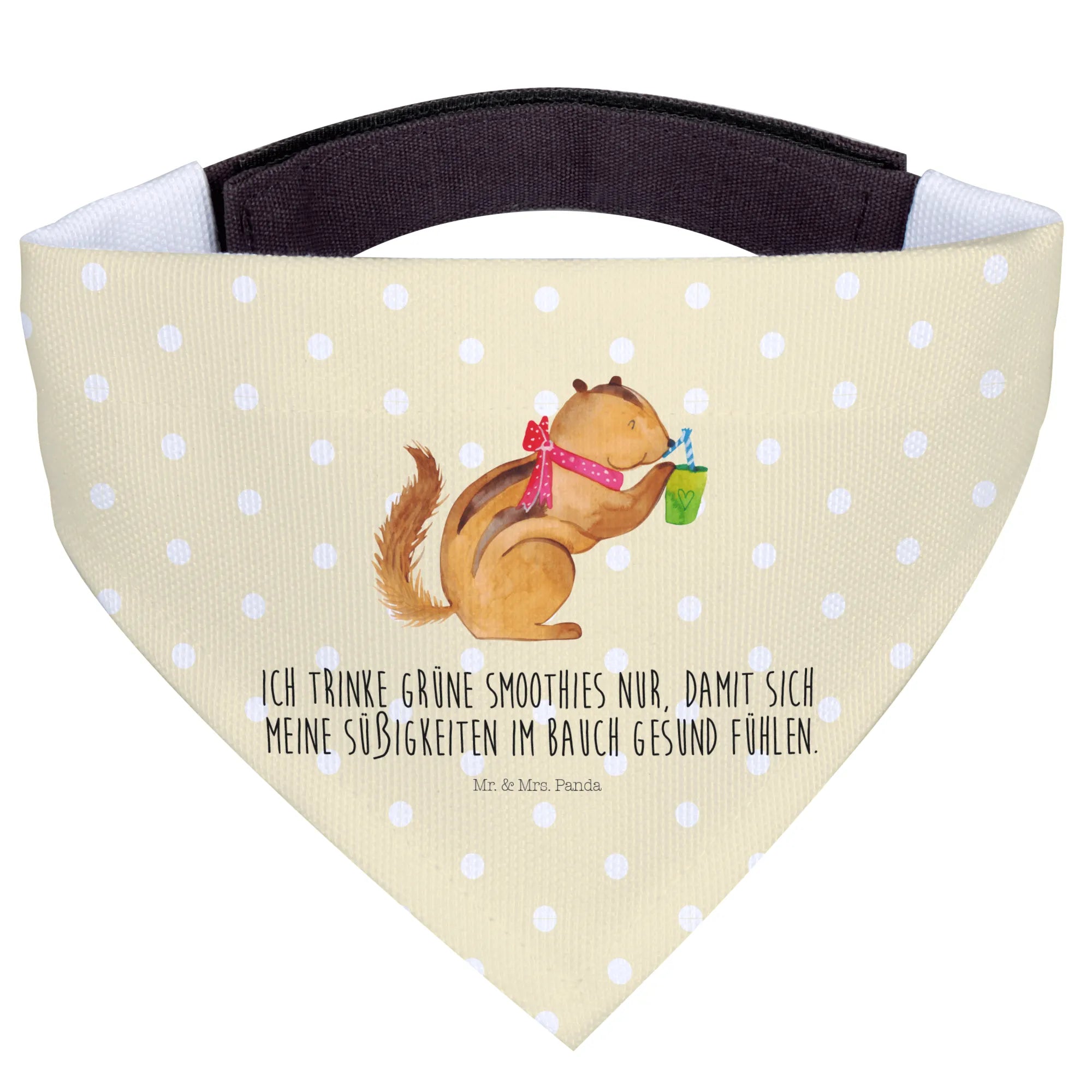 Entdecke das zauberhafte Hundehalstuch L mit dem niedlichen Eichhörnchen Smoothie-Motiv aus der Small World Kollektion von Mr. & Mrs. Panda! Dieses liebevoll gestaltete Halstuch ist nicht nur ein modisches Accessoire für große Hunde, sondern bringt auch jede Menge Freude und Gute Laune.