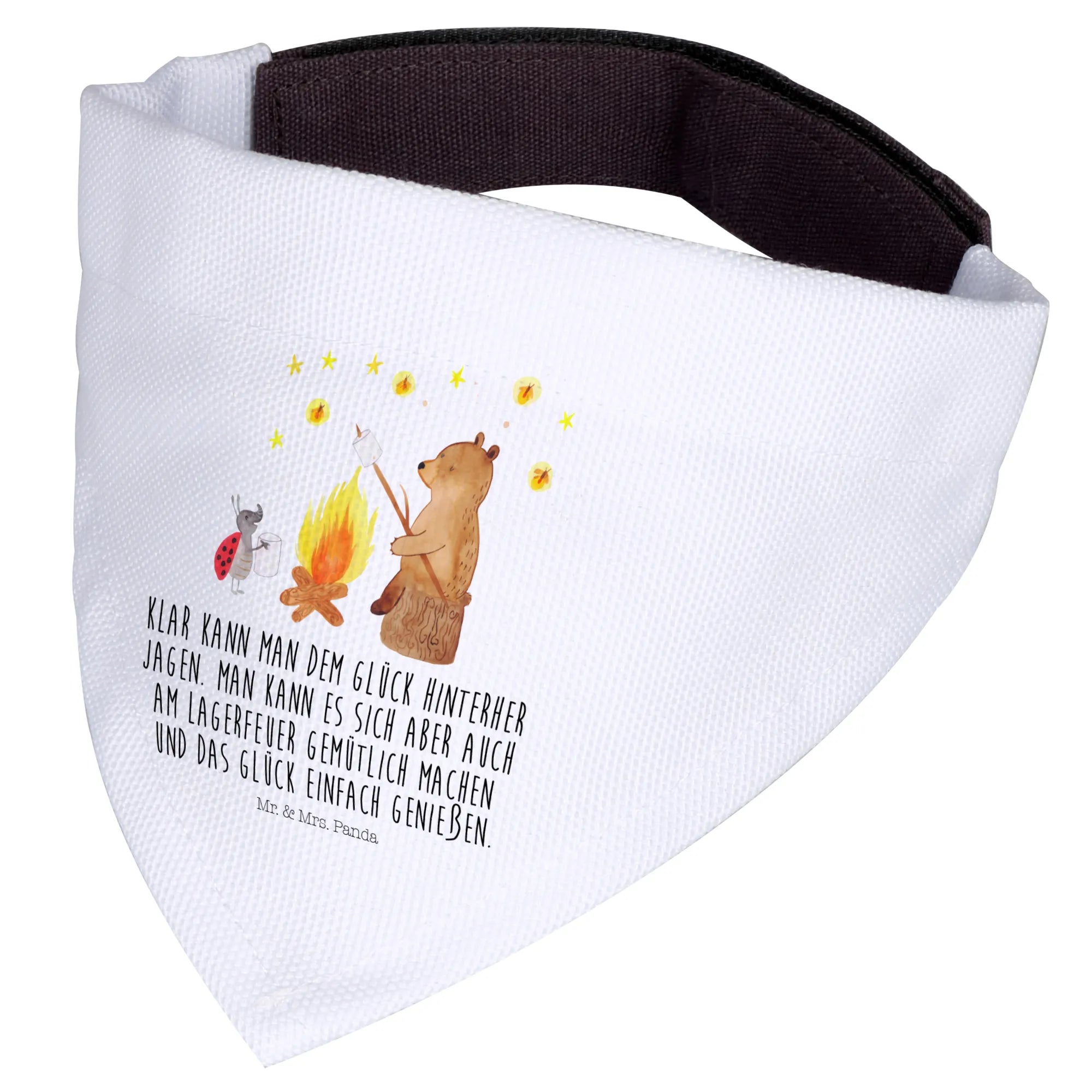 Das Hundehalstuch S mit dem liebevollen Motiv "Bär & Marienkäfer Lagerfeuer" aus der besonderen Bär-Kollektion von Mr. & Mrs. Panda ist das perfekte Geschenk für alle Hundeeltern kleiner Hunderassen. Es bringt nicht nur einen Hauch von Natur und Abenteuer in den Alltag, sondern beschenkt auch die Vierbeiner mit Stil und Komfort.