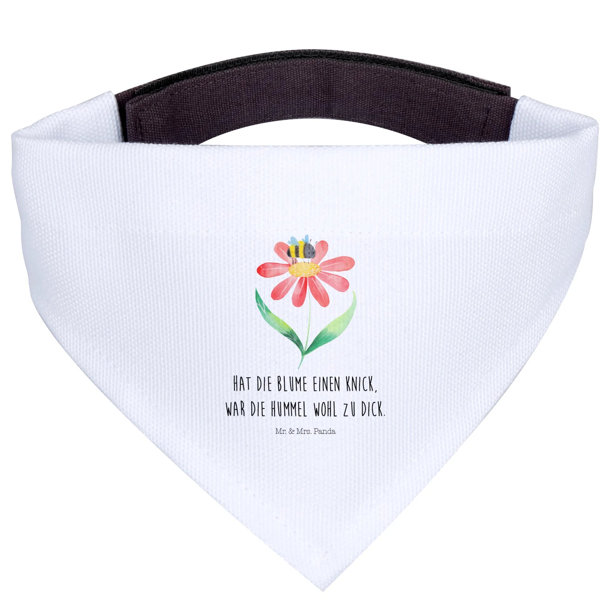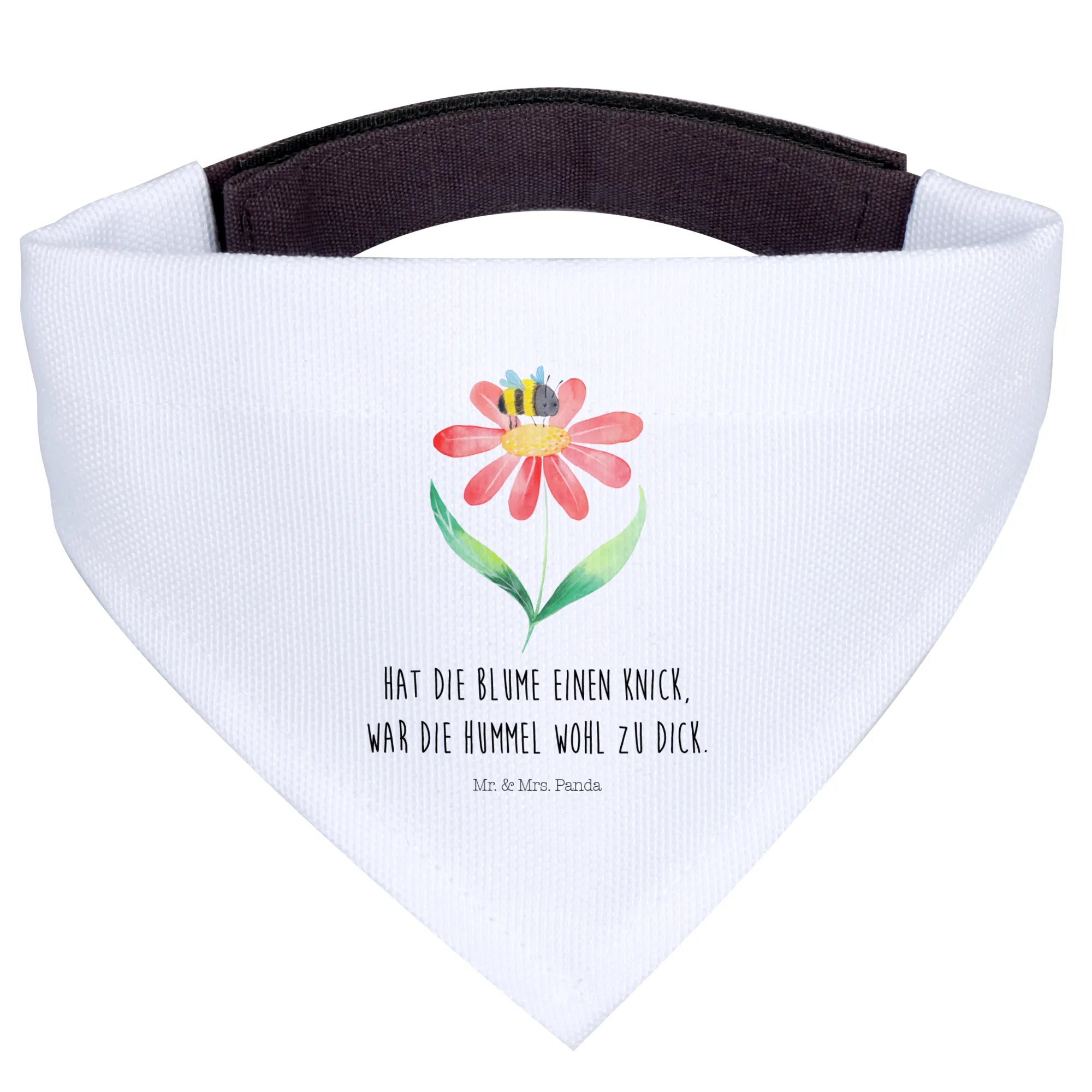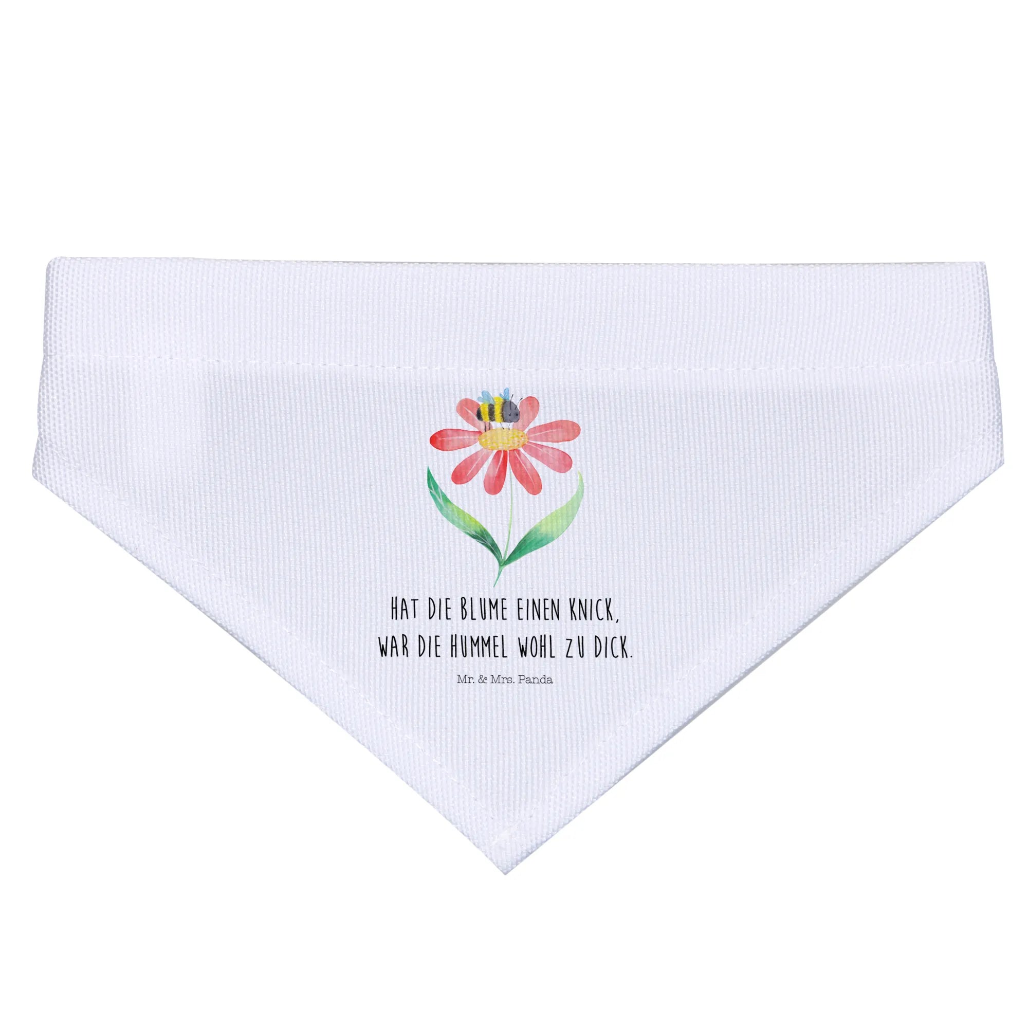 Dieses Hundehalstuch wurde mit viel Liebe von Mr. & Mrs. Panda gestaltet und strahlt nicht nur Stil, sondern auch eine herzliche Botschaft aus. Das witzige Motto "Hat die Blume einen Knick, war die Hummel wohl zu dick" sorgt für ein Lächeln auf den Gesichtern deiner Freunde und macht es zu einem perfekten Geschenk für jeden Hundeliebhaber.