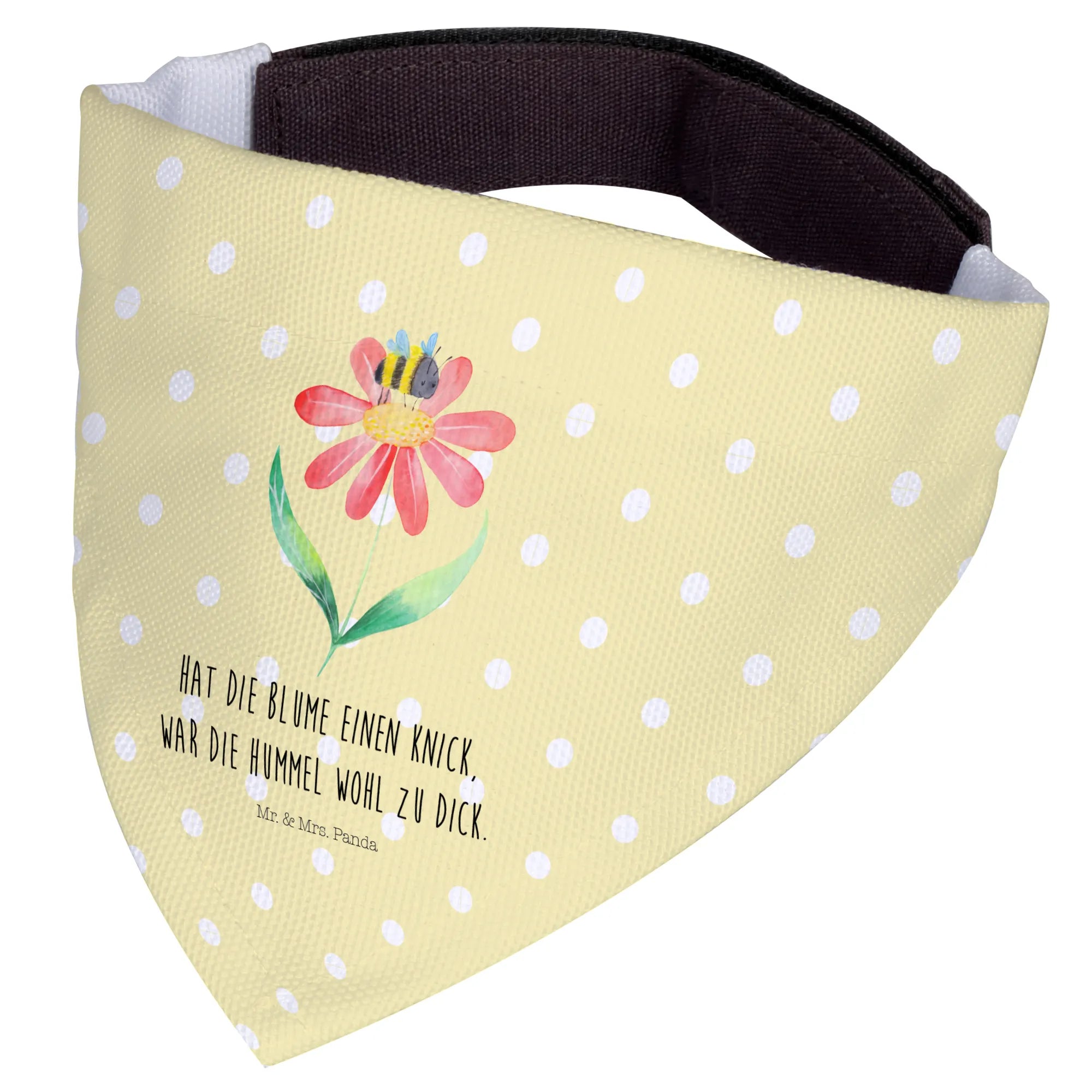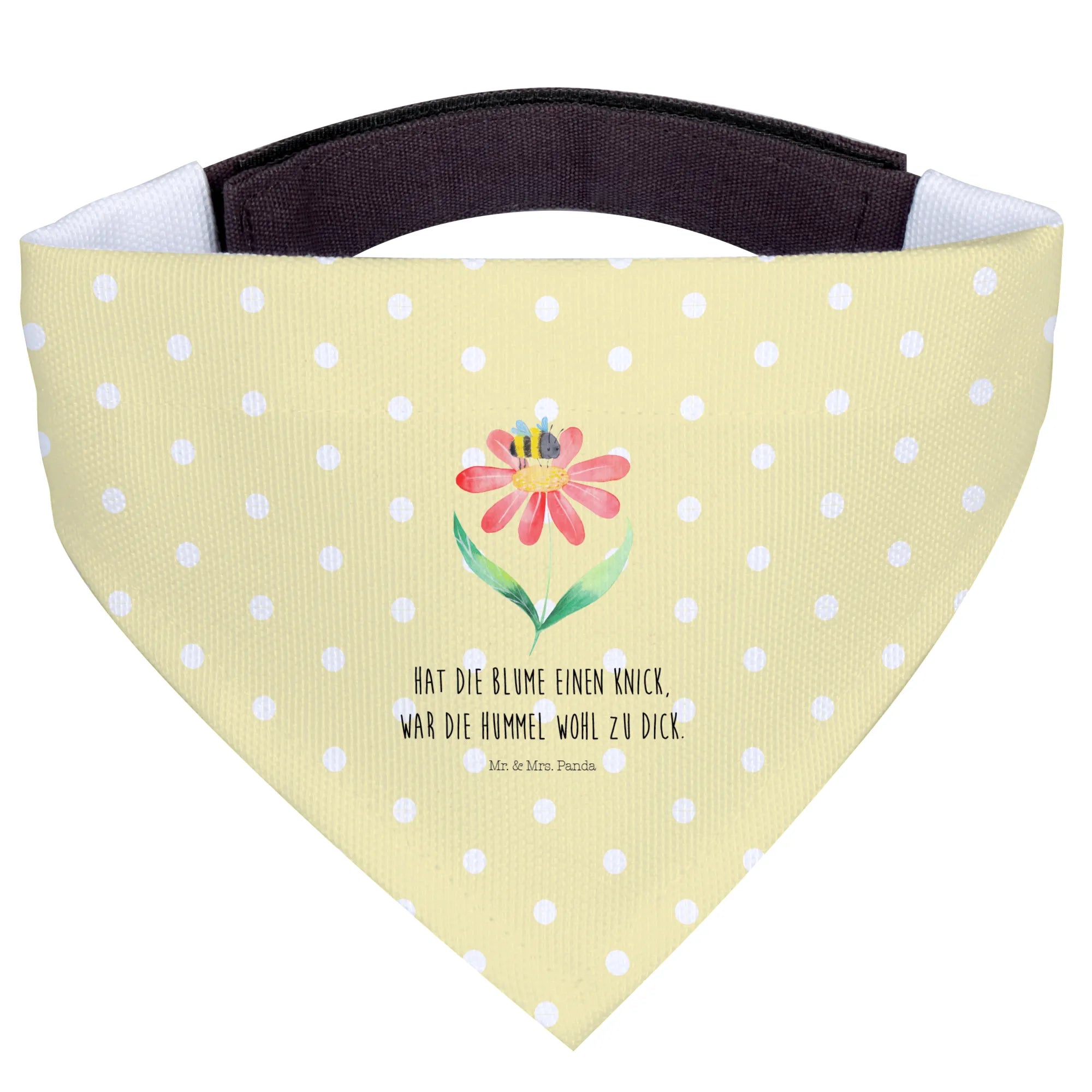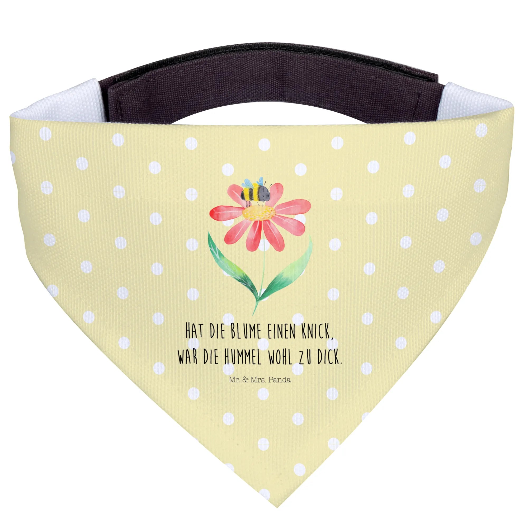 Dieses Hundehalstuch wurde mit viel Liebe von Mr. & Mrs. Panda gestaltet und strahlt nicht nur Stil, sondern auch eine herzliche Botschaft aus. Das witzige Motto "Hat die Blume einen Knick, war die Hummel wohl zu dick" sorgt für ein Lächeln auf den Gesichtern deiner Freunde und macht es zu einem perfekten Geschenk für jeden Hundeliebhaber.