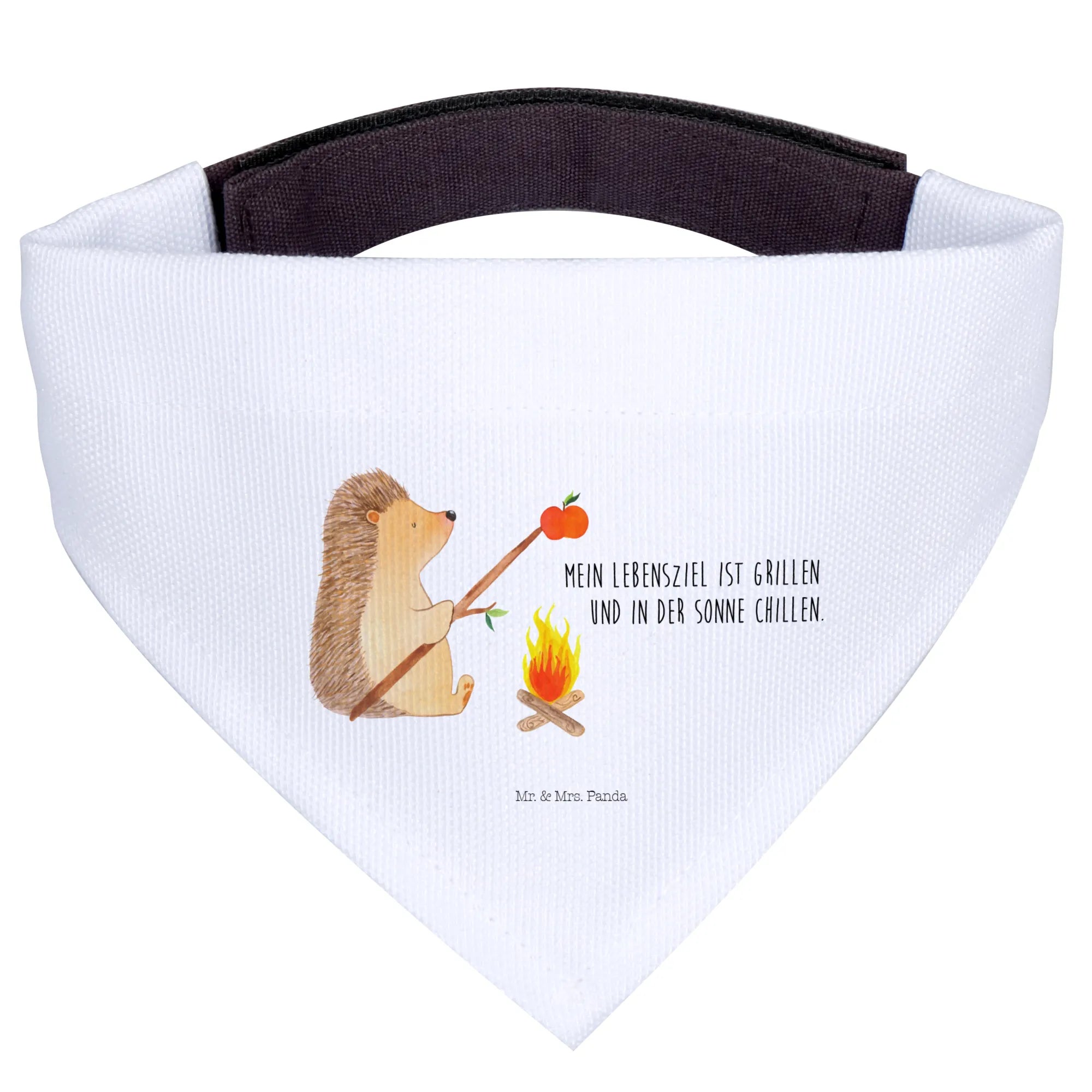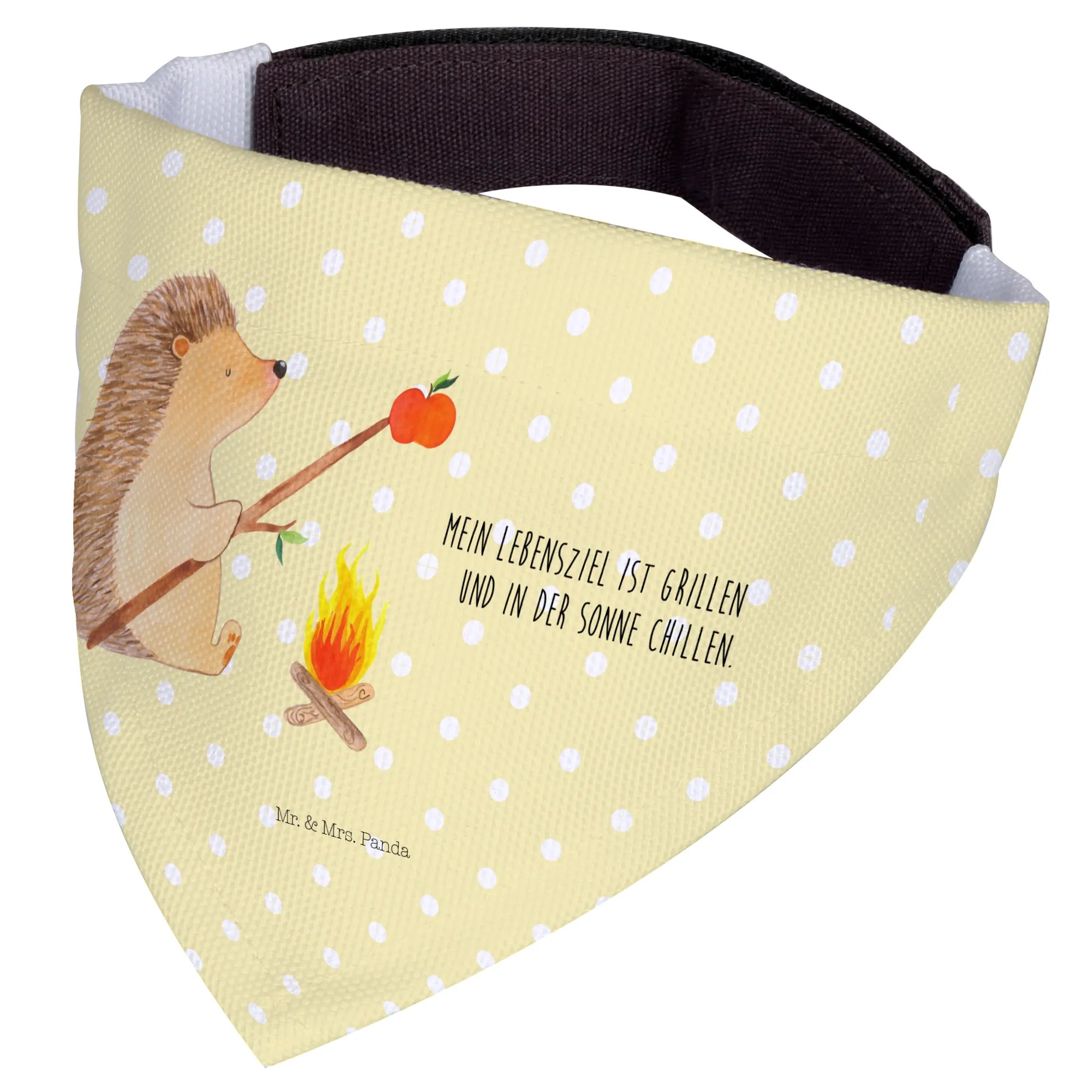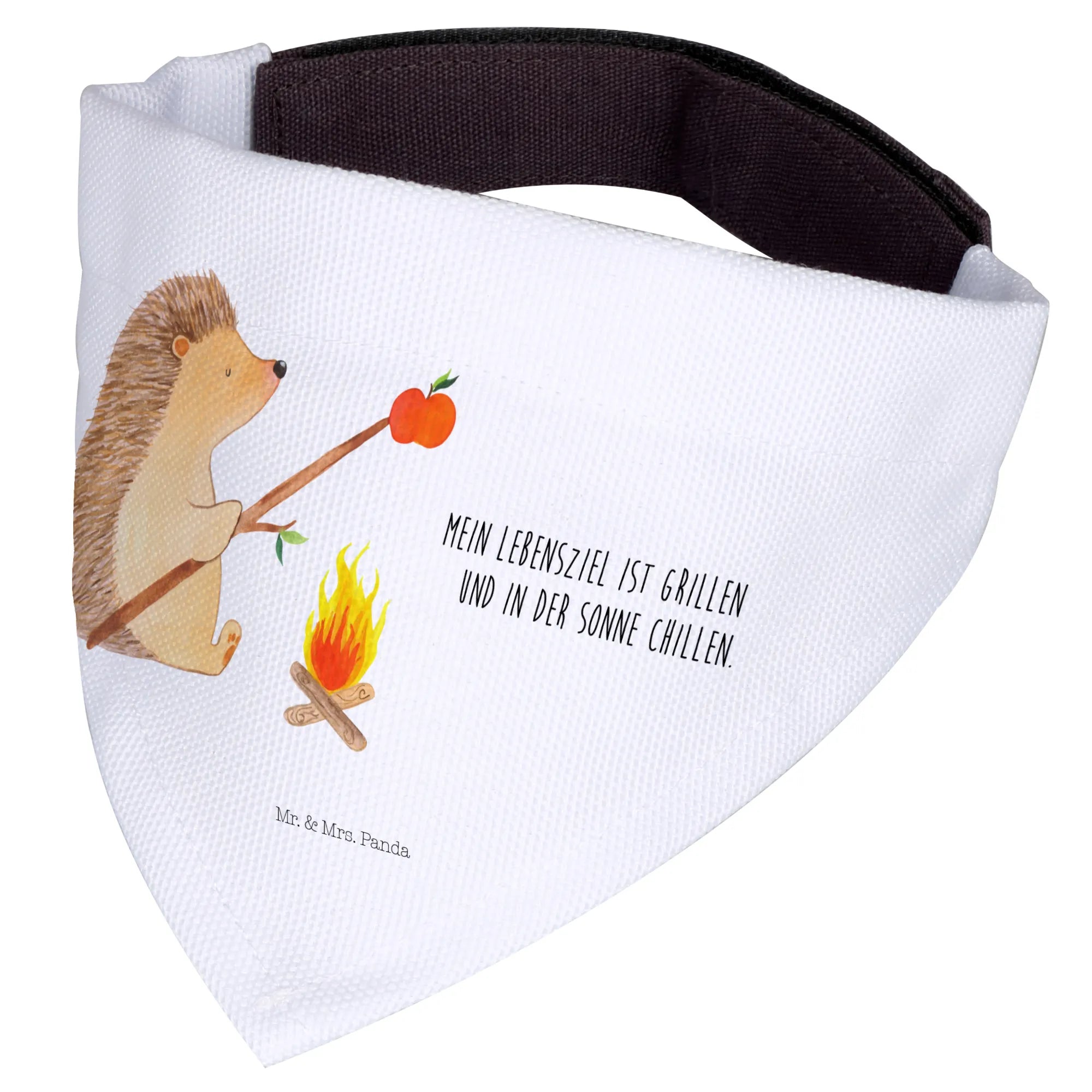 Das Hundehalstuch S mit dem niedlichen Motiv "Igel grillt" aus der Small World Kollektion von Mr. & Mrs. Panda ist das perfekte Geschenk für Hundeliebhaber! 🌟 Wenn Du mit Deinem kleinen Liebling entspannte Tage im Freien verbringst und ein Stückchen Gute Laune mitbringen möchtest, dann ist dieses Halstuch genau das Richtige. Der süße Igel, der um das Lagerfeuer sitzt und einen leckeren Apfel grillt, zaubert jedem ein Lächeln ins Gesicht. Der Spruch "Mein Lebensziel ist grillen und in der Sonne chillen" bringt zudem das Herz eines jeden Grillfans zum Schmelzen! 🥳