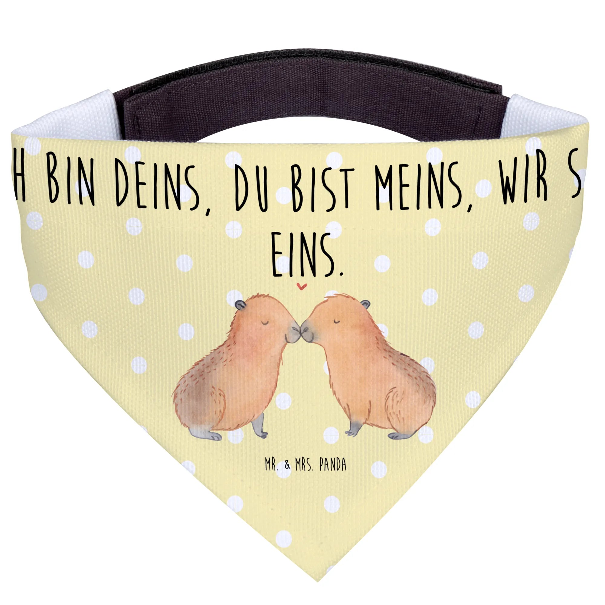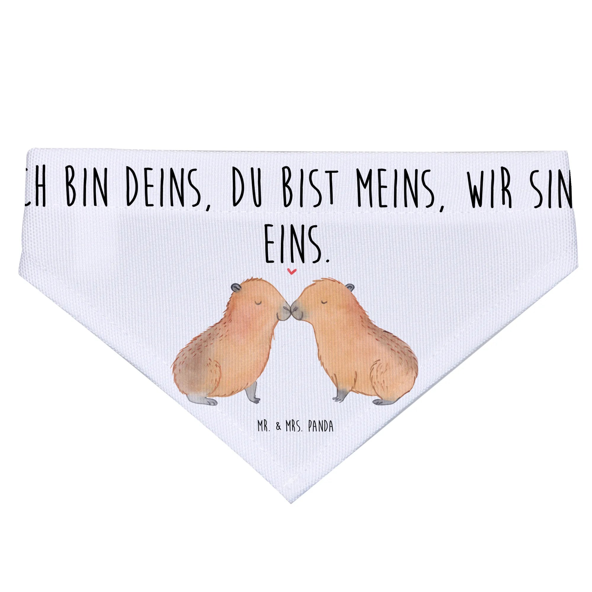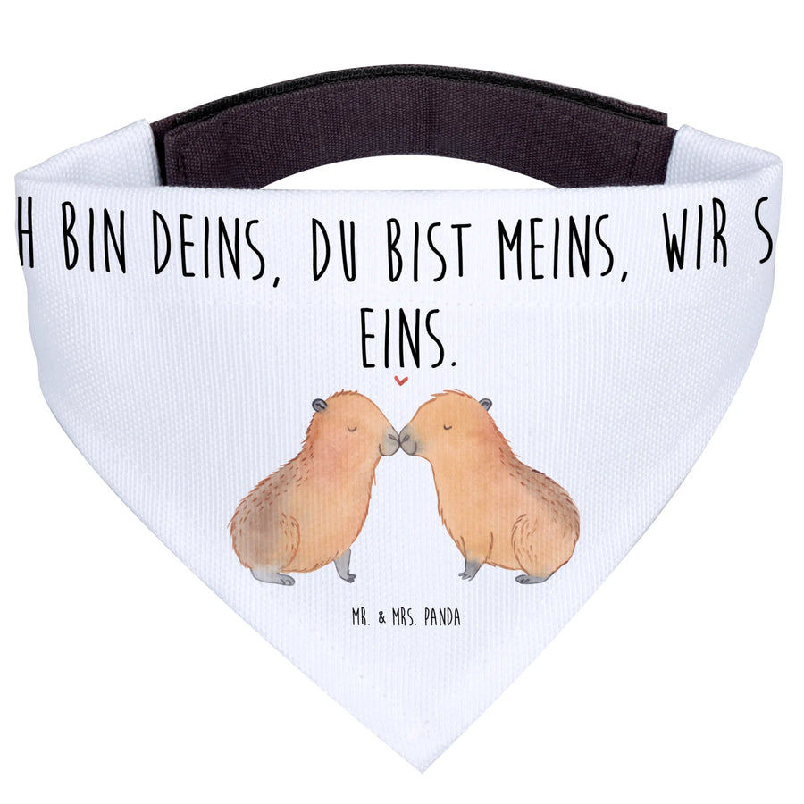 Entdecke das fantastische Hundehalstuch L mit dem süßen Capybara-Liebe-Motiv von Mr. & Mrs. Panda! Dieses liebevoll handgezeichnete Tuch zeigt ein zauberhaftes Paar von kuscheligen Capybaras, die sich zärtlich an der Nase berühren, während über ihnen ein kleines rotes Herz schwebt. Es ist das perfekte Accessoire für große Hunde, das nicht nur modisch ist, sondern auch einige wahre Werte in Sachen Tierliebe kommuniziert.