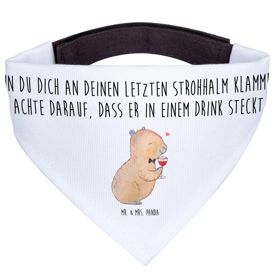Die zauberhafte Darstellung des heiteren Capybaras mit einer Weinflasche und dem Spruch "Wenn du dich an deinen letzten Strohhalm klammerst, achte darauf, dass er in einem Drink steckt." bringt die Freude des Lebens direkt zu deinem Hund und dir. Dieses Halstuch ist nicht nur ein praktisches Accessoire, sondern auch eine liebevolle Hommage an die Weinliebhaber unter uns.