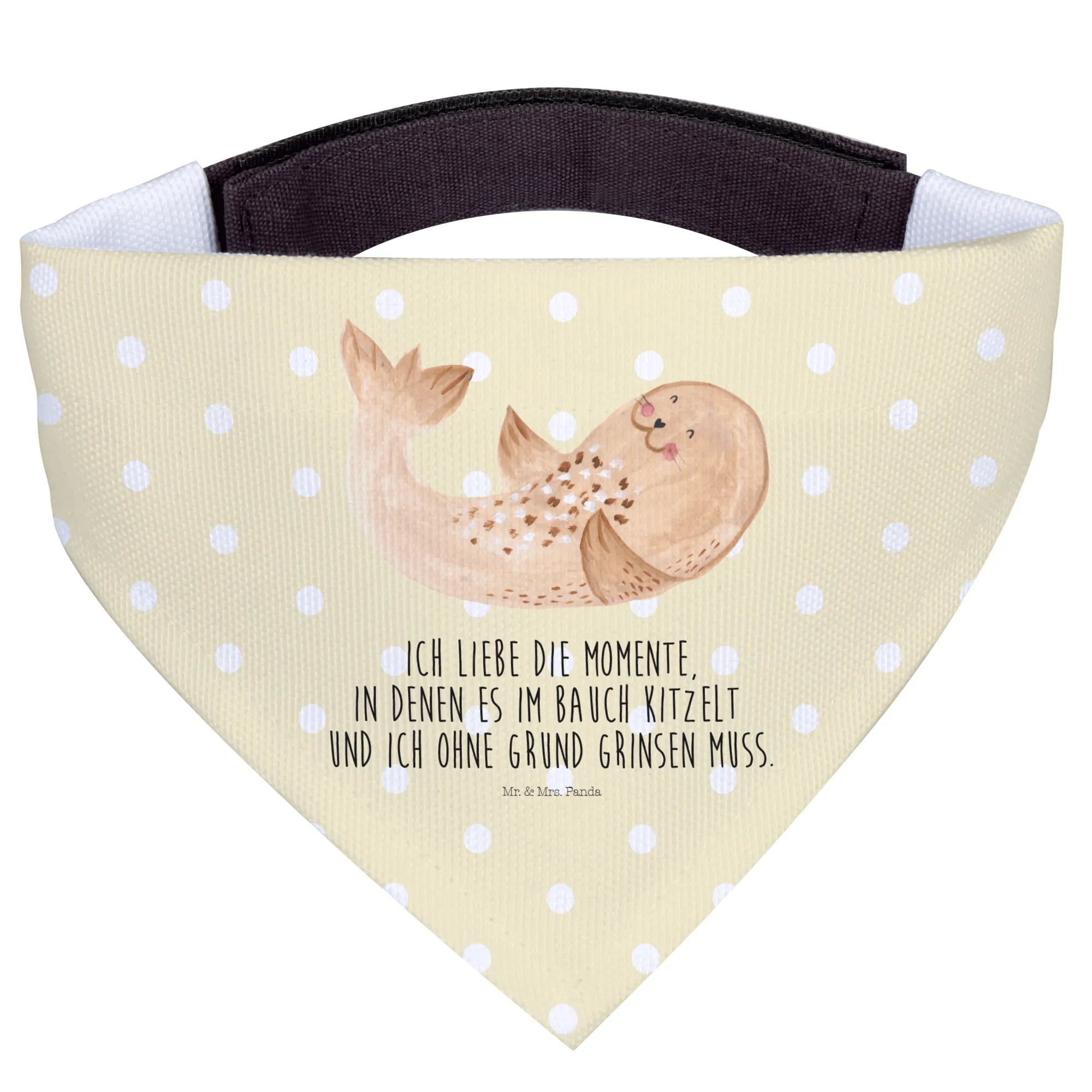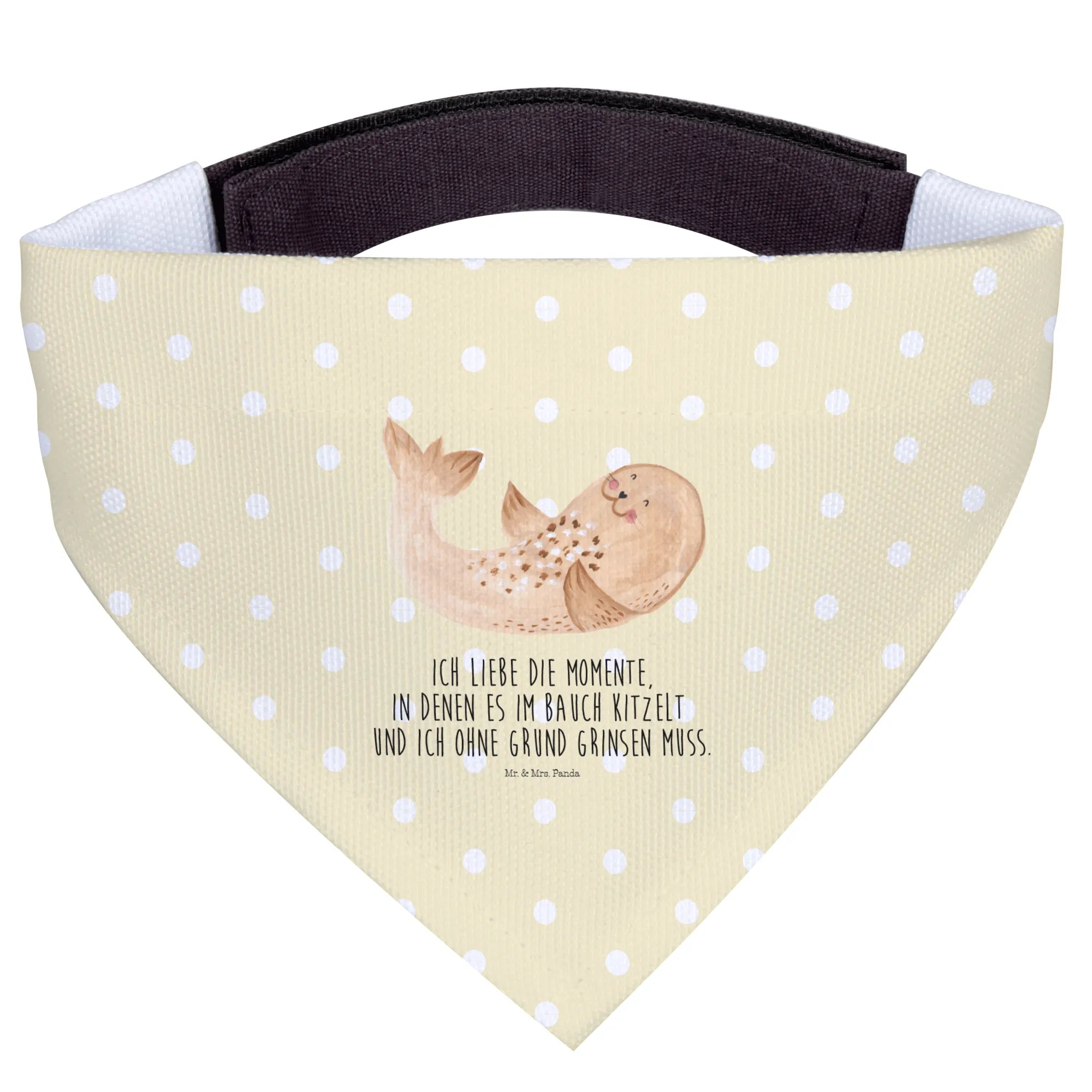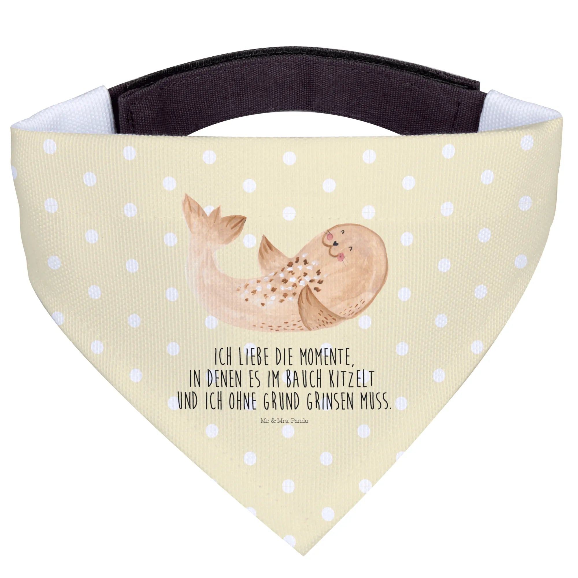 Das Hundehalstuch L mit dem süßen Motiv einer liegenden Robbe aus der einzigartigen Small World Kollektion von Mr. & Mrs. Panda ist das perfekte Geschenk für Hundebesitzer und ihre geliebten Vierbeiner. Mit diesem Halstuch bringst Du Farbe und gute Laune in den Alltag Deines großen Hundes. Das hochwertige Tuch aus einem feinen Polyester-Fasermaterial schmiegt sich sanft um den Hals Deines Hundes und sorgt für einen lässigen, modischen Look.