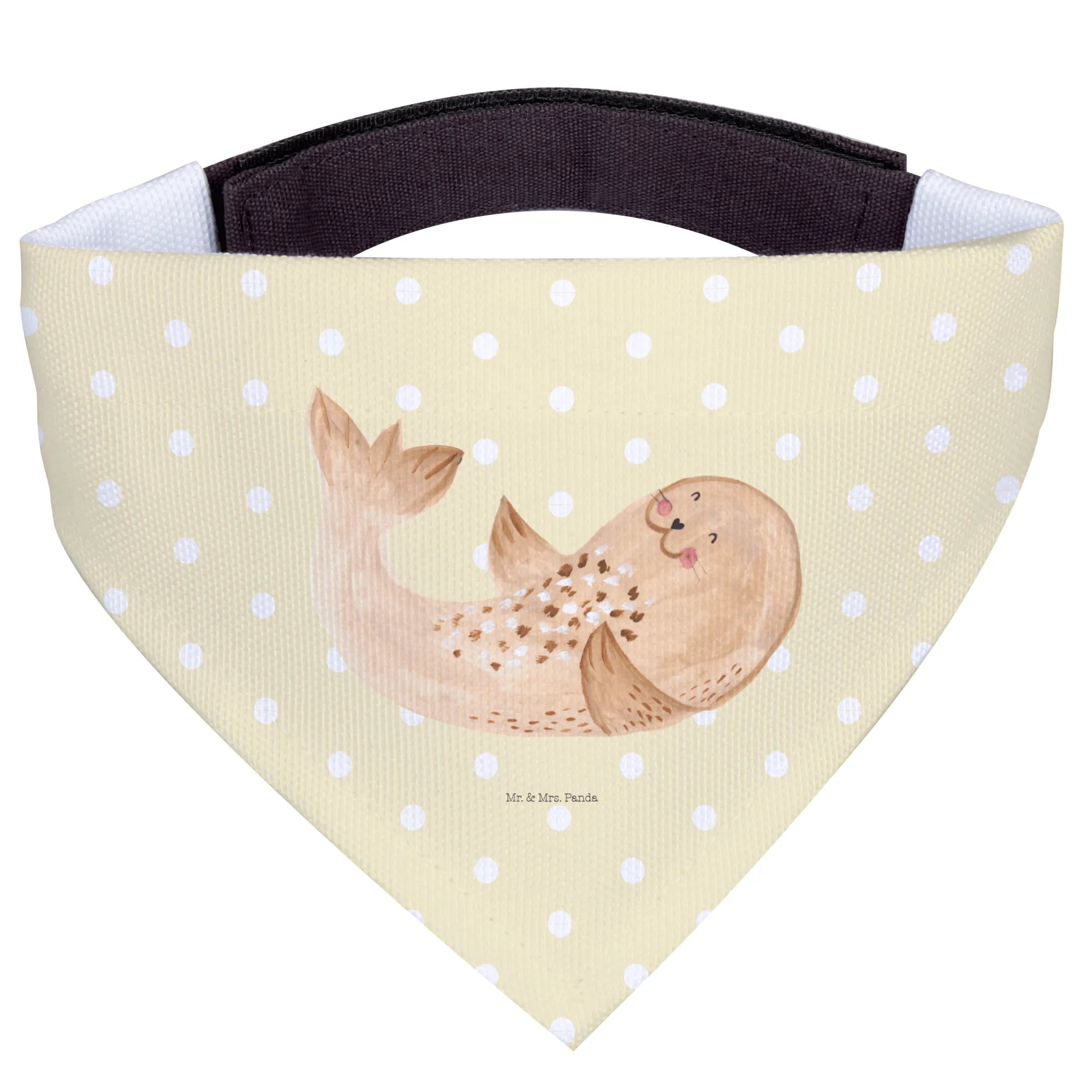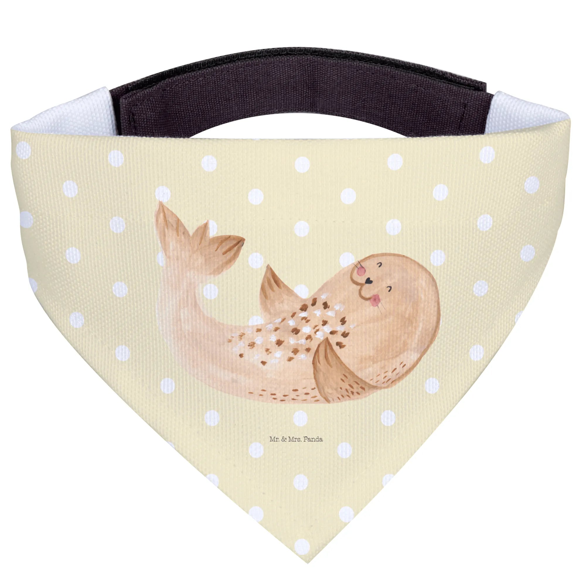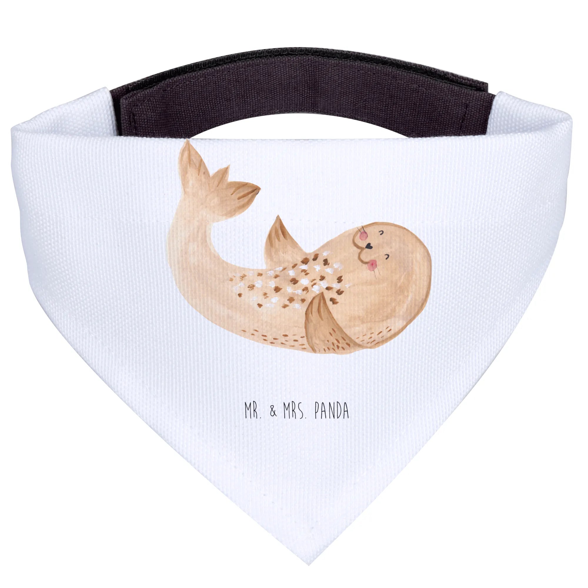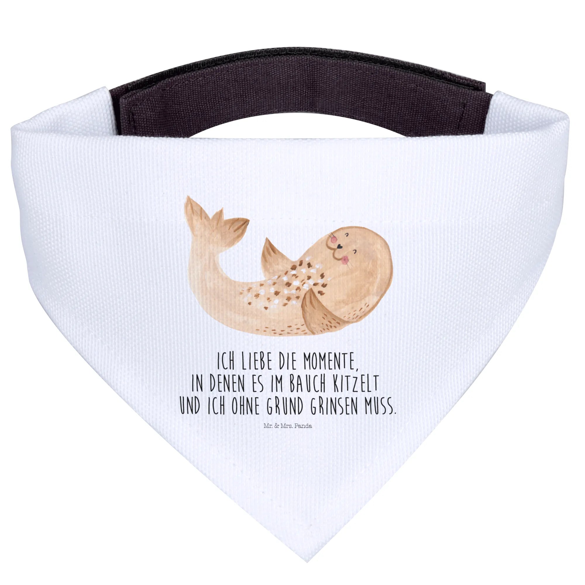 Das Hundehalstuch L mit dem süßen Motiv einer liegenden Robbe aus der einzigartigen Small World Kollektion von Mr. & Mrs. Panda ist das perfekte Geschenk für Hundebesitzer und ihre geliebten Vierbeiner. Mit diesem Halstuch bringst Du Farbe und gute Laune in den Alltag Deines großen Hundes. Das hochwertige Tuch aus einem feinen Polyester-Fasermaterial schmiegt sich sanft um den Hals Deines Hundes und sorgt für einen lässigen, modischen Look.