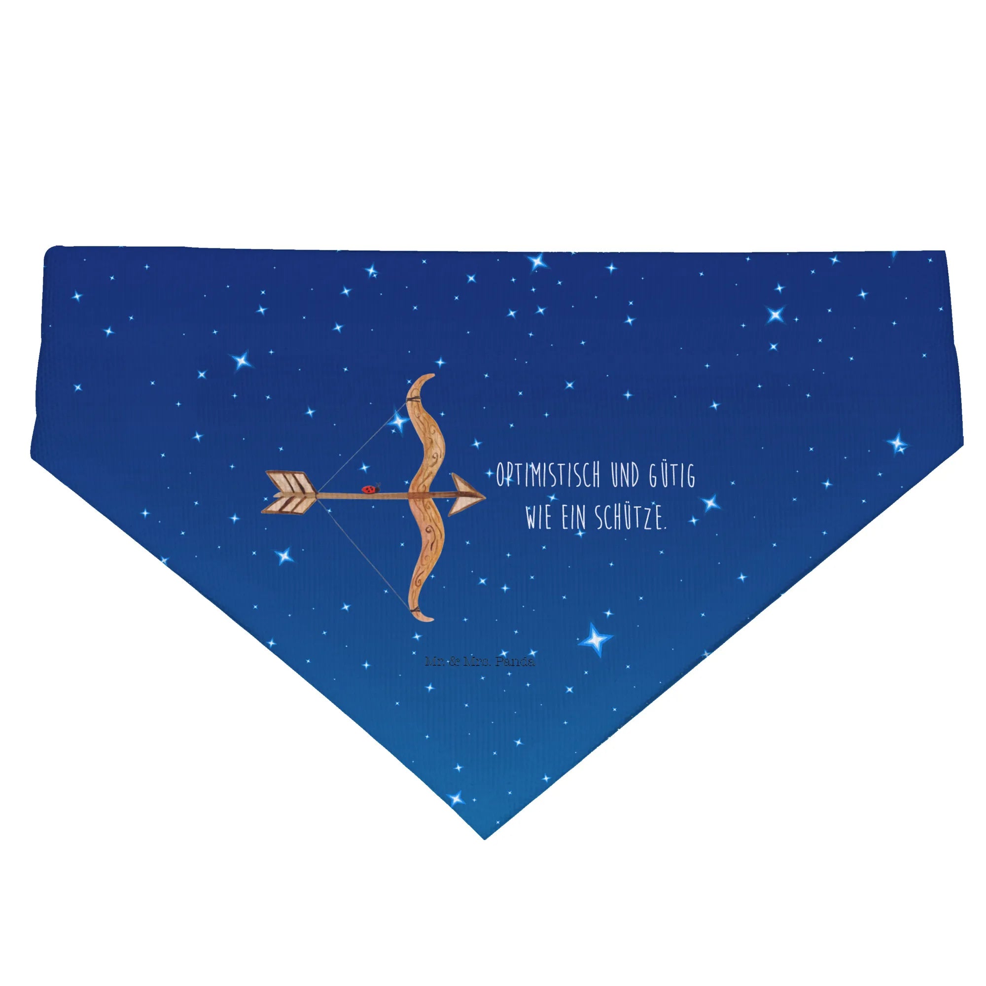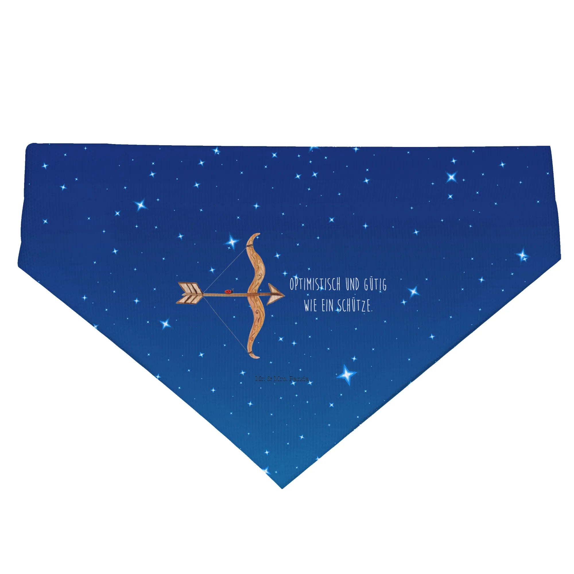 Das Hundehalstuch L Sternzeichen Schütze von Mr. & Mrs. Panda ist das perfekte Accessoire für deinen großen Hund und macht ihn zum Star unter den Hunden! Mit einem entzückenden Motiv, das den Schützen mit seinem charakteristischen Pfeil und Bogen darstellt, ist dieses Halstuch nicht nur ein Blickfang, sondern drückt auch die positiven Eigenschaften des Sternzeichens aus. Optimistisch und gütig – genau wie du und dein vierbeiniger Freund! Es eignet sich hervorragend als Geschenk zum Geburtstag für Menschen, die im November oder Dezember feiern, oder als besondere Überraschung für jeden Schütze-Liebhaber.