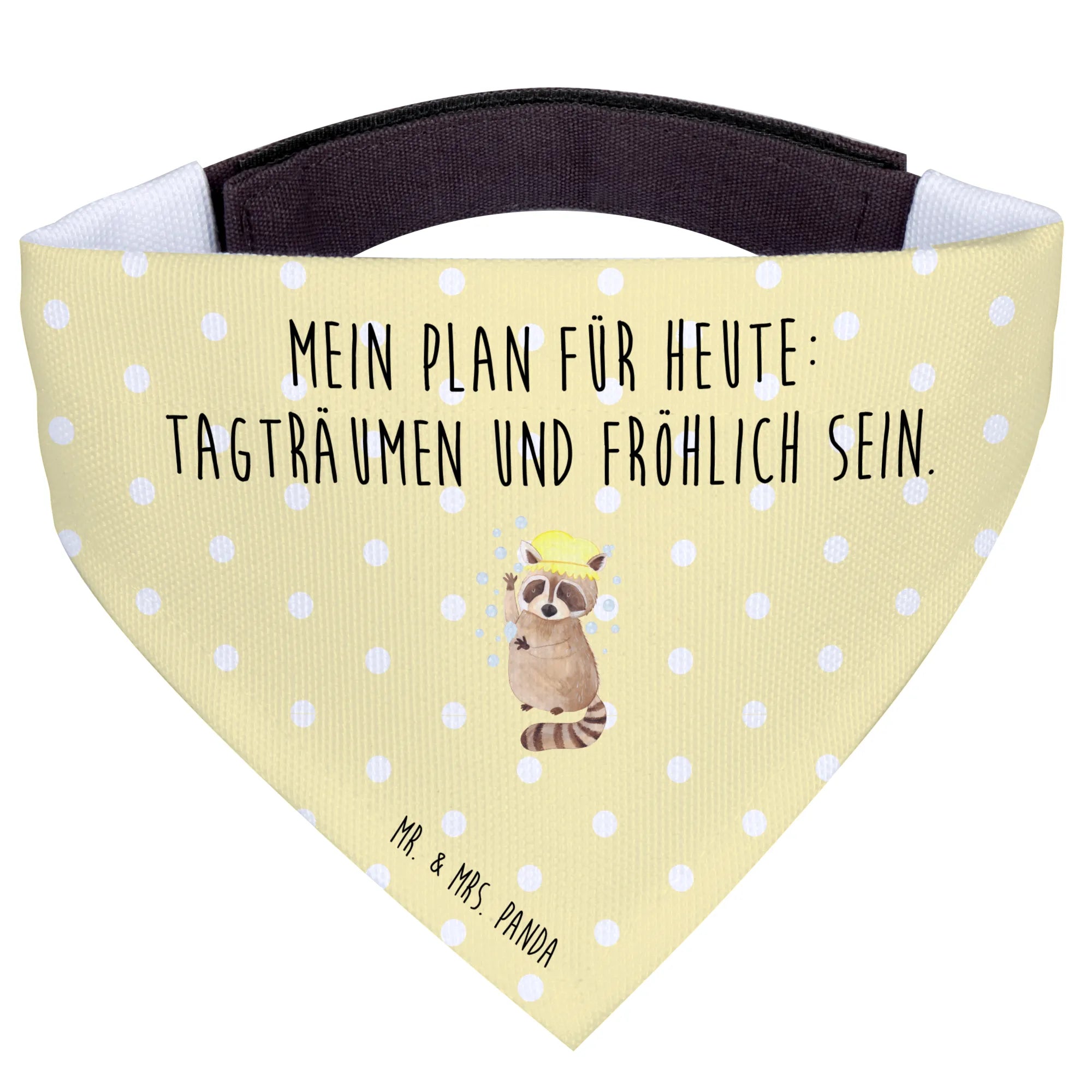 Das Hundehalstuch S mit dem süßen Waschbär-Motiv ist das ideale Accessoire für deinen kleinen Vierbeiner. Es trägt nicht nur einen lustigen Spruch "Mein Plan für heute: Tagträumen und fröhlich sein", sondern zaubert auch jedem, der es sieht, ein Lächeln ins Gesicht.