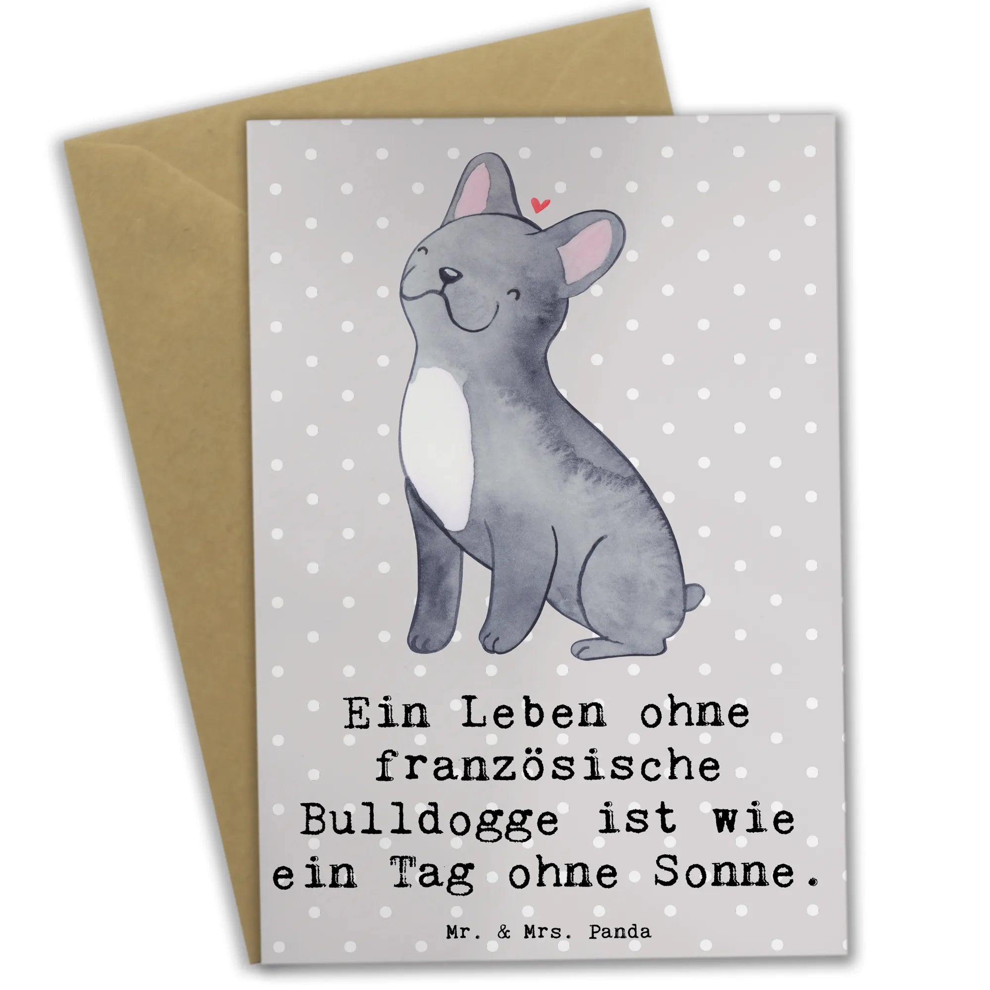 Die wunderschöne Grußkarte von Mr. & Mrs. Panda ist das perfekte Geschenk für jeden Hundefan, insbesondere für all jene, die die charmante Französische Bulldogge lieben. Mit ihrem niedlichen Design und dem liebevollen Spruch "Ein Leben ohne französische Bulldogge ist wie ein Tag ohne Sonne." bringt diese Karte ein Lächeln ins Gesicht und zaubert Freude in jedes Herz.