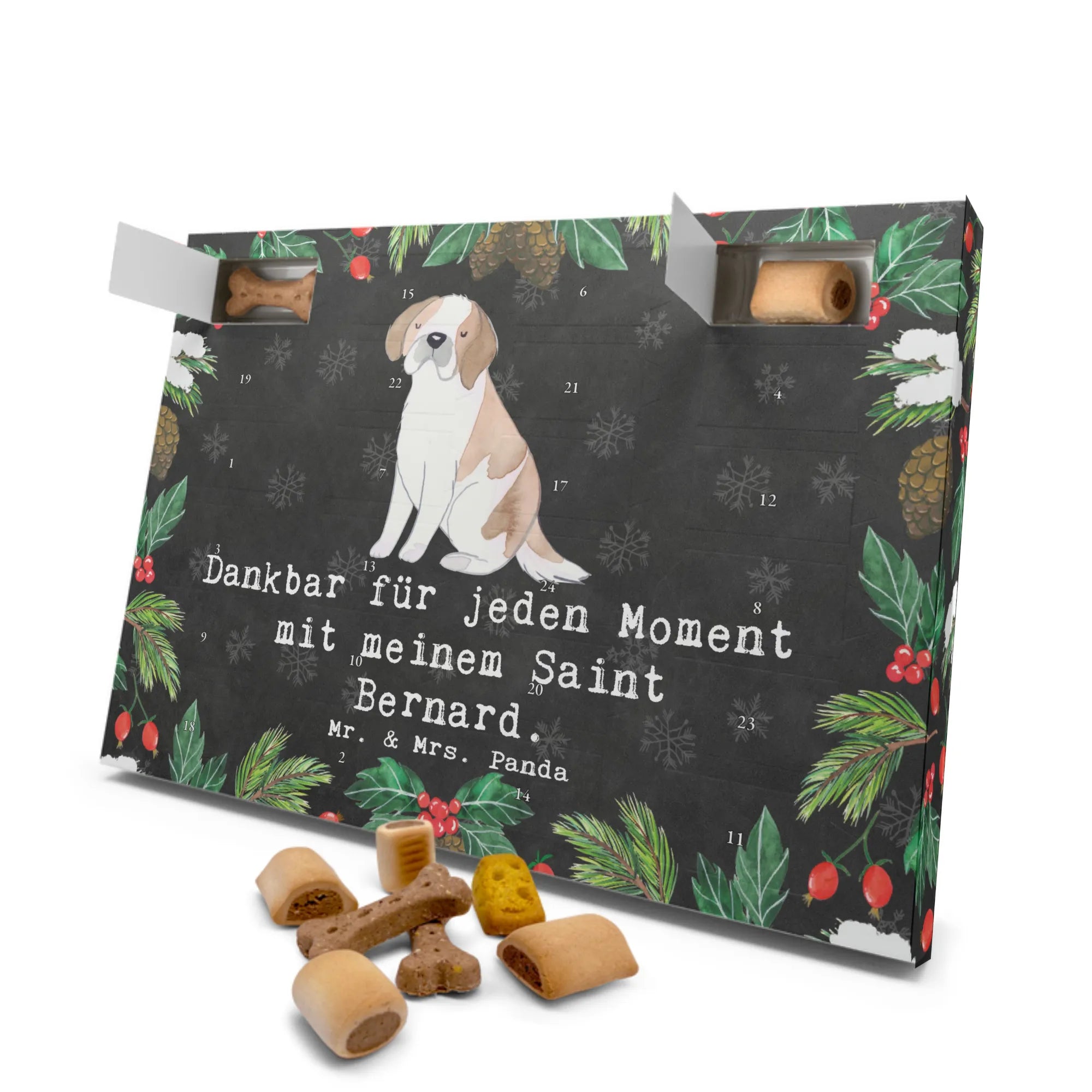 Der Hunde Adventskalender "Saint Bernard Moment" von Mr. & Mrs. Panda ist das perfekte Geschenk für jeden Hundeliebhaber, vor allem für die stolzen Besitzer eines bezaubernden Saint Bernhardshundes! Mit diesem besonders liebevoll gestalteten Adventskalender beginnt die Weihnachtszeit für dich und deinen vierbeinigen Freund auf die schönste Art und Weise.
