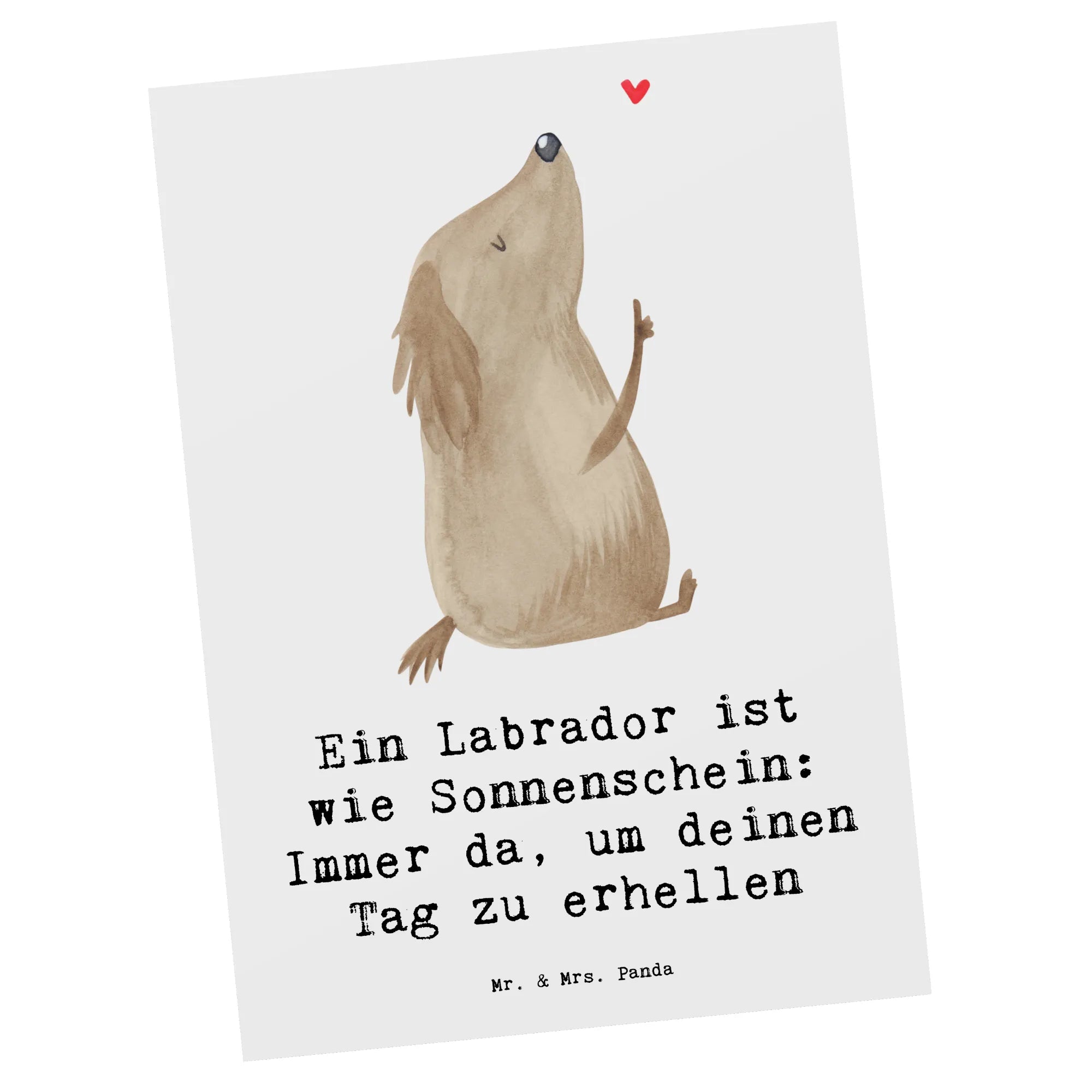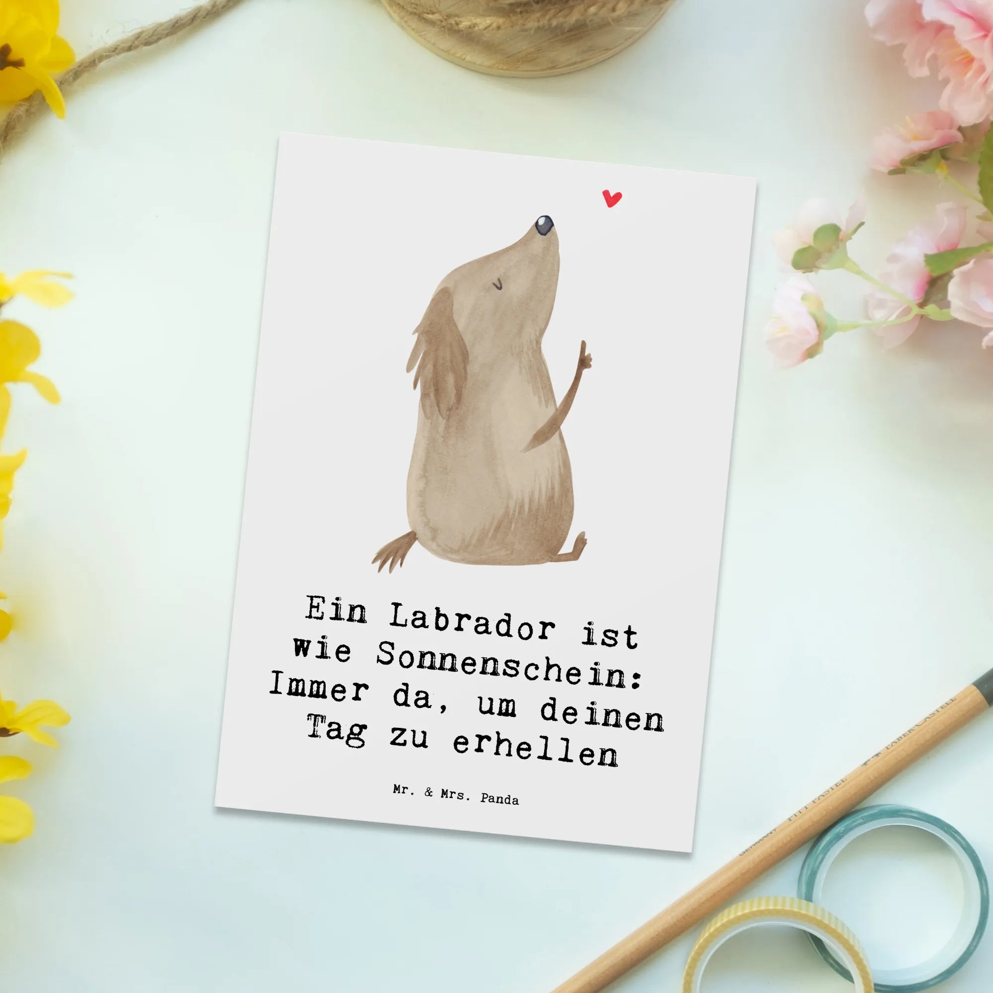 Diese zauberhafte Postkarte mit Labrador aus der Hunderassen-Kollektion von Mr. & Mrs. Panda bringt Herzlichkeit in jeden Briefkasten. Das liebevoll von Mrs. Panda gezeichnete Aquarell zeigt einen freundlichen Labrador, begleitet vom Spruch: „Ein Labrador ist wie Sonnenschein: Immer da, um deinen Tag zu erhellen“. Ein Motiv, das Hundeliebhaber sofort ins Herz schließen.