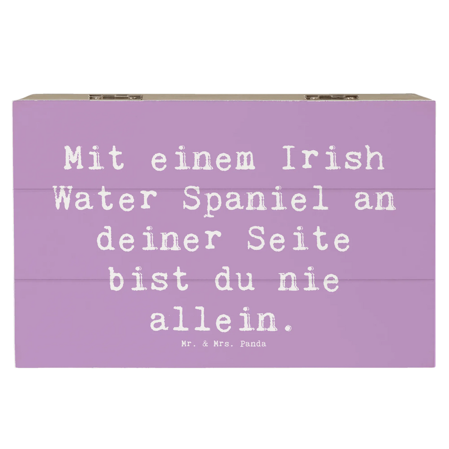 Entdecke die wundervoll gestaltete Holzkiste mit dem Motiv des Irish Water Spaniels! Diese bezaubernde Kiste von Mr. & Mrs. Panda ist nicht nur praktisch, sondern auch ein echter Hingucker. Mit einem Spruch, der Herzen berührt: 'Mit einem Irish Water Spaniel an deiner Seite bist du nie allein.' Perfekt für alle Hundefans, die ihren geliebten Vierbeiner immer um sich haben möchten.