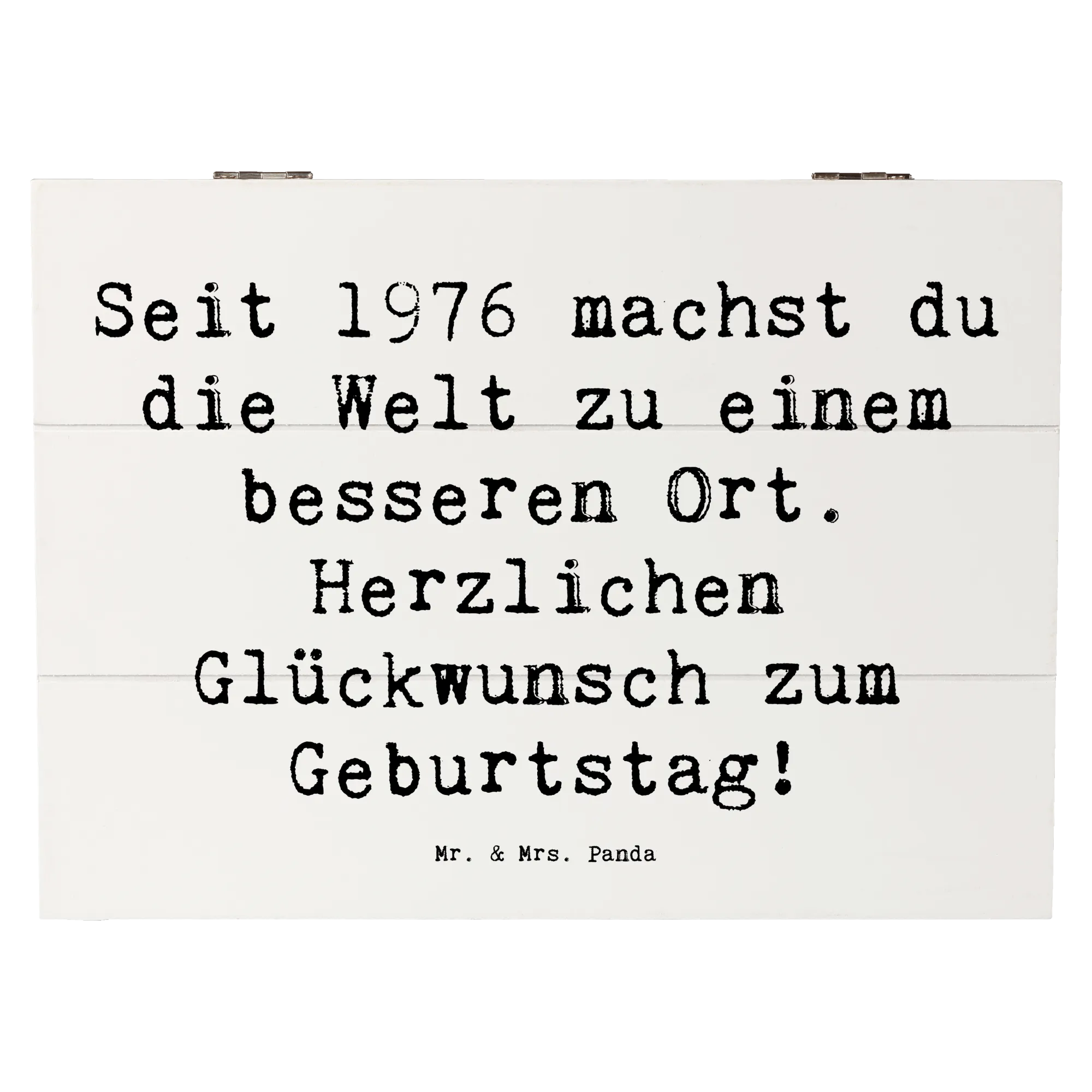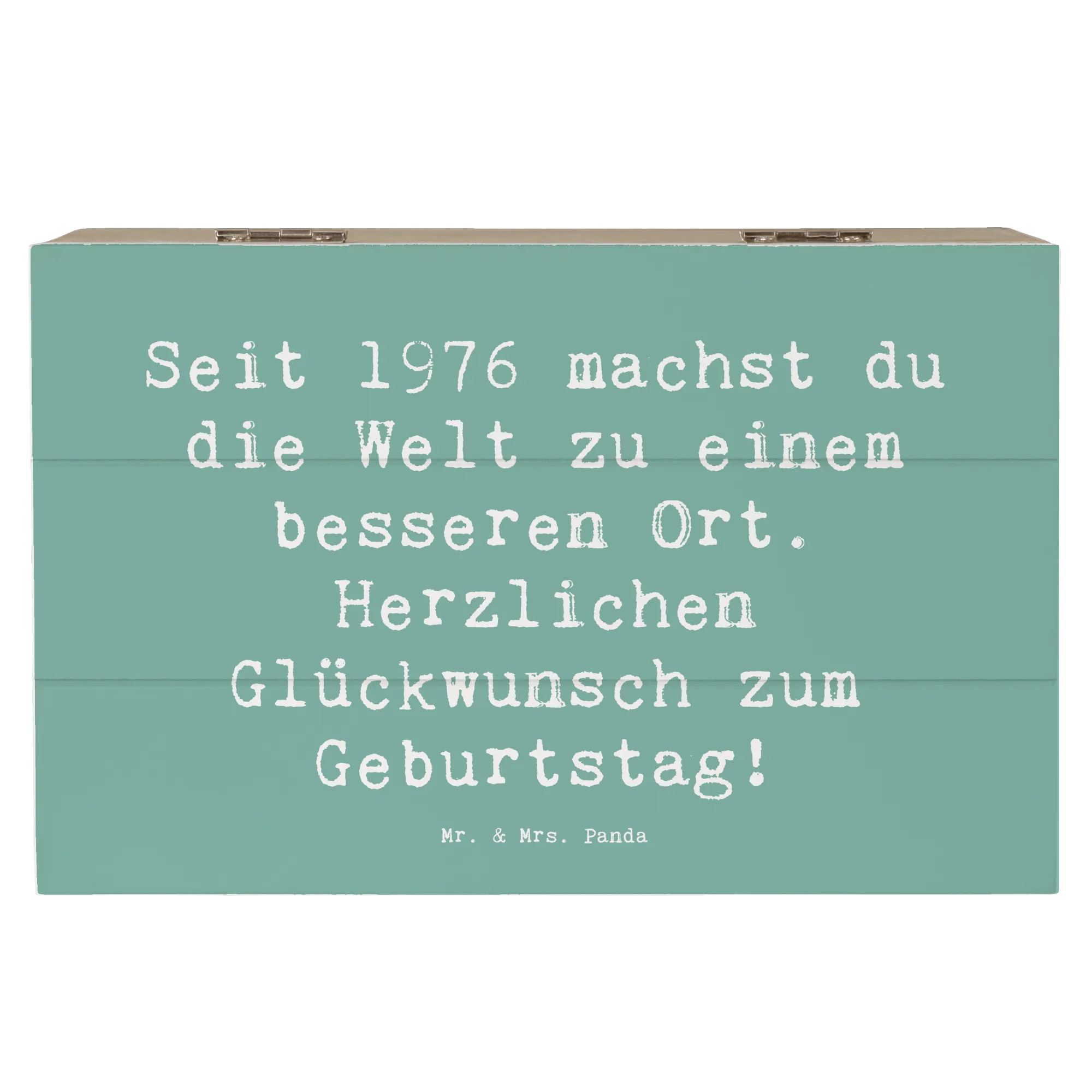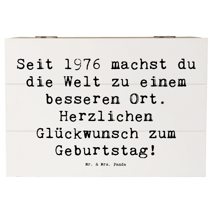 Die wunderschöne Holzkiste von Mr. & Mrs. Panda ist das perfekte Geschenk für alle, die 1976 Geburtstag feiern! Diese besondere Erinnerungskiste ist mehr als nur ein Aufbewahrungsort; sie ist ein Schatz, der Erinnerungen bewahrt. Mit einem liebevollen Slogan – 'Seit 1976 machst du die Welt zu einem besseren Ort. Herzlichen Glückwunsch zum Geburtstag!' – ist sie ideal, um besonderen Anlässe wie Geburtstage, Kommunion oder Konfirmation zu zelebrieren.