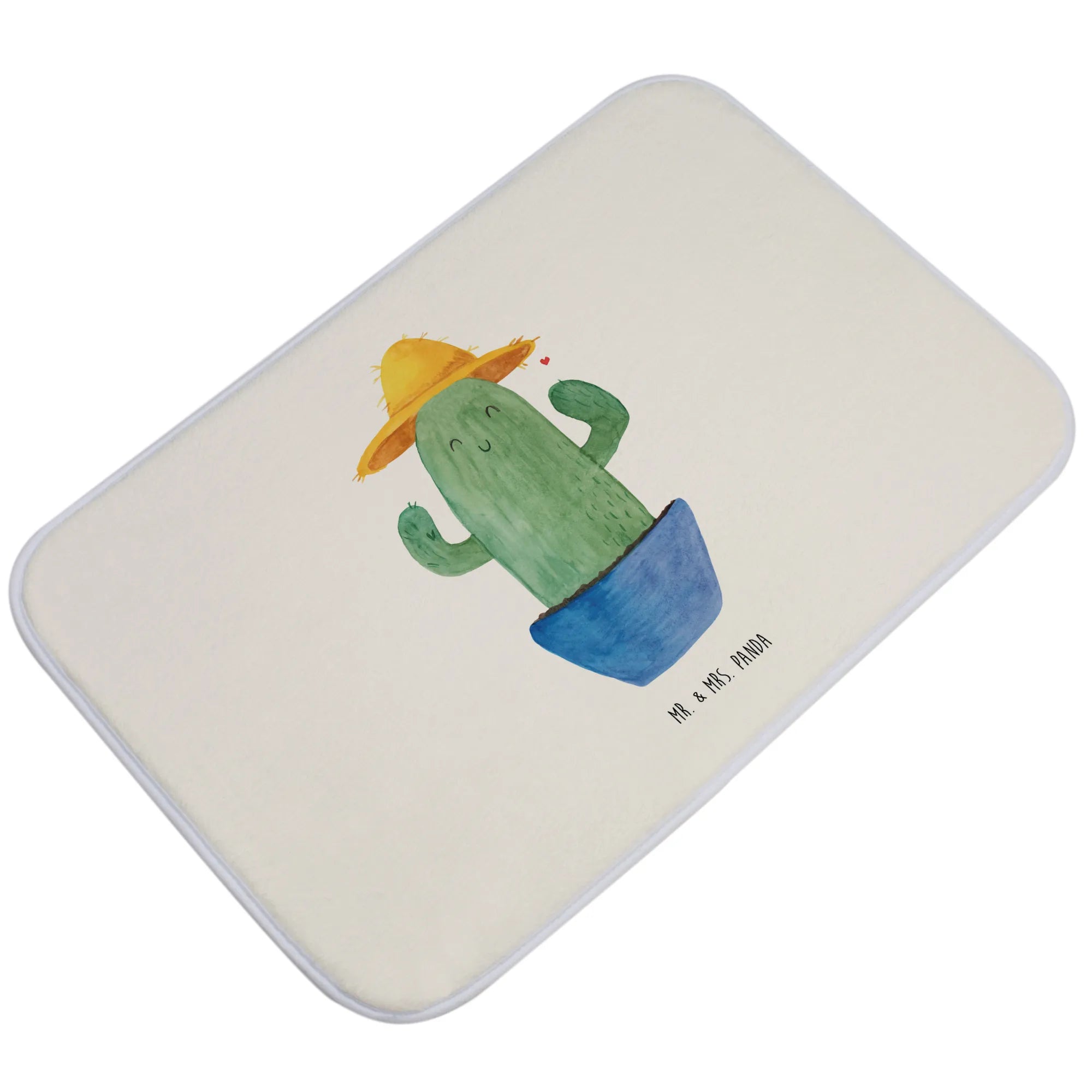 Der Badvorleger Kaktus Sonnenhut aus der Kaktus-Kollektion von Mr. & Mrs. Panda ist nicht nur ein Blickfang in deinem Badezimmer, sondern auch das perfekte Geschenk für alle, die das Leben in vollen Zügen genießen. Diese wunderschöne Badematte in strahlendem Weiß ist mit einem fröhlichen Kaktusmotiv versehen, das mit einem süßen Sonnenhut geschmückt ist. Die liebevoll handgezeichnete Aquarellgrafik bringt ein Stück Urlaubsfeeling in dein Zuhause und sorgt für gute Laune nach einem entspannten Bad.