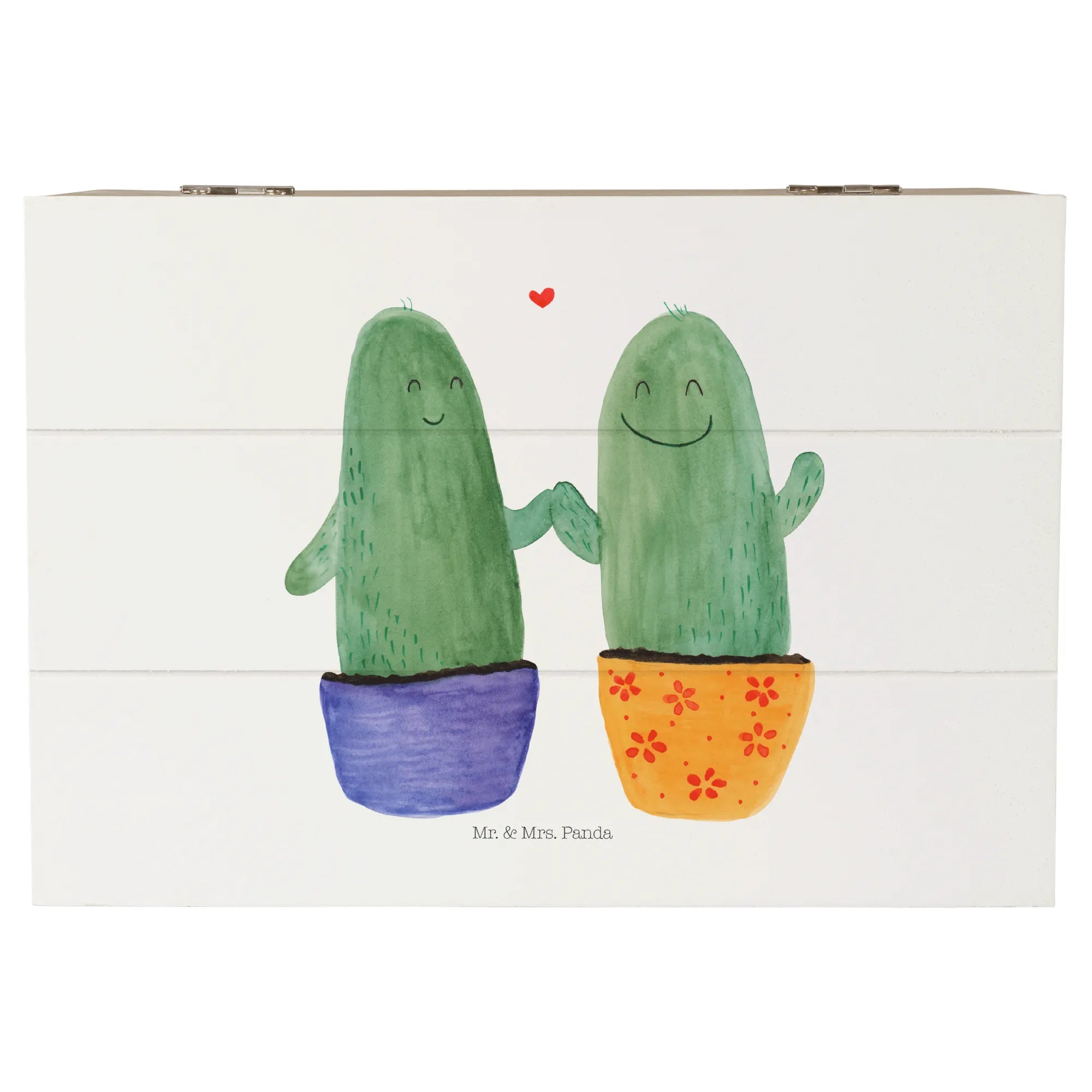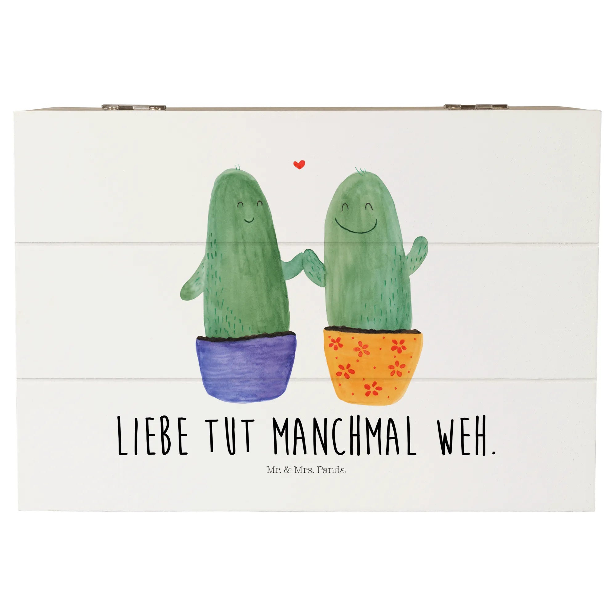 Die wunderschöne Holzkiste »Kaktus Liebe« von Mr. & Mrs. Panda ist das ideale Geschenk für alle, die die kleinen Freuden des Lebens lieben. Diese bezaubernde Kiste, die in zarten Aquarellfarben gestaltet ist, zeigt zwei fröhliche Kakteen, die einander glücklich anlächeln. Perfekt für Paare, Freunde oder zur Versöhnung nach einem Streit!