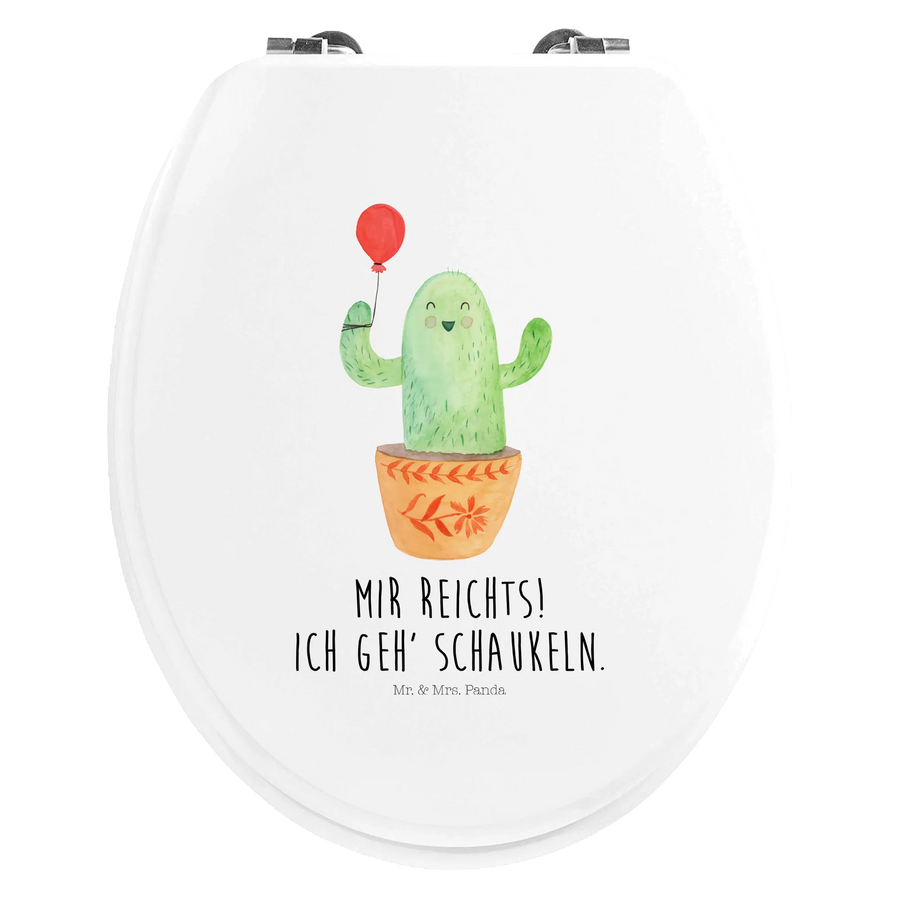 Motiv WC Sitz Kaktus Luftballon - mit Spruch - Hartfaser Holzkern Weiß - Weiß