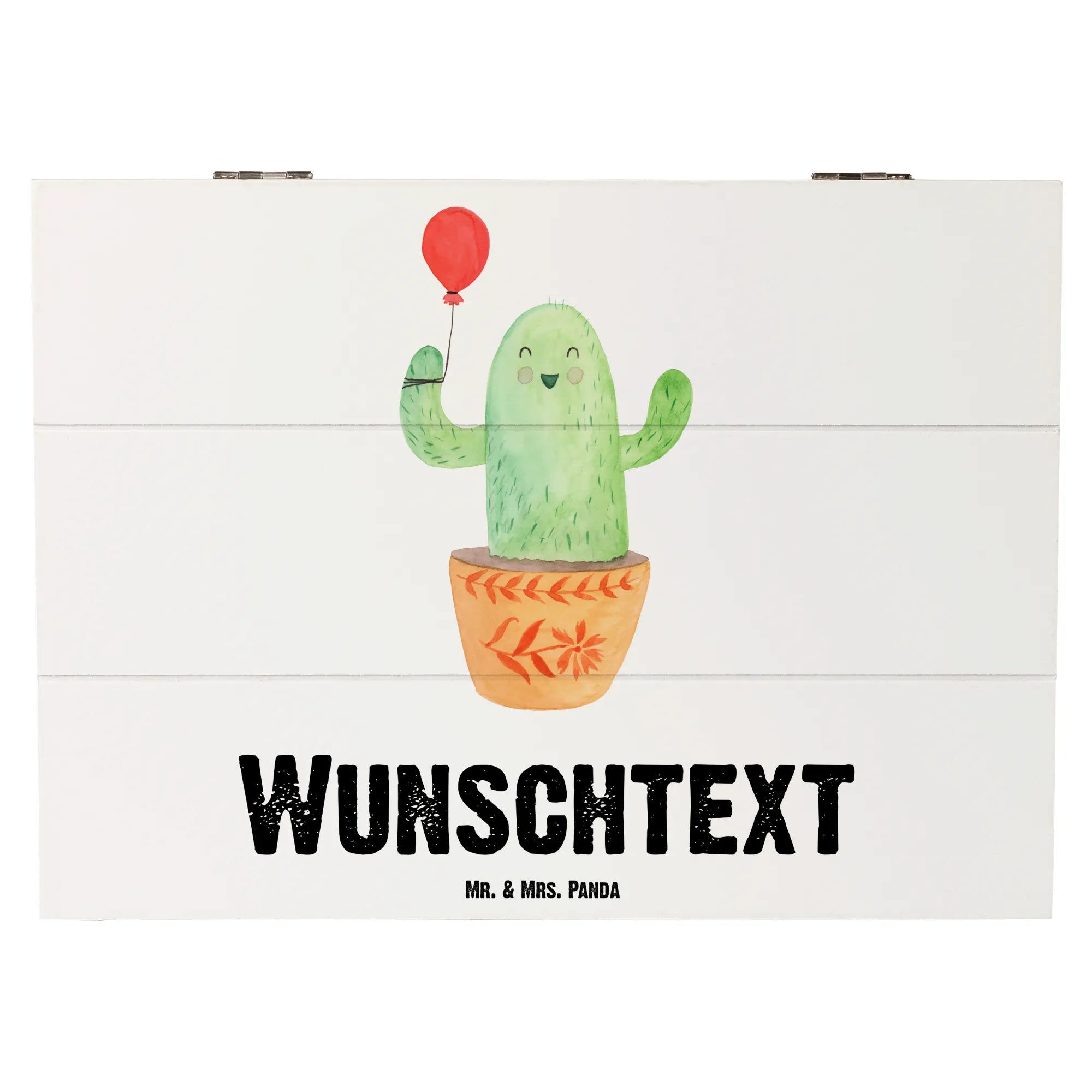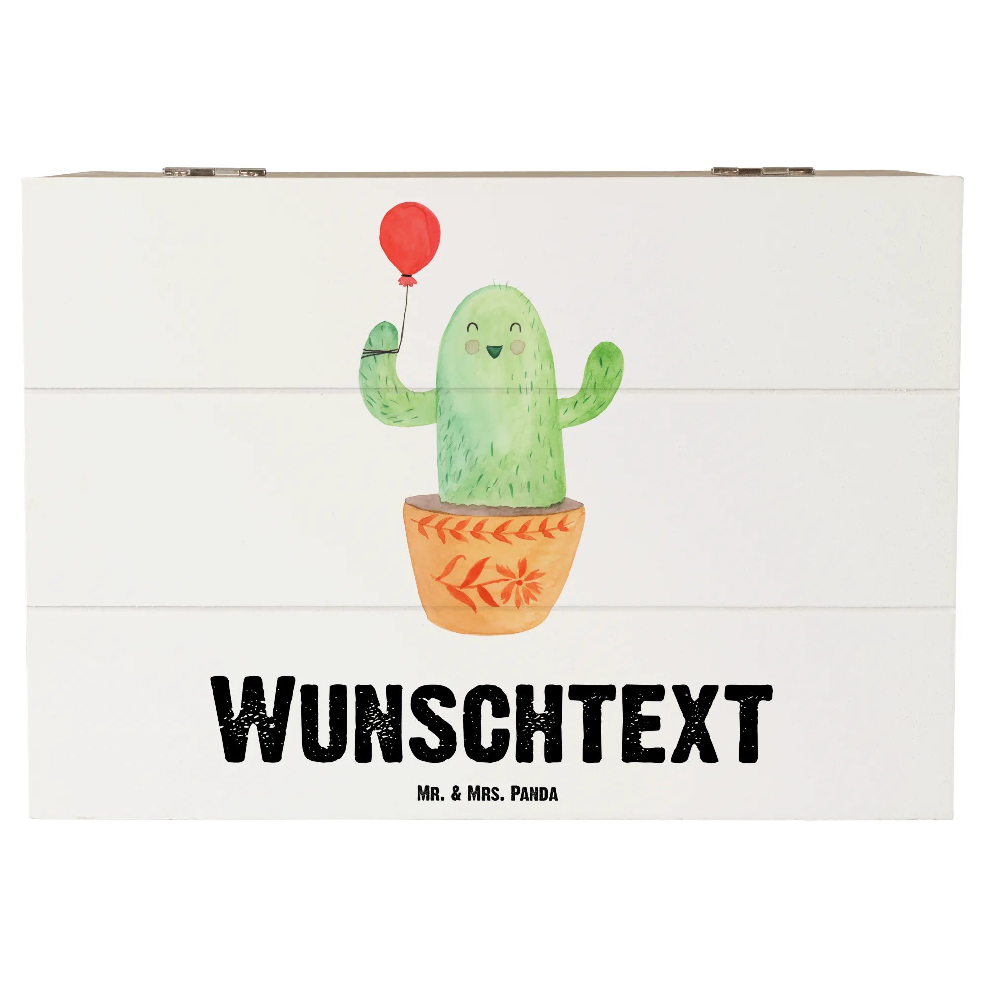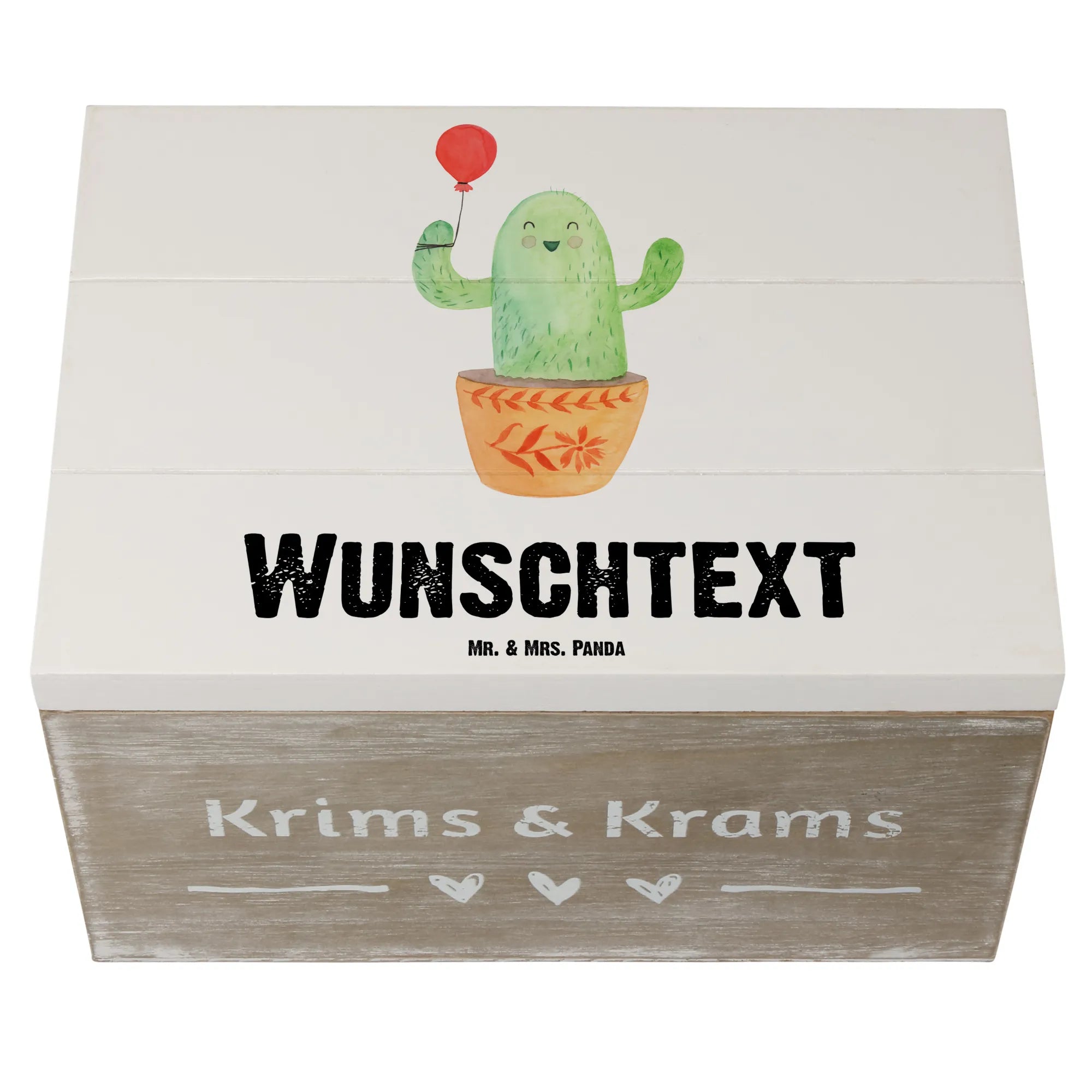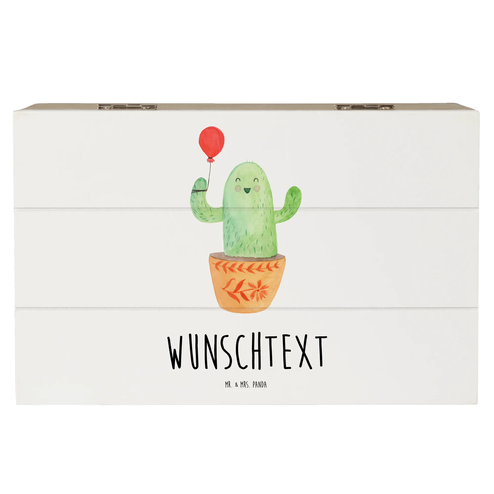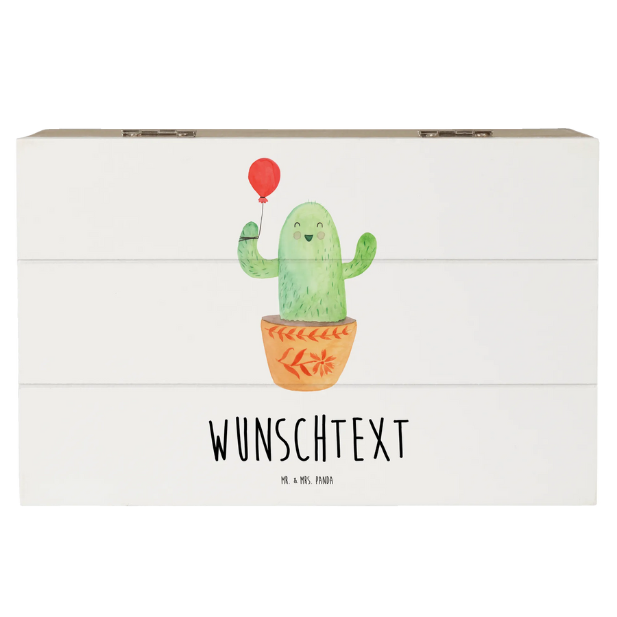 Entdecke die wunderschöne personalisierte Holzkiste mit dem fröhlichen Kaktus Luftballon aus der Kaktus Kollektion von Mr. & Mrs. Panda!