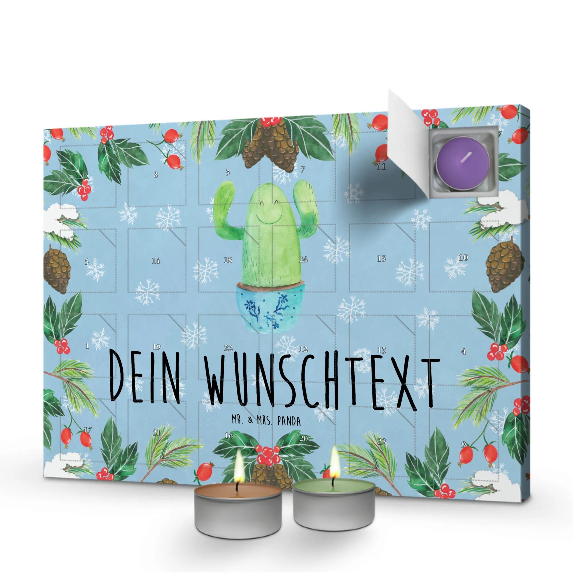 Der personalisierte Duftkerzen Adventskalender "Kaktus Happy" von Mr. & Mrs. Panda ist das perfekte Geschenk für all die lieben Menschen in deinem Leben.