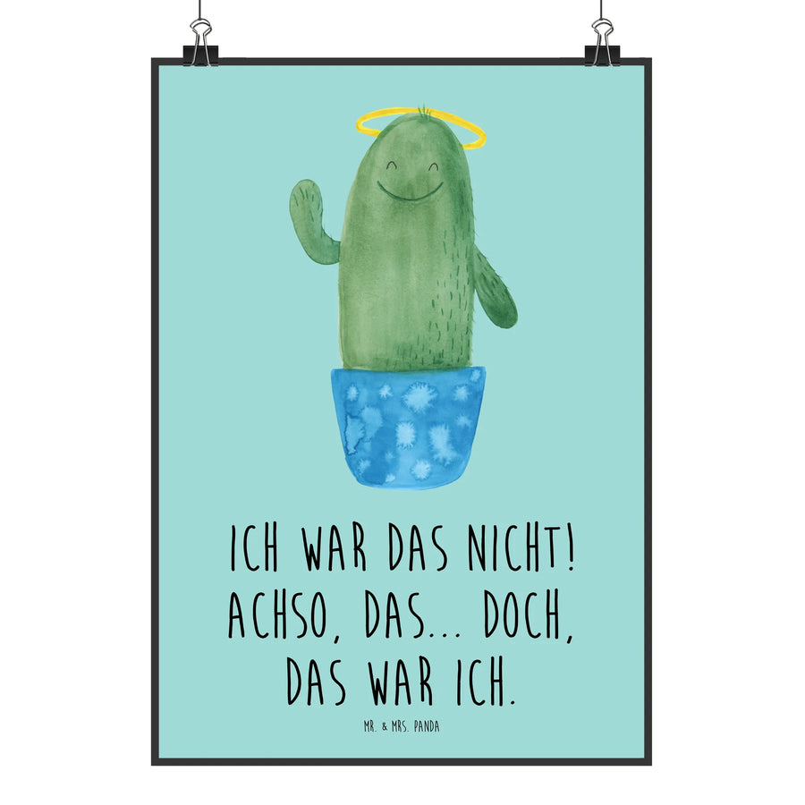 Es ist nicht nur ein einfaches Bild, sondern ein Teil der zauberhaften Kaktus-Kollektion von Mr. & Mrs. Panda, die ein ganzes Team von fröhlichen Kaktussen beinhaltet, die zusammen gegen die trüben Tage kämpfen! Jeder Kaktus trägt seinen eigenen, lustigen Spruch mit sich, und dieses besondere Poster kommt mit dem witzigen Slogan: "Ich war das nicht! Achso, das... Doch, das war ich."