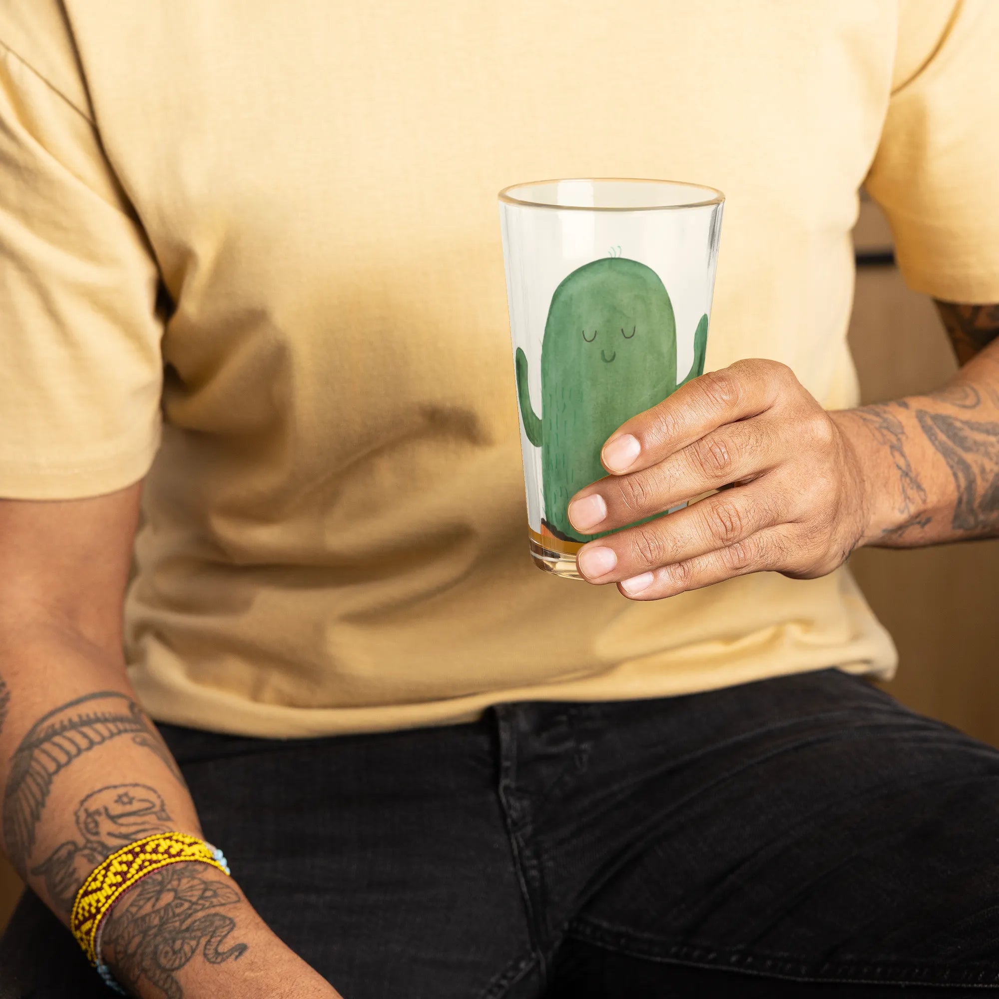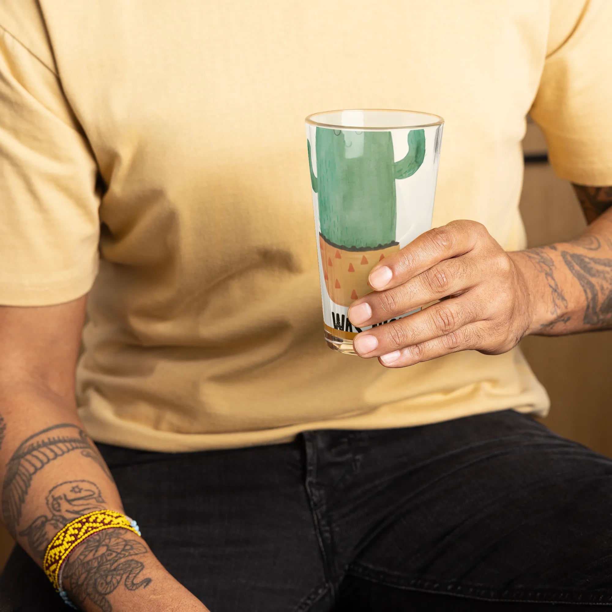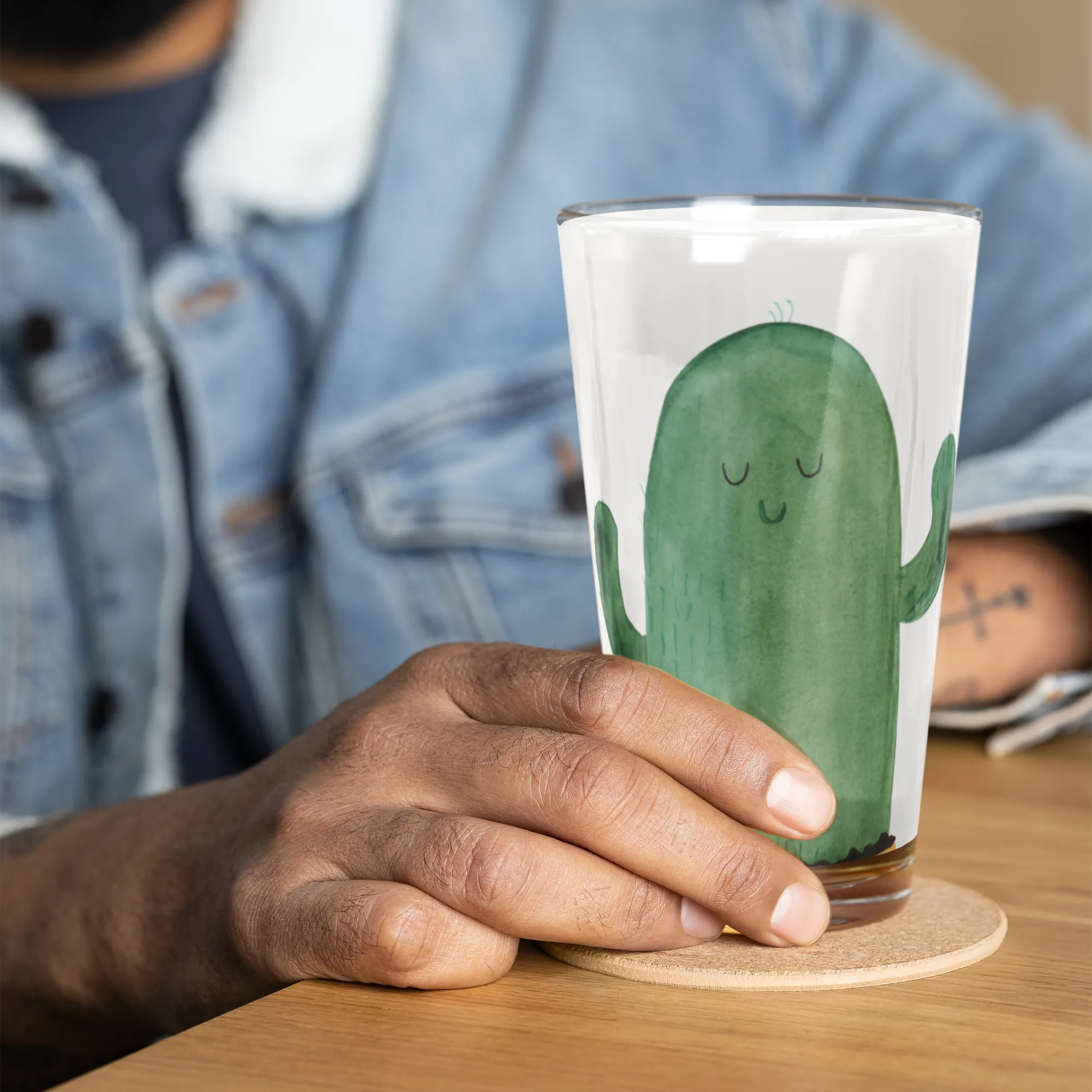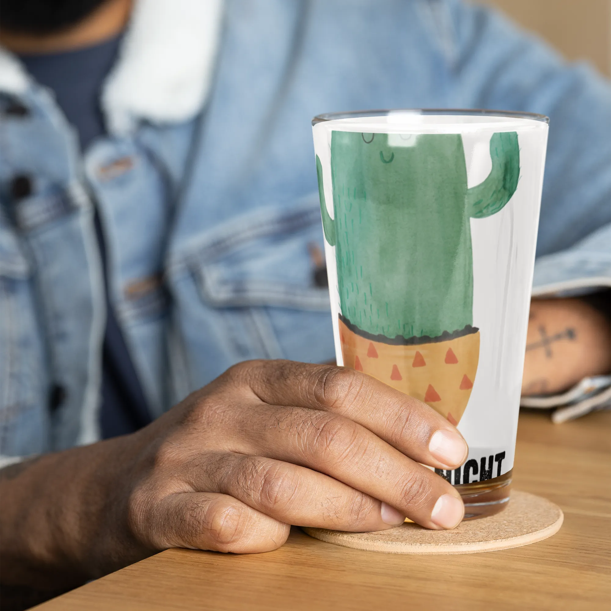 Premium Trinkglas Kaktus Sonnenanbeter - mit Spruch