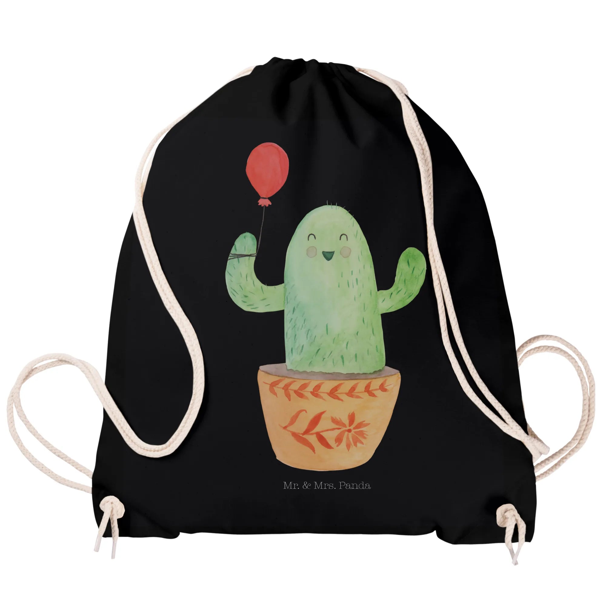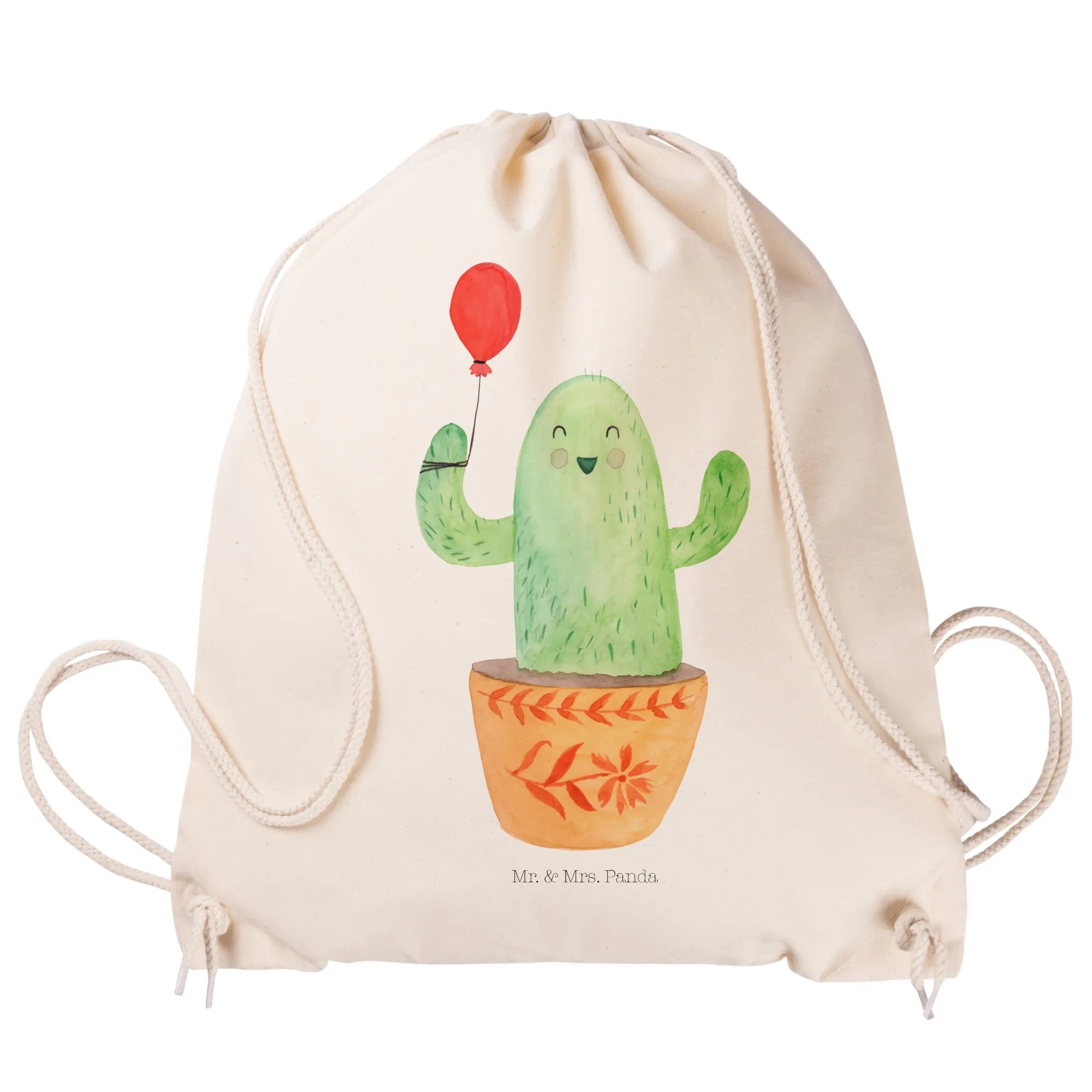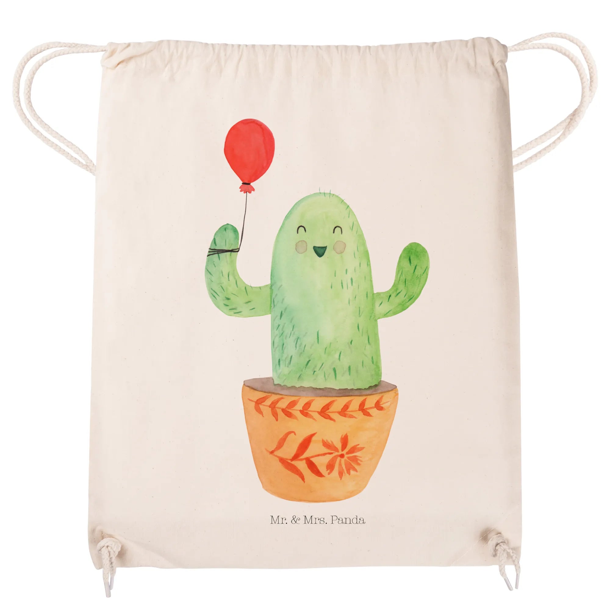 Die Kaktus Kollektion von Mr. & Mrs. Panda ist die ideale Wahl für alle lebenslustigen Menschen, die ein Lächeln in ihr Leben bringen möchten. Das Material besteht aus 100% weicher Baumwolle, was ihn leicht und angenehm macht, sowie umweltfreundlich bedruckt mit zertifizierten Farben. Zudem lässt sich der Sportbeutel Kaktus Luftballon bei 30°C in der Waschmaschine waschen, für eine einfache Pflege.