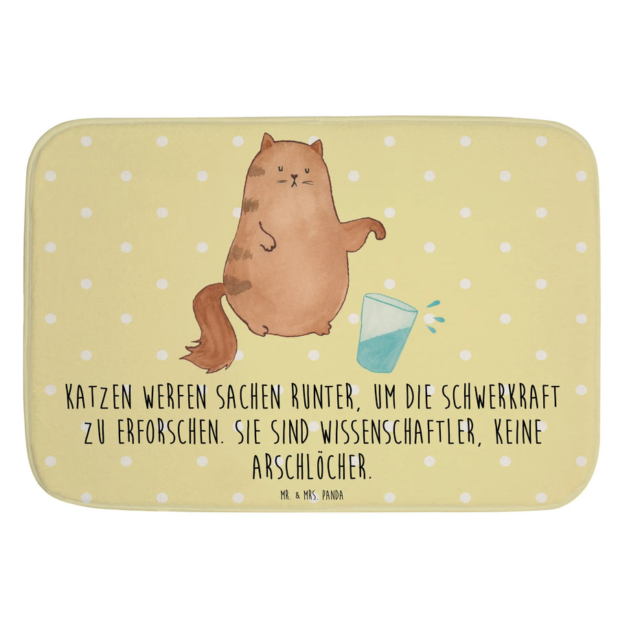 Badvorleger Katze Wasserglas - mit Spruch - Gelb Pastell