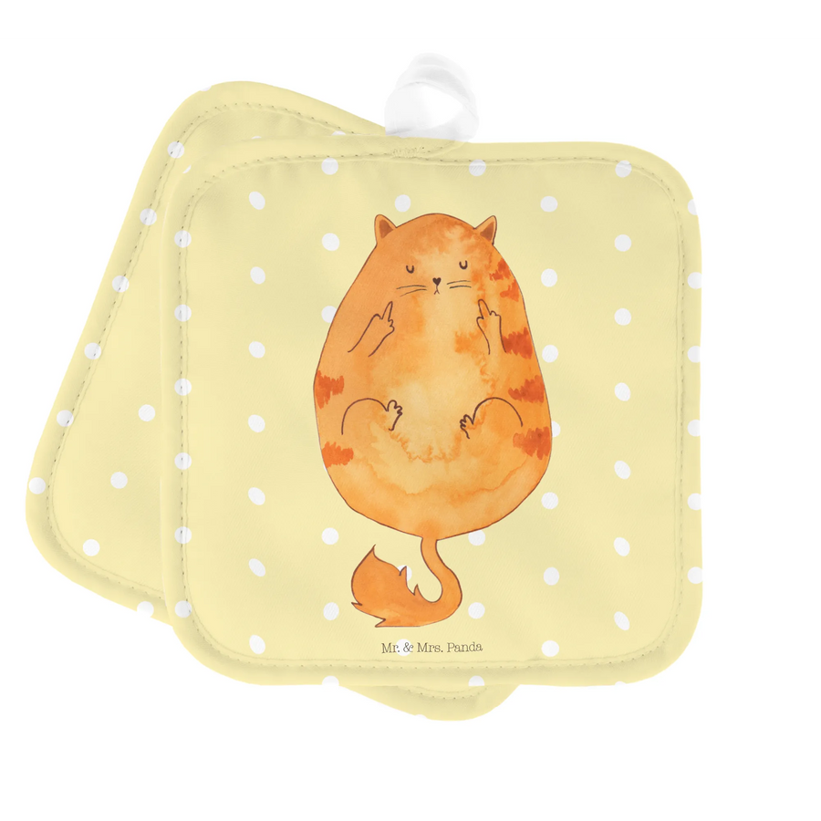 2er Set Topflappen Katze Mittelfinger - ohne Spruch - Gelb Pastell