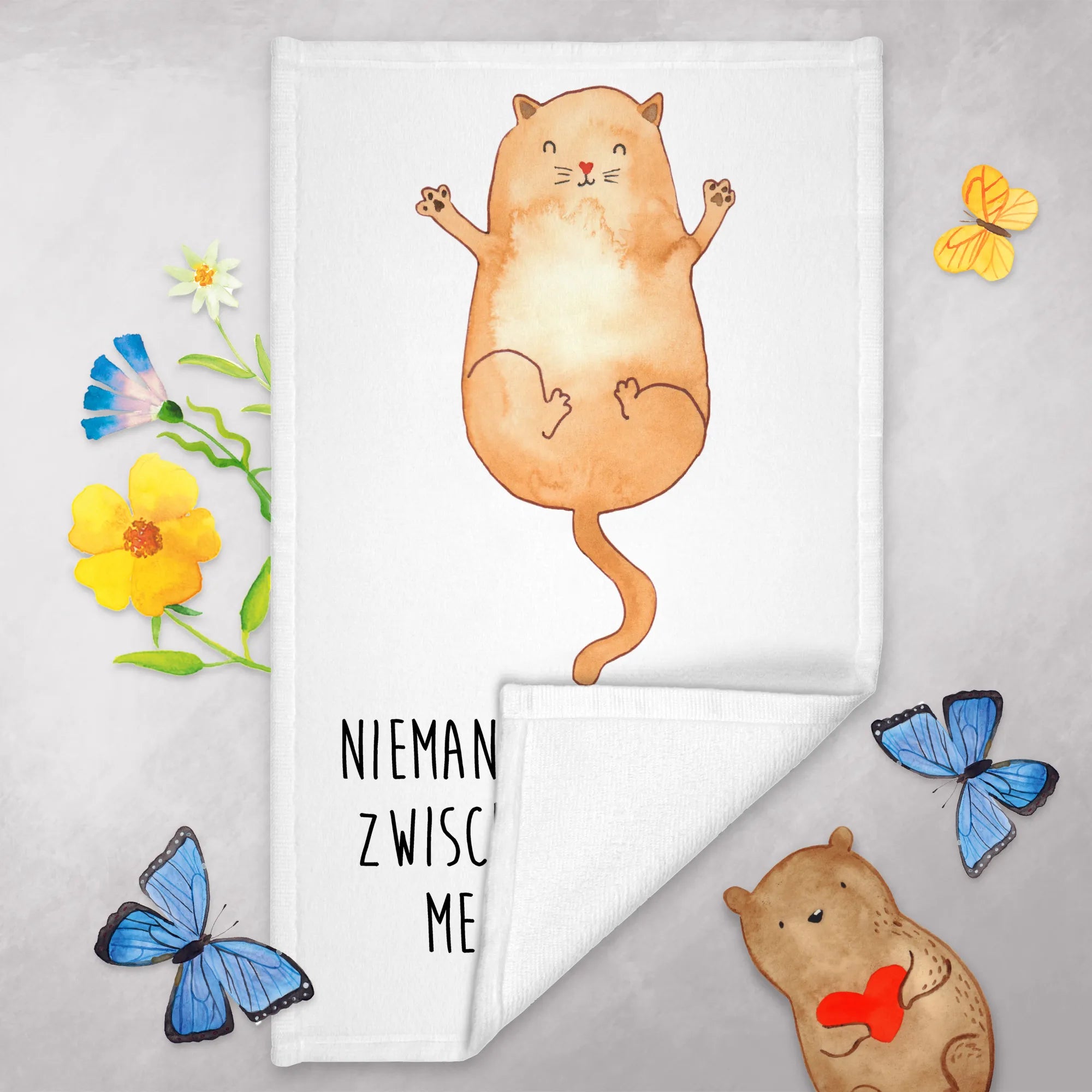 Das Gästehandtuch "Katzen Umarmen" aus der bezaubernden Katzen-Kollektion von Mr. & Mrs. Panda ist das perfekte Geschenk für alle Katzenliebhaber und Katzenfans. Mit seinem süßen Motiv einer verspielten Katze, die ihre Arme ausbreitet, und dem liebevollen Slogan "Niemand stellt sich zwischen mich und meine Katze." wird dieses Handtuch sicher jedem ein Lächeln ins Gesicht zaubern!