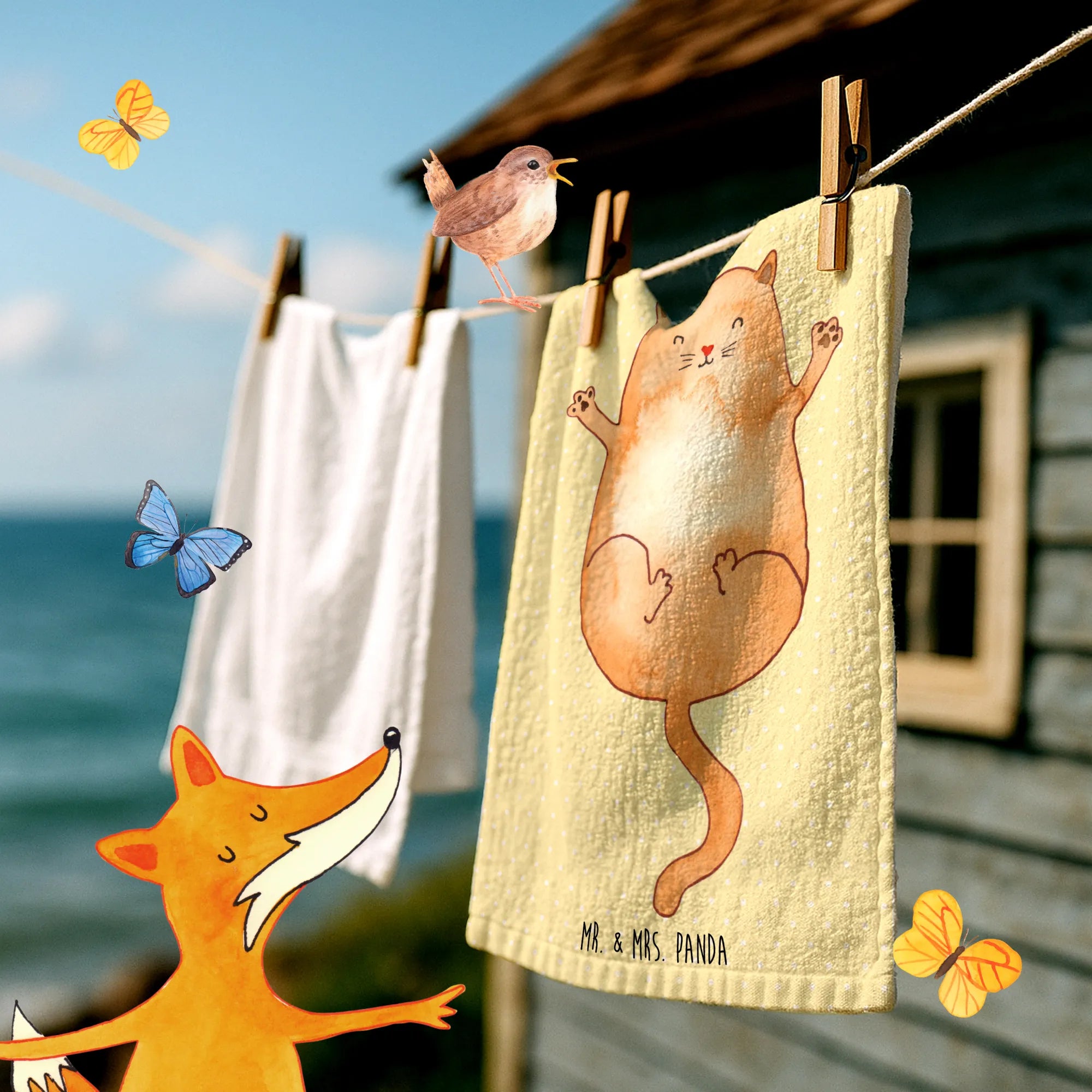 Das Gästetuch "Katzen Umarmen" aus der Katzen-Kollektion von Mr. & Mrs. Panda ist das perfekte Geschenk für alle Katzenliebhaber! Mit seinem liebevoll gestalteten Motiv bringt es die Herzen aller Katzenfreunde zum Schmelzen. Die Szene zeigt eine süße Katze, die auf dem Rücken liegt und ihre Arme ausbreitet – so charmant und einladend, genau wie die kleinen Fellnasen selbst!