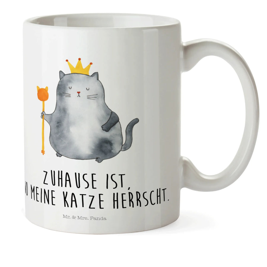 Die Tasse ist mit einem süßen Motiv einer stolzen Katze mit Krone und dem liebevollen Spruch "Zuhause ist, wo meine Katze herrscht" bedruckt. Dieses einzigartige Design macht sie zu einem perfekten Geschenk für viele Anlässe: Sei es als praktische Kindergarten-Tasse für den ersten Schultag, als Mitbringsel zum Einzug in die erste eigene Wohnung oder als liebevolles Geschenk für einen Katzenfan. Die Tasse aus weißem Kunststoff hat einen brillant glänzenden Aufdruck und ist sogar mikrowellenbeständig, was die Nutzung noch einfacher macht.