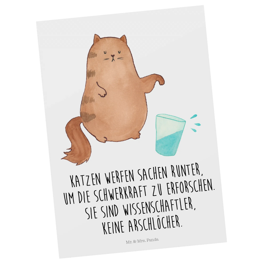 Entdecke die süße Welt von Mr. & Mrs. Panda mit der einzigartigen Postkarte "Katze Wasserglas" aus unserer Katzen-Kollektion. Diese liebevoll gestaltete Karte zeigt eine kleine, freche Katze, die ein Wasserglas umstößt, und bringt jedem Katzenliebhaber ein Lächeln ins Gesicht. Der niedliche Spruch "Katzen werfen Sachen runter, um die Schwerkraft zu erforschen. Sie sind Wissenschaftler, keine Arschlöcher." versüßt die Karte und sorgt für einen humorvollen Moment. Egal, ob du sie zum Geburtstag, als Dankeskarte oder als Einladung verwenden möchtest – diese Postkarte ist die perfekte Wahl für jeden Anlass!