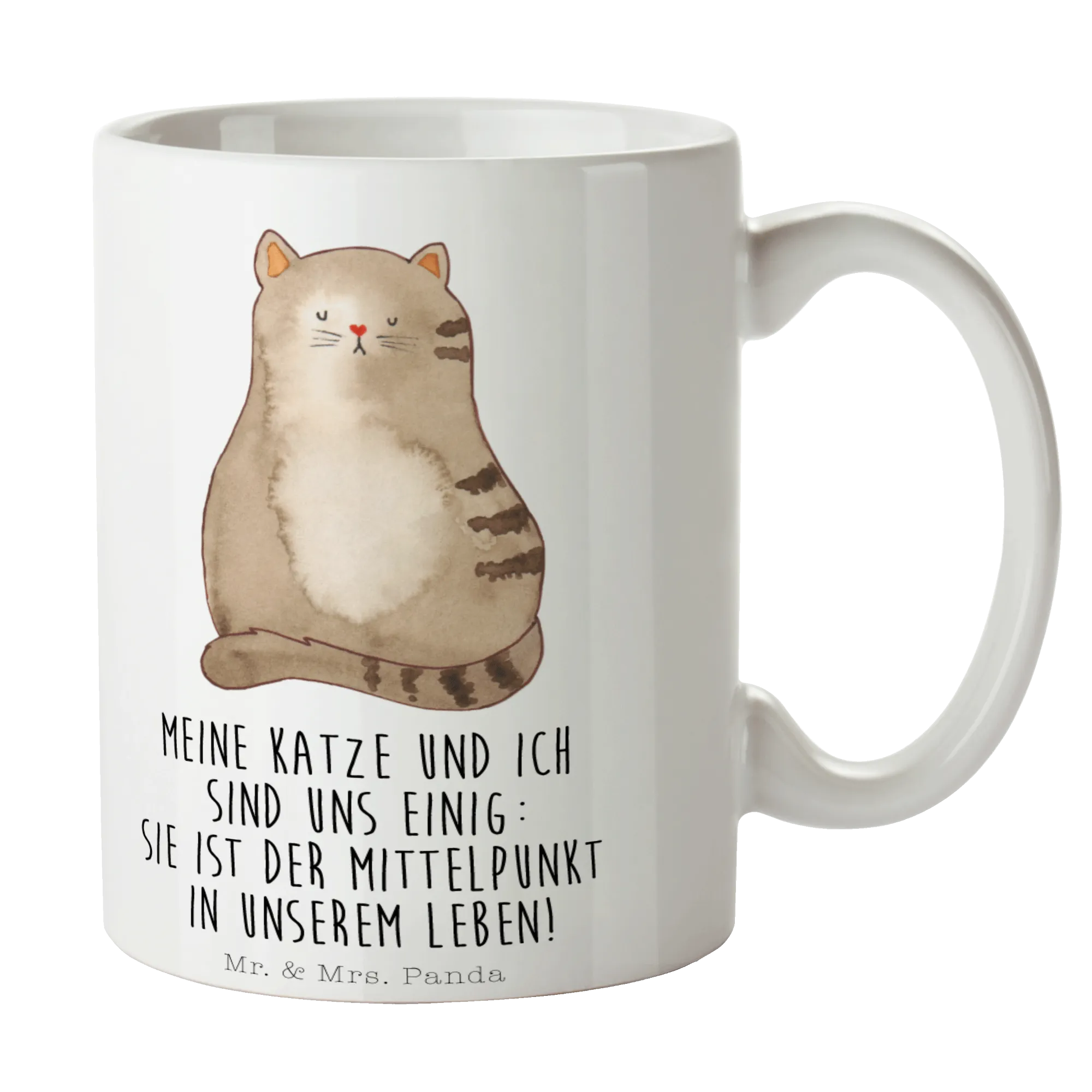 Entdecke die wundervolle Katzen-Tasse von Mr. & Mrs. Panda! Diese Keramiktasse ist perfekt für alle Katzenliebhaber und versprüht den einzigartigen Charme unserer geliebten Samtpfoten. Mit dem zauberhaften Motiv einer sitzenden Katze bringt sie nicht nur Freude in deinen Alltag, sondern macht auch jeden Kaffeegenuss zu einem besonderen Erlebnis. Sie ist bedruckt mit dem liebevollen Spruch: 'Meine Katze und ich sind uns einig: sie ist der Mittelpunkt in unserem Leben!' – ein Statement, das das Herz eines jeden Katzenbesitzers höher schlagen lässt.
