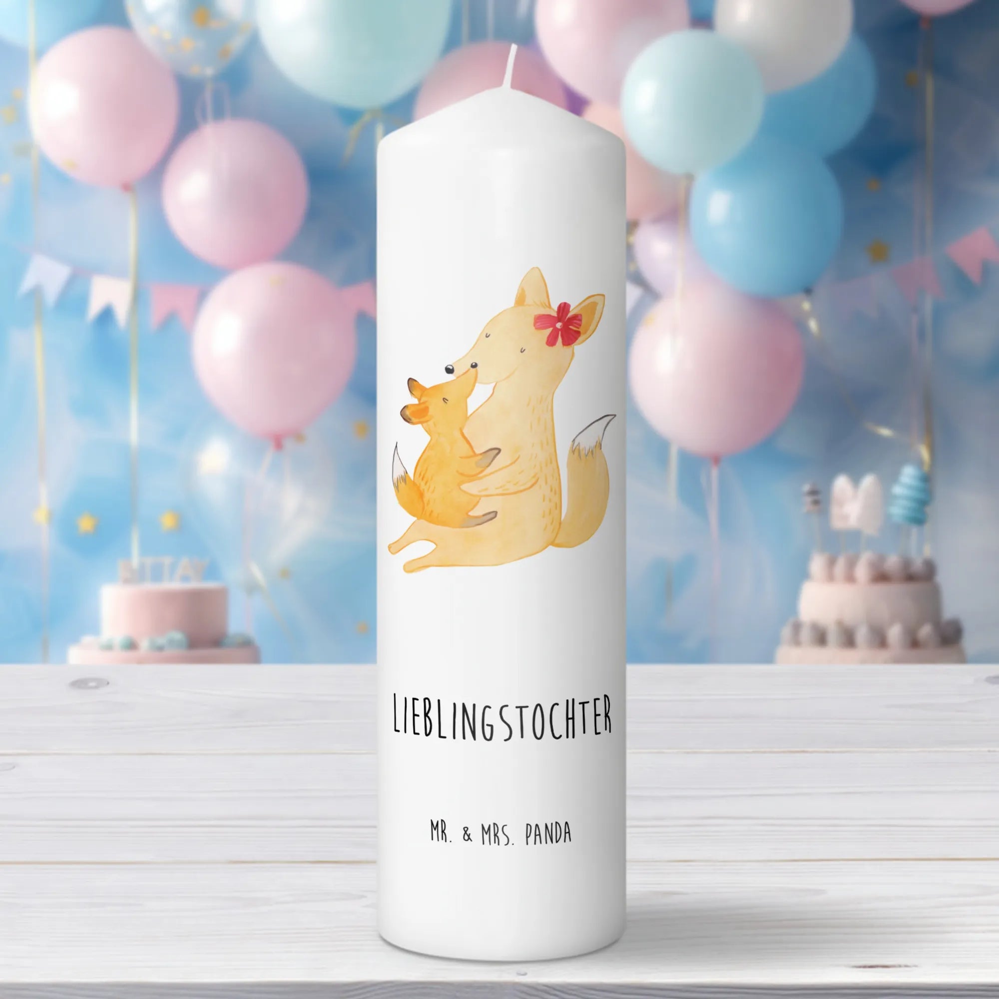 Die bezaubernde Kerze mit dem Motiv 'Fuchs Mama & Kind' aus der Familien Kollektion von Mr. & Mrs. Panda ist das perfekte Geschenk für alle Anlässe, bei denen Du Liebe und Geborgenheit schenken möchtest. Diese Kerze strahlt mit ihrem liebevollen Design eine besondere Wärme aus und ist somit eine wunderbare Wahl für Taufen, Kommunionen oder Geburtstage.