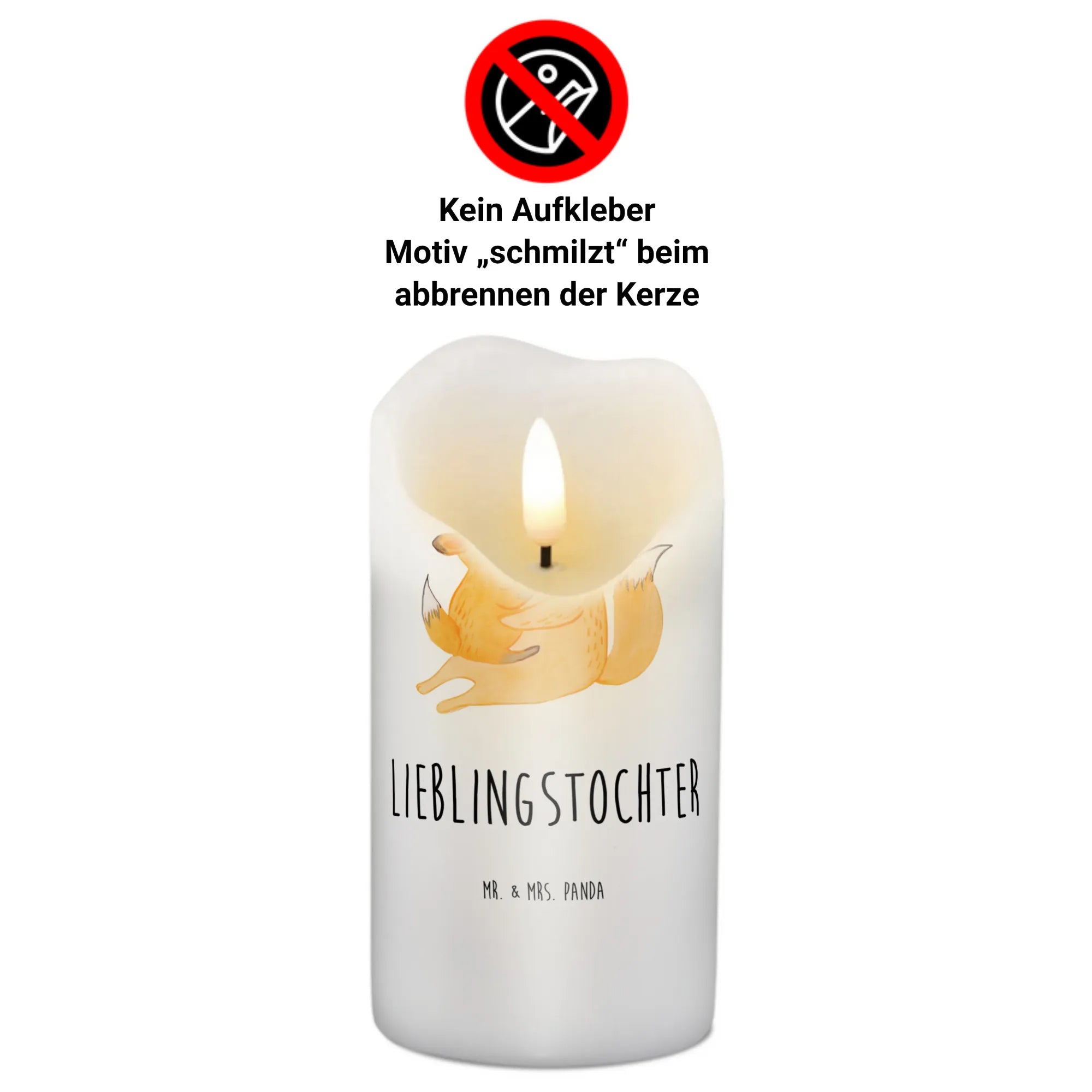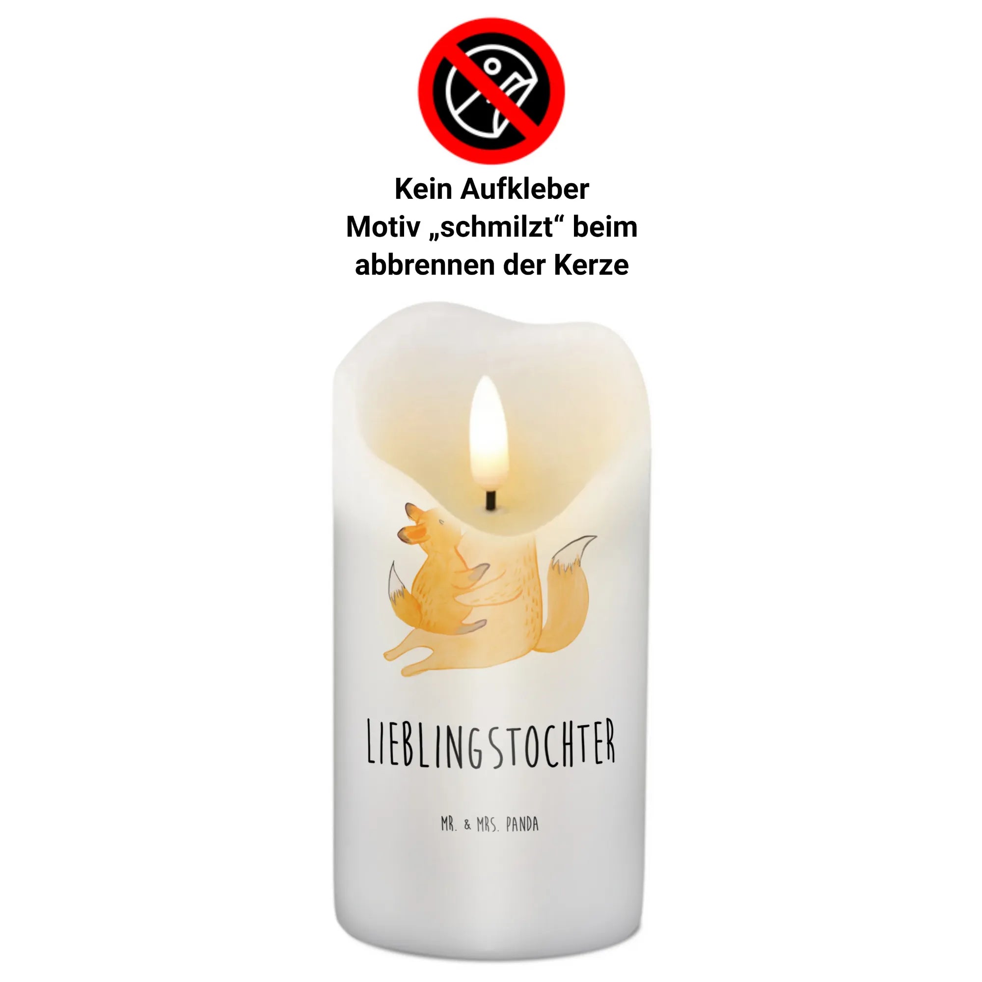 Die zwei niedlichen Füchse - eine Mutter und ihr junges Tier - umarmen sich zärtlich und vermitteln ein Gefühl von Fürsorge und Verbundenheit. Jedes Detail, von der warmen gelb-orange Farbe bis zur roten Blume hinter dem Ohr der Füchsmutter, wurde mit viel Liebe und Hingabe gestaltet. Die Kerze hat nicht nur eine ultralange Brenndauer, sondern ist auch mit einem motivierenden Spruch 'Lieblingstochter' versehen, der diese Kerze zu einem unvergesslichen Taufgeschenk oder Kommunionsgeschenk macht.